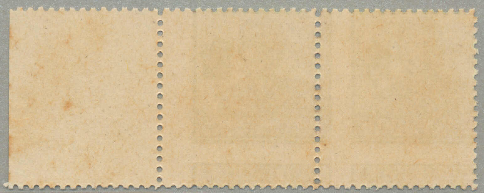 6508 nh image1946, horizontal mint strip of (3) 2c Boy Scouts SILVER JUBILEE commemorative stamps, brown and green on yellowish paper, right stamp with full selvage, centre stamp showing clear perforation shift resulting in misaligned separation, attractive variety highlighting production flaw on early postwar Philippine issue, full original gum, VF! Estimate 100€. (Image) (imagea) (All Images)