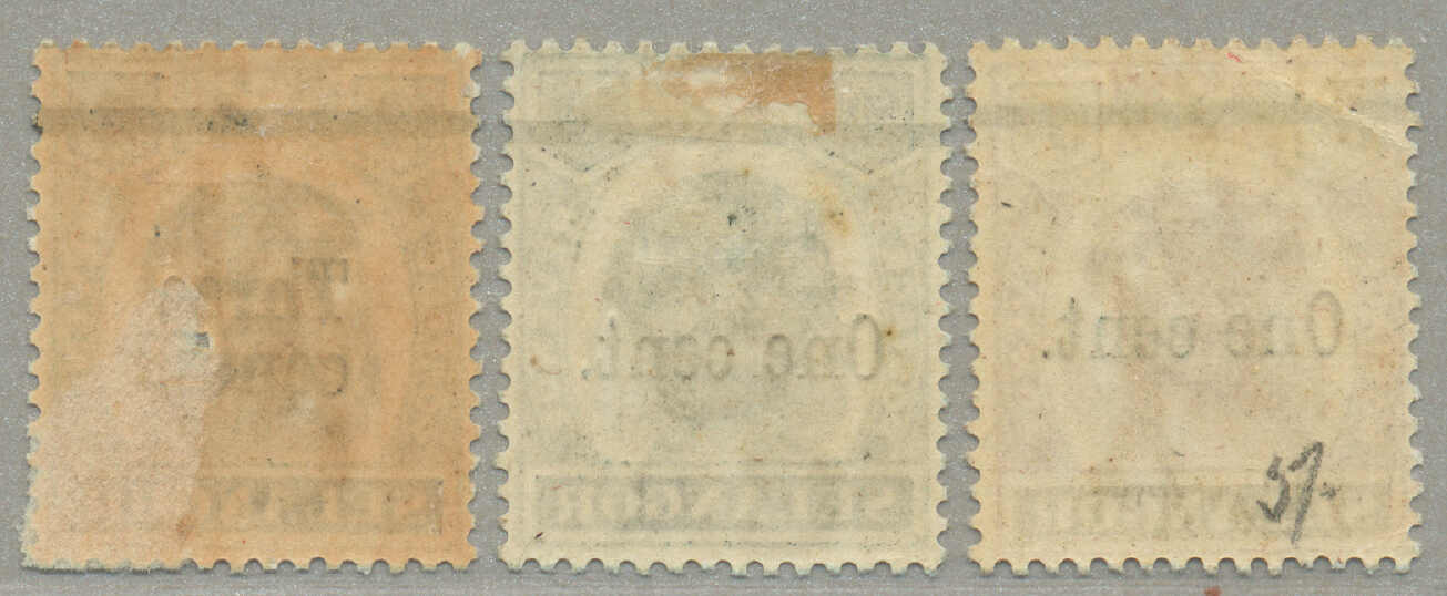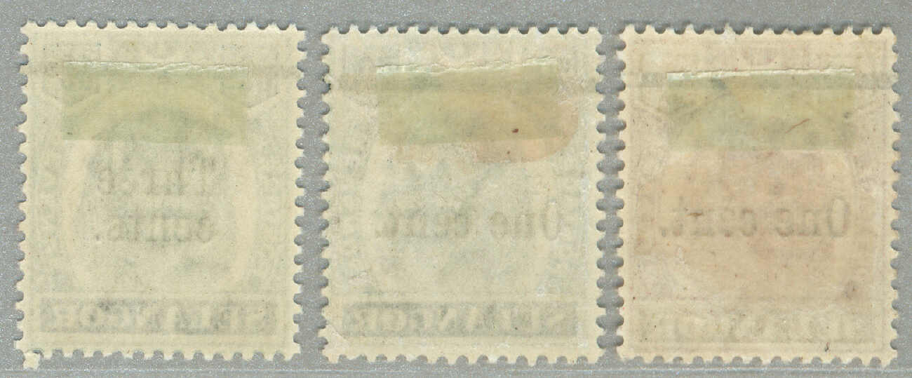 1900, 1c on 5c, 1c on 50c, 3c on 50c, complete set of (3), LPOG, perf. 14, desirable, VF-XF! Estimate 120€.