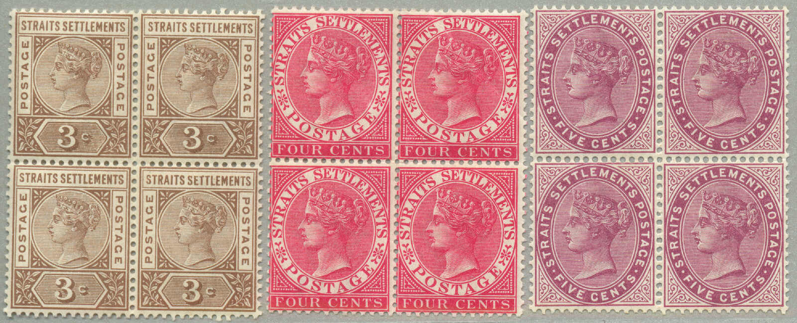 Viererblocks, großer Teil Originalgummi postfrisch, 4c mit Bugspur in eine Briefmarke, eine bessere Zusammenstellung, Katalogwert £170, frisch, VF-XF! Schätzpreis 200. (SG 97, 98, 100) (Image) (imagea)