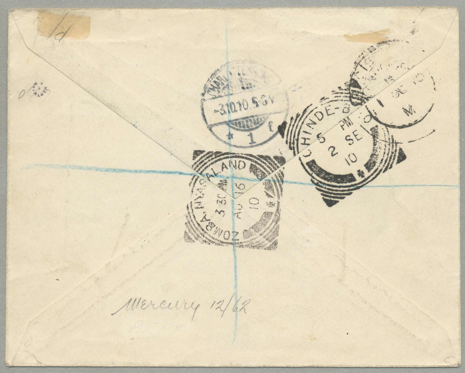ZAMBA M.O.B, NYASALAND, reverse with black dispatch, CHINDE, black LONDON transit and CHARLOTTENBURG, a very fresh letter, unusual destination, VF-XF! Estimate 800€.