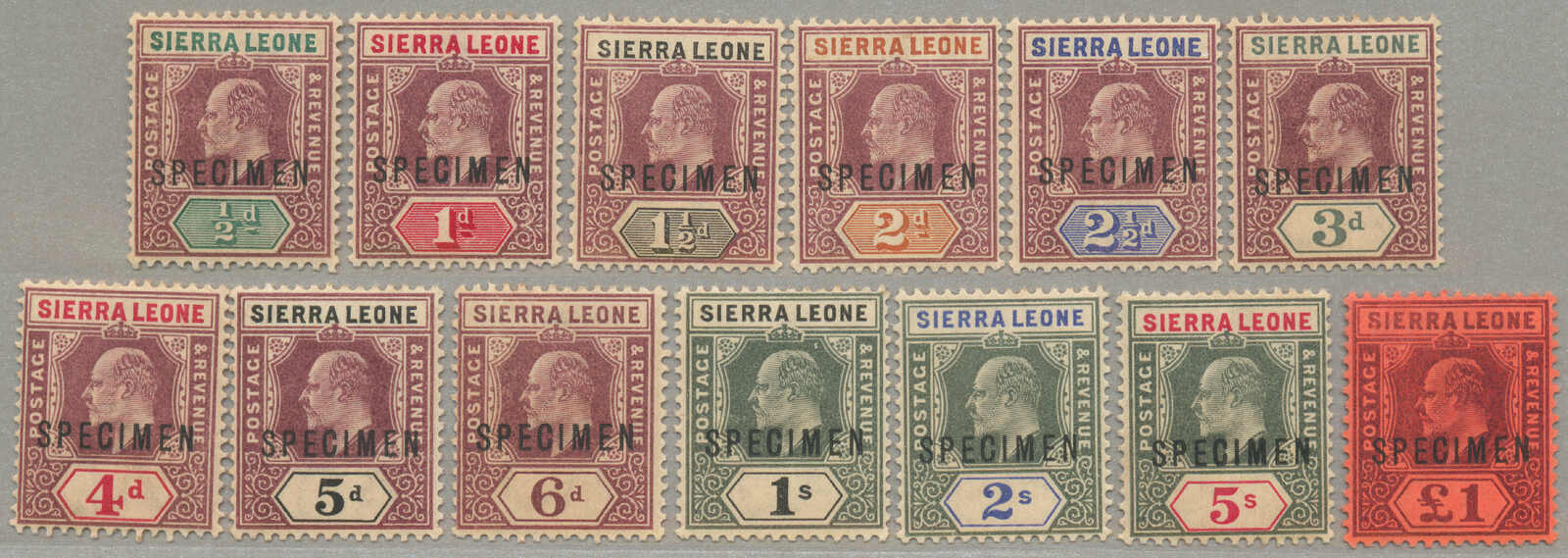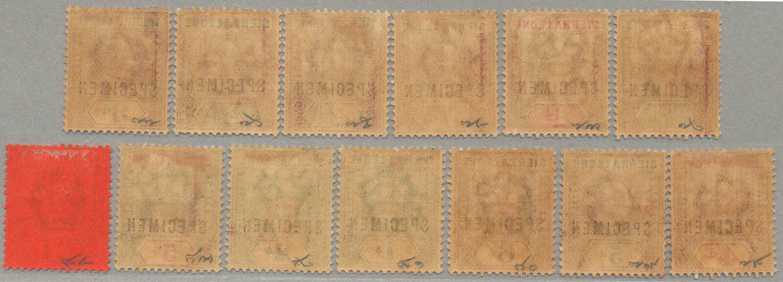 Automatisch generierte Übersetzung: 1903-12,1 / 2 d. - £1, kompletter Satz ab 1903 und zwei Briefmarken des 1907-12 Ausgabe, alle Überdruck schwarz SPECIMEN und violett handgestempelt ULTRAMAR, Wasserzeichen circa, großer Teil