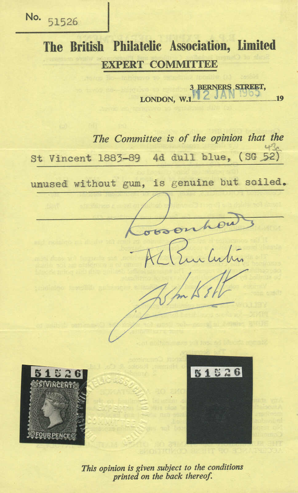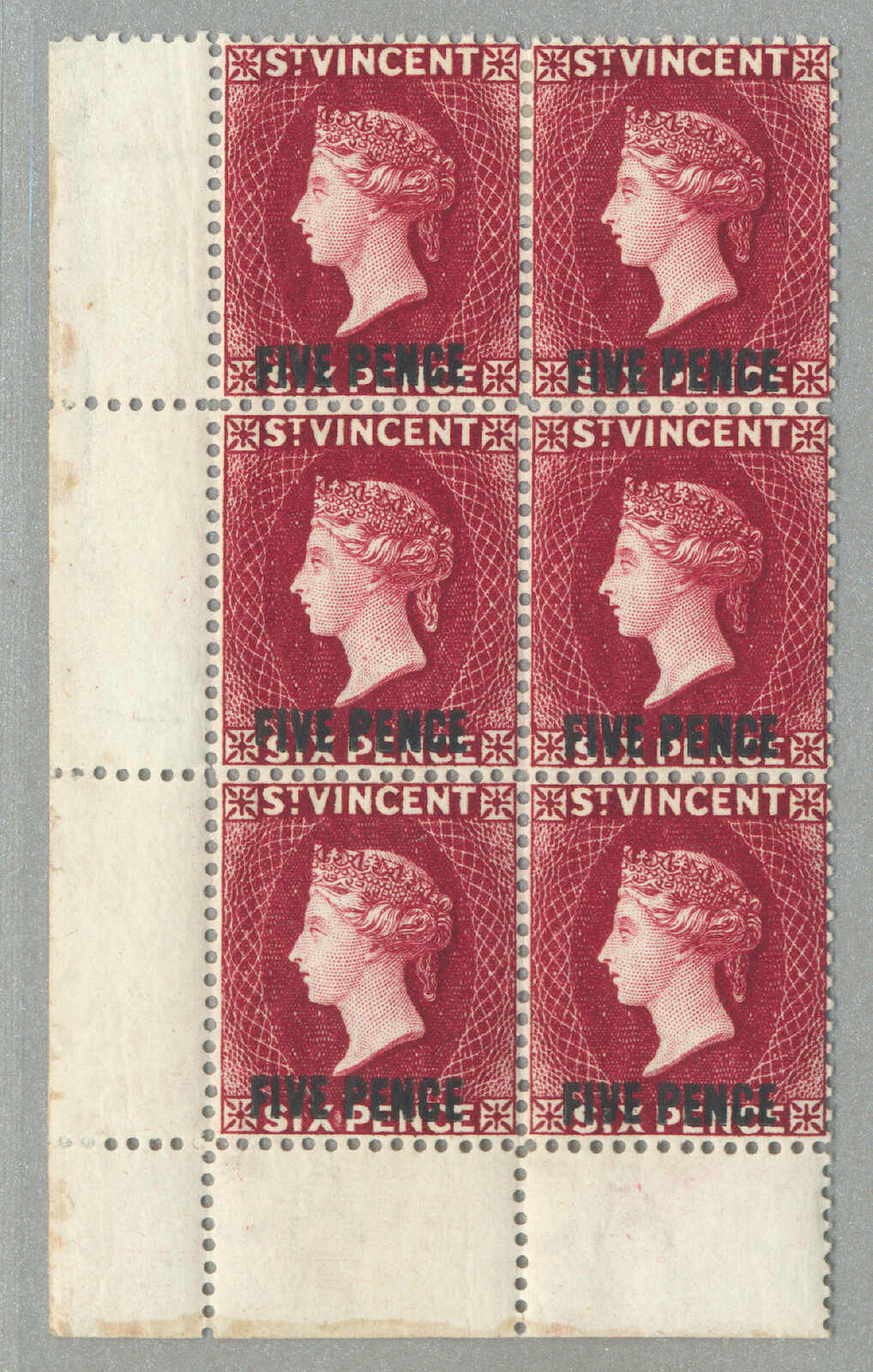 Wasserzeichen Krone CA, Zähnung 14, großer Teil Originalgummi, siehe Fußnote nach SG 45 hinweisend ein Katalogwert £2500, Provenienz: Sammlung Dale-Lichtenstein, Harmers, New York, 19 Sept 1990, Los 346, schwer erhältliche Briefmarke, ein paar Zähne