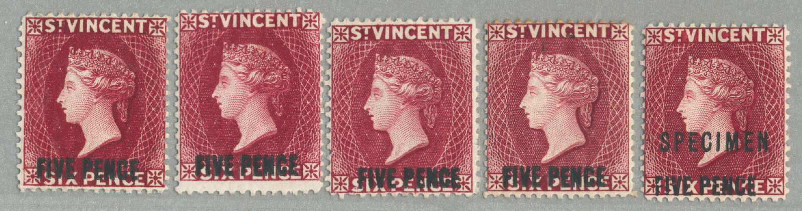1885-93, 5 s., rose-red, De La Rue Colour Trial - probably printed in May 1882, wmk Crown CA, perf. 14, LPOG, see footnote after SG 45 indicating a CV £2500, Provenance: Collection Dale-Lichtenstein, Harmers, New York, 19