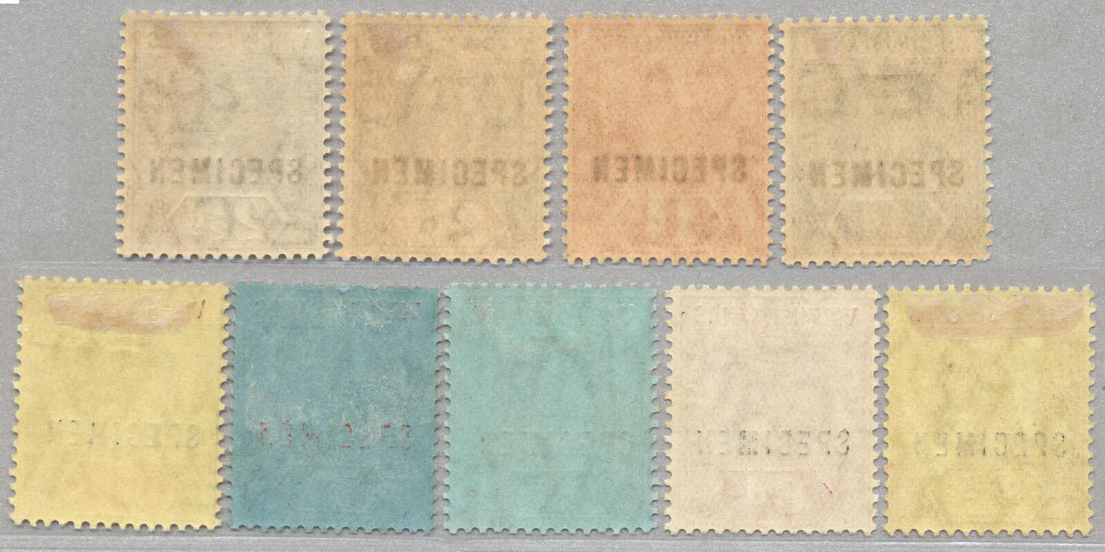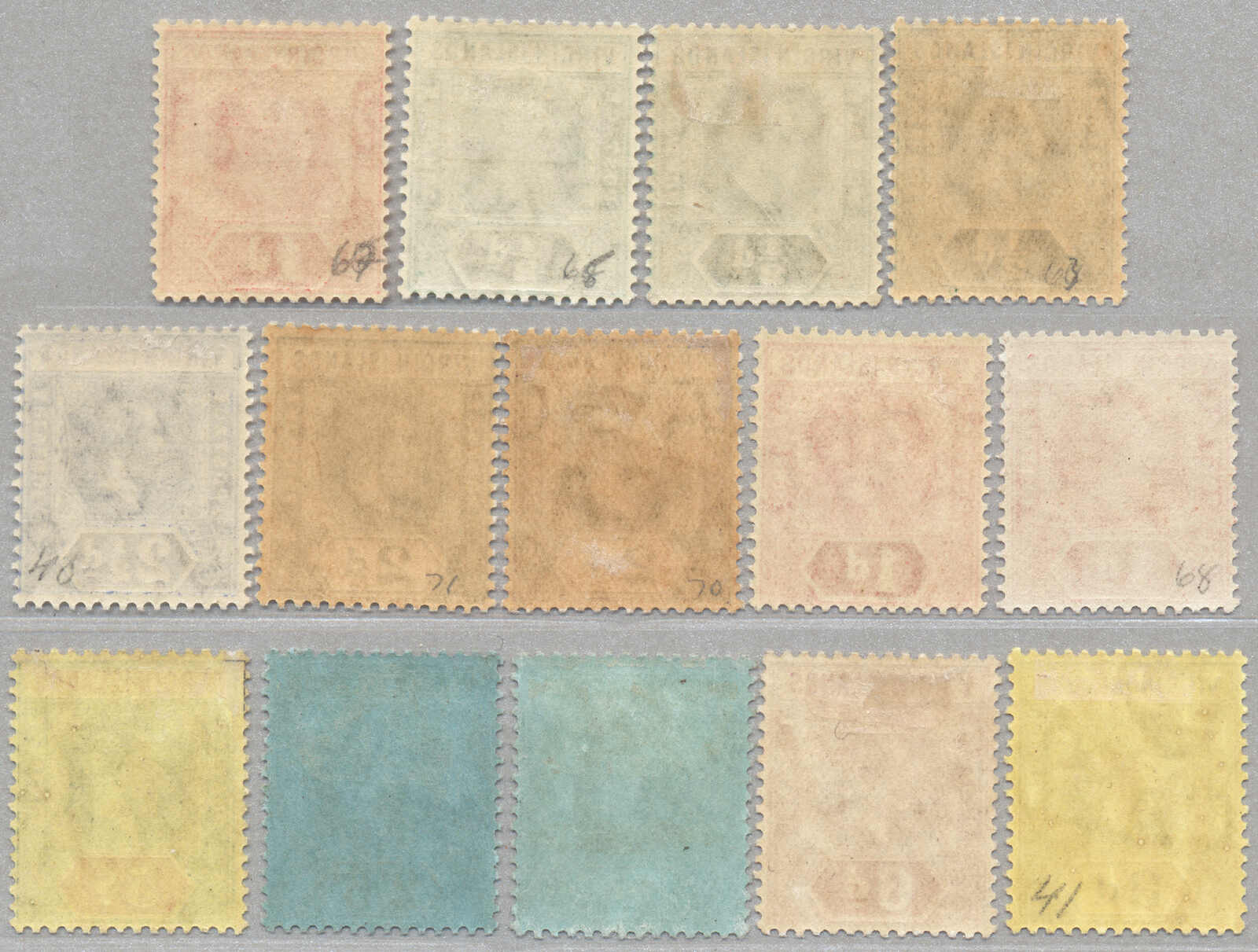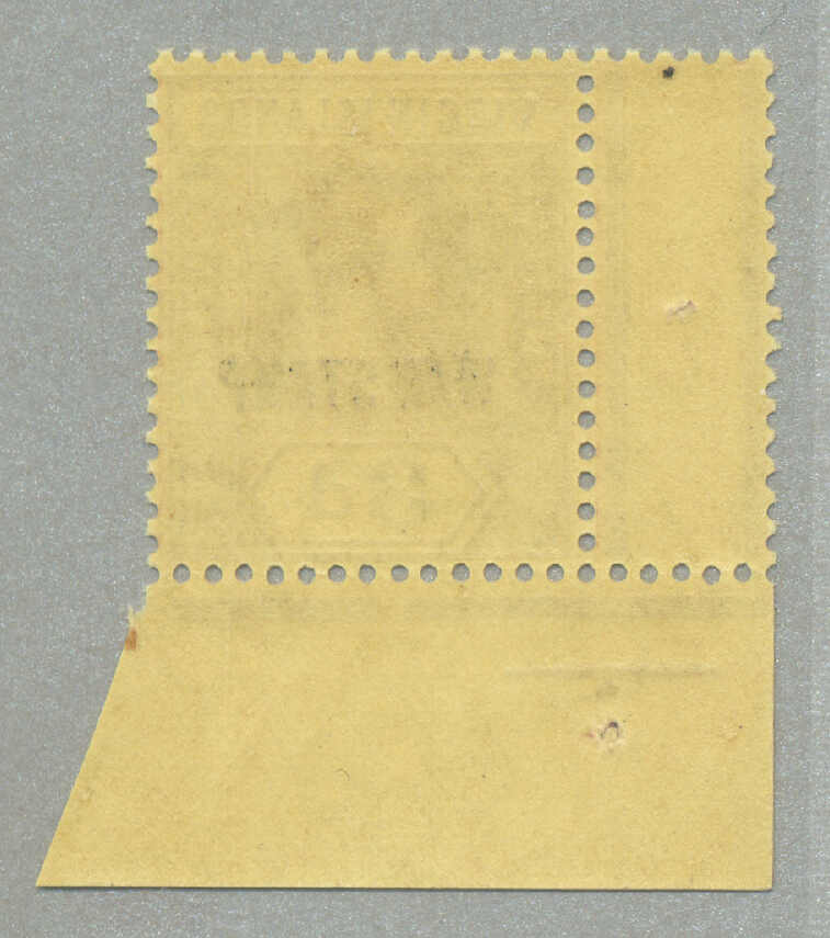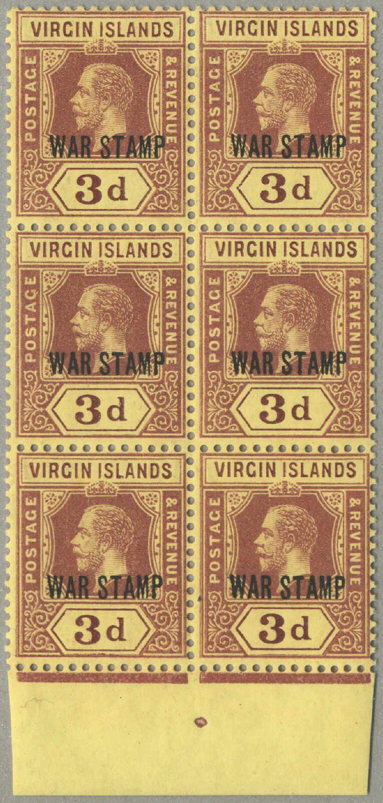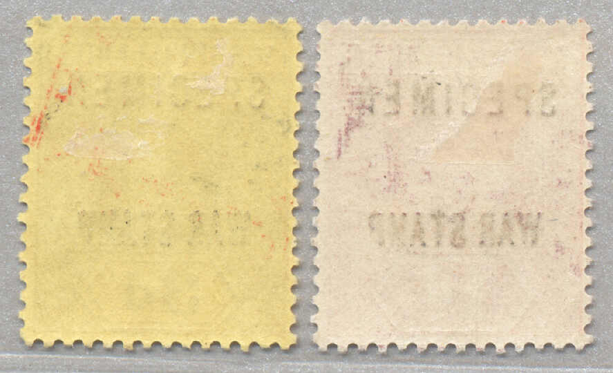 Automatisch generierte Übersetzung: 1916-19, zwei Blocks von 2x 2, und Farbtöne vom Krieg Wertzeichenaufdruck, 3 d., purpur auf gelbem Papier, Zähnung 14, Blocks mit Rand befestigt, mit Plattennummer 5,