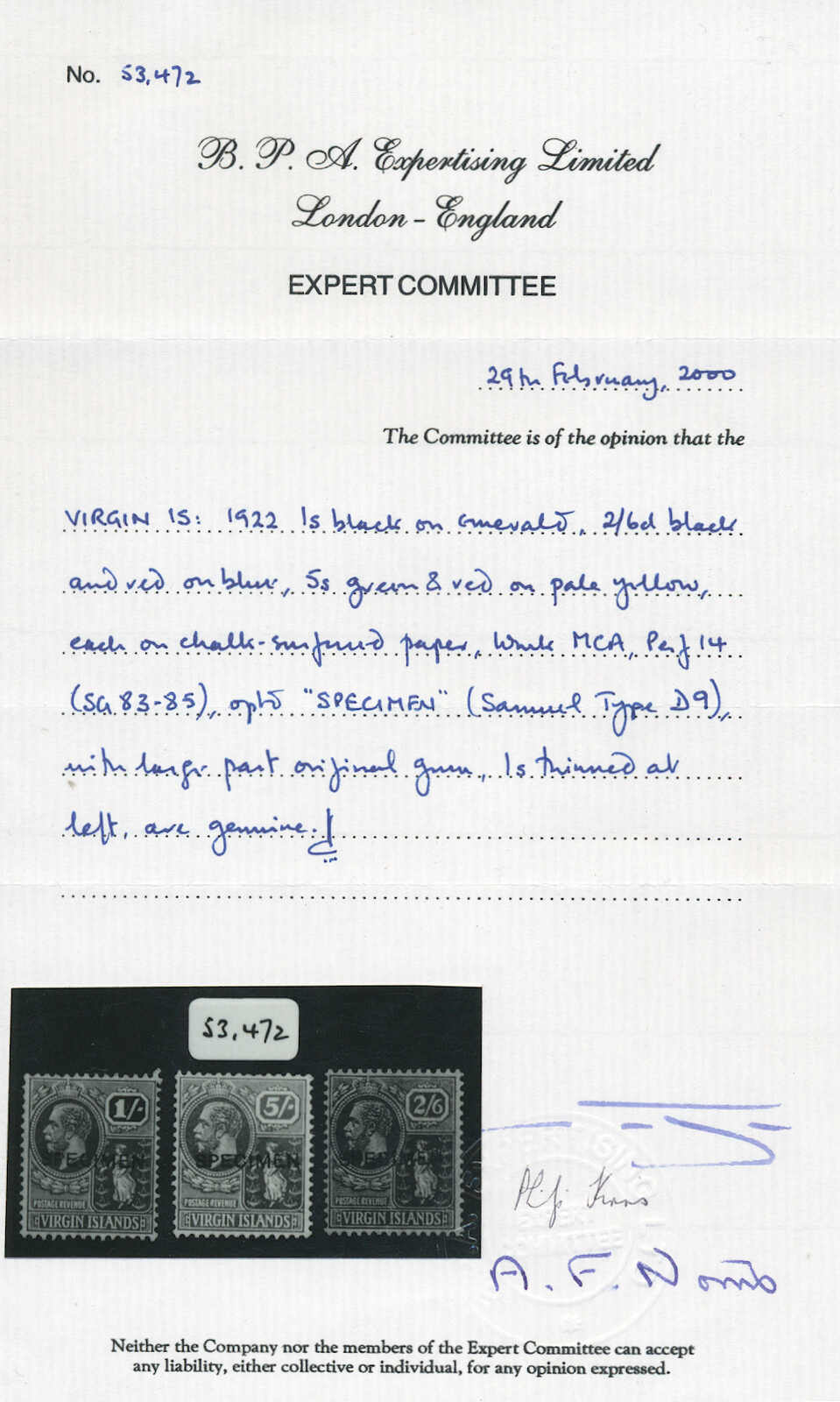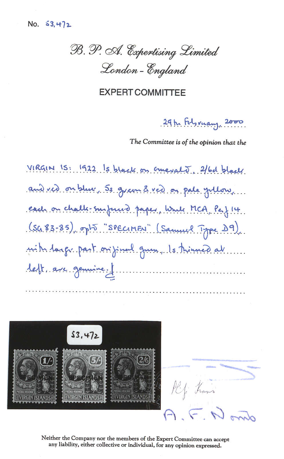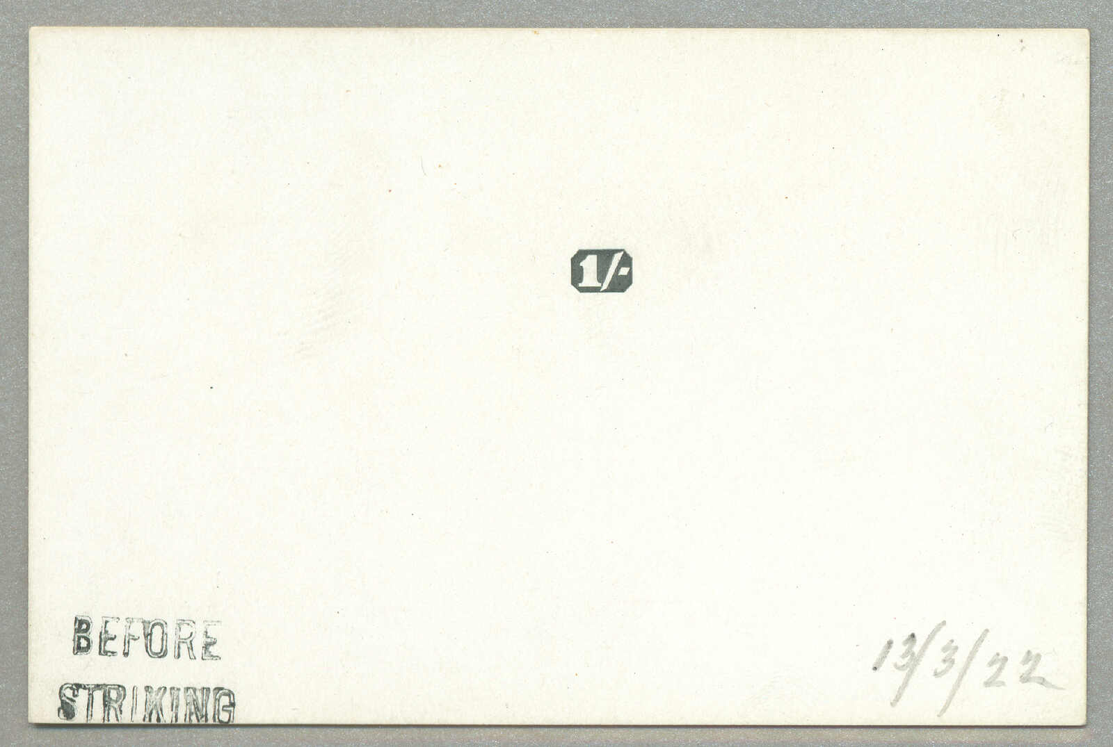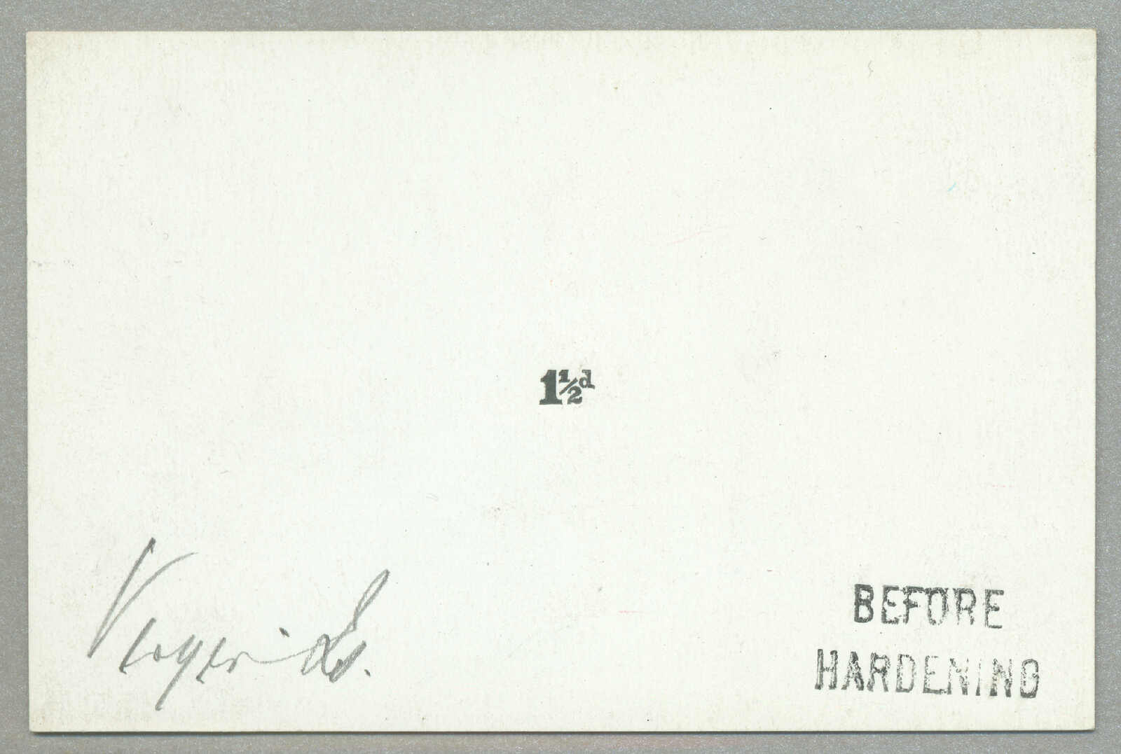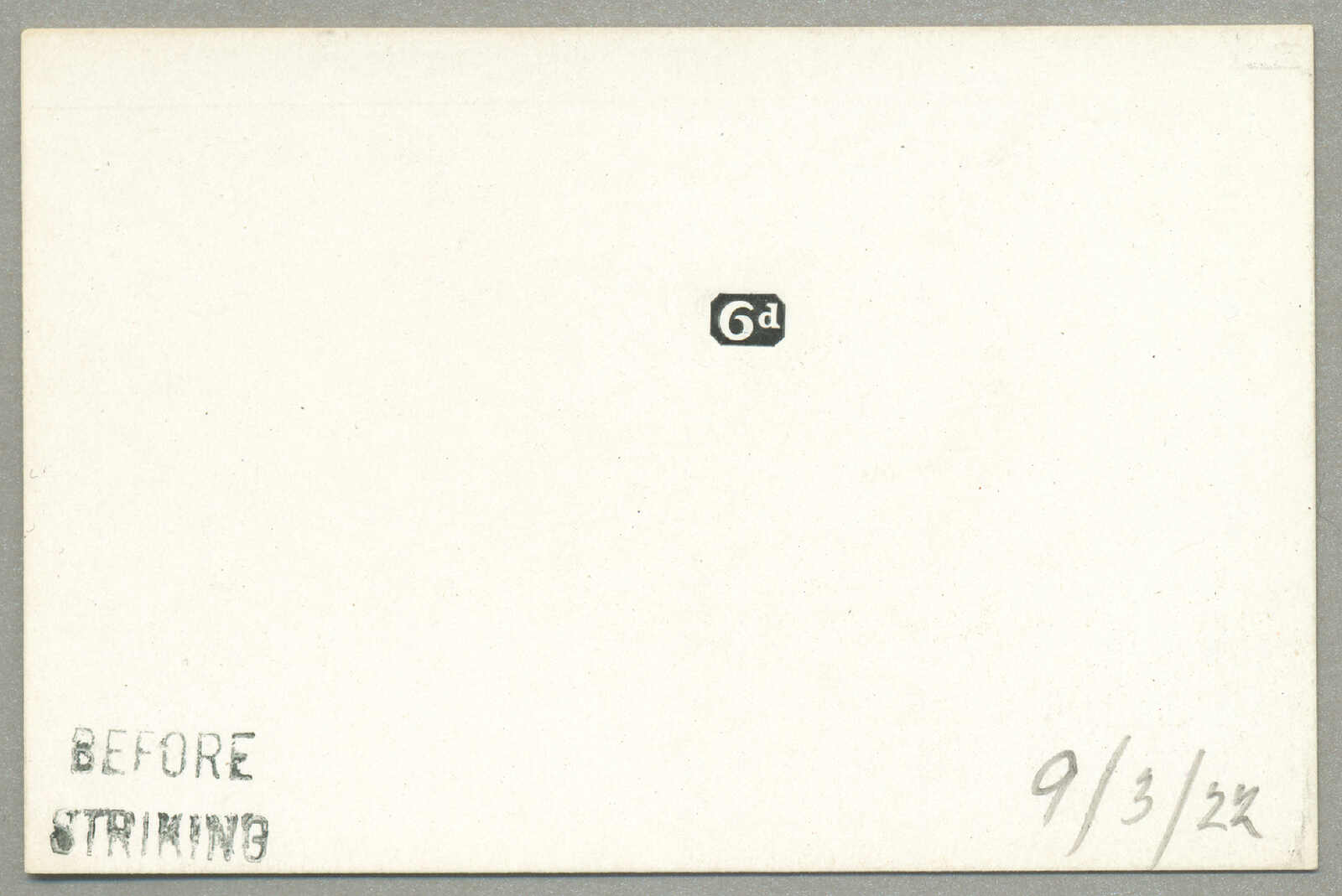 1927, 1 1/2d., black, imperf proof, on cardboard, handstamped BEFORE HARDENING, and signed by the printer, NG, very interesting and attractive, XF! Estimate 800€.