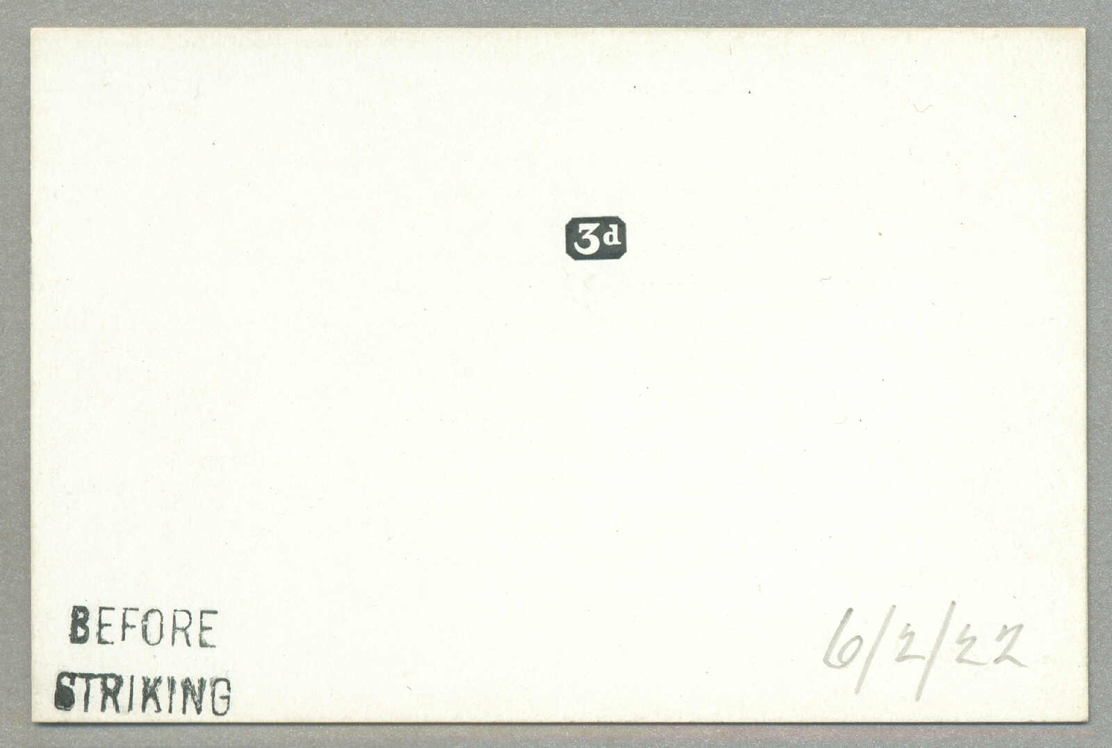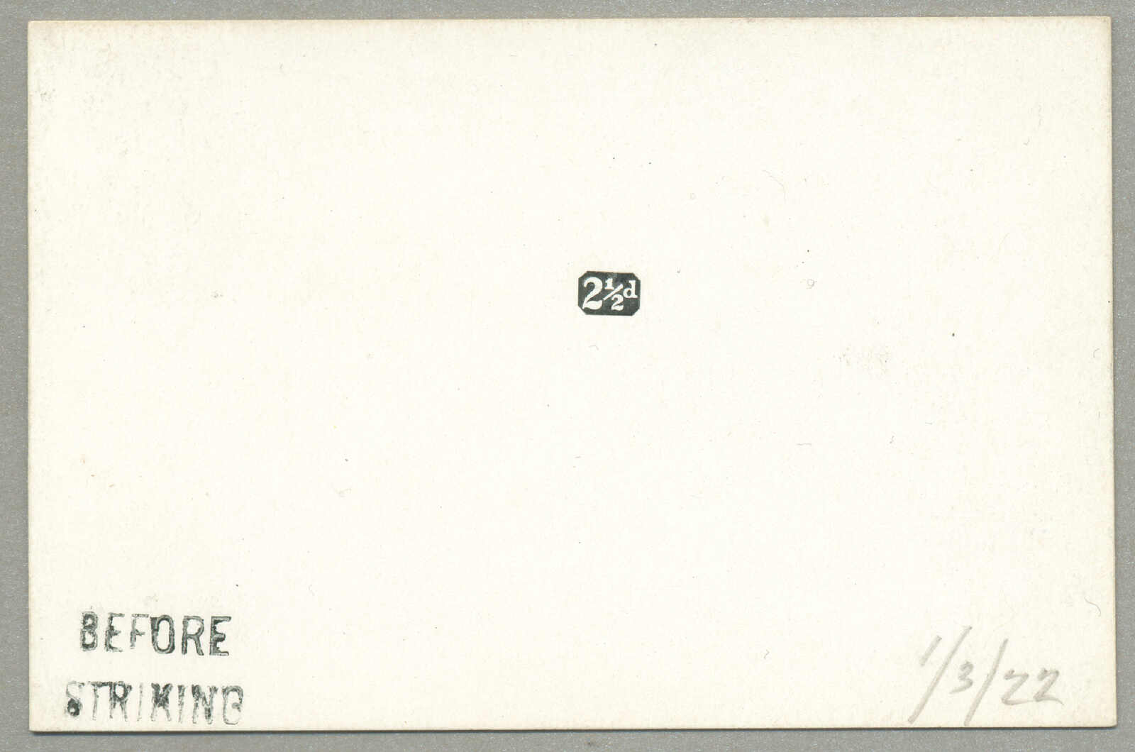 Automatisch generierte Übersetzung: 1927,1 1 / 2 d., schwarz, ungezähnter Probedruck, auf Pappe, handgestempelt vor dem Härten, und signiert durch den Drucker, ohne Gummi, hochinteressant und attraktiv, Kabinett! Schätzpreis 800. (SG 90 var) (Image) (imagea)