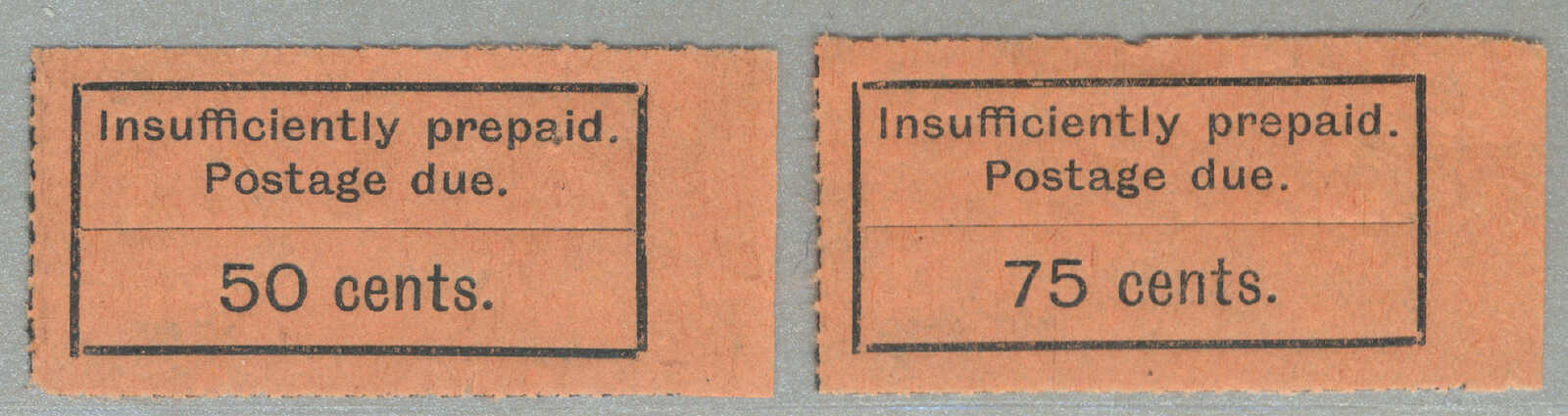 Automatisch generierte Übersetzung: 1926-30, 50 c., 75 c., schwarz auf orangen Papier, durchstochen, Nachportomarken, ohne Gummi, 75 c. mit kleinem indetation auf Oberrandtabs, 50 c. mit Nadelloch oben rechts ab Mittelstück, noch
