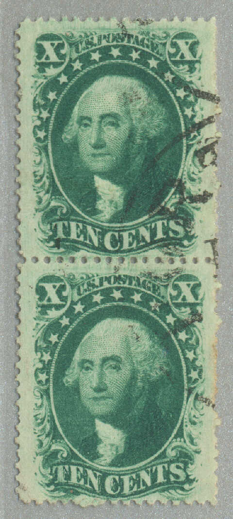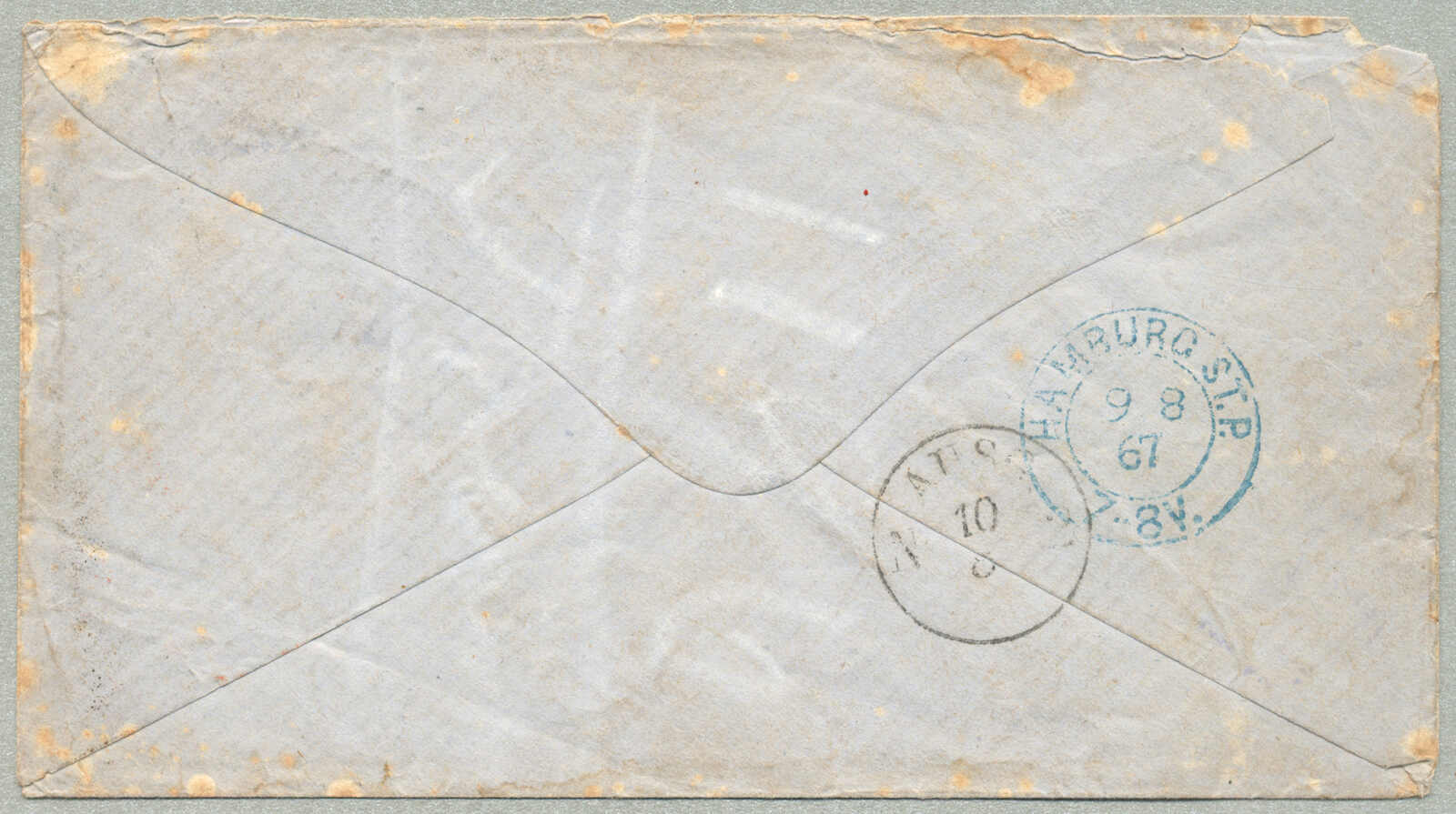 Automatisch generierte Übersetzung: 1864, eingehende Post Überland über Southampton. 2 c. Blackjack, 10 c. grün Paar, kleine Zahnfehler unten und 24 c. braunlila, auf Brief aus