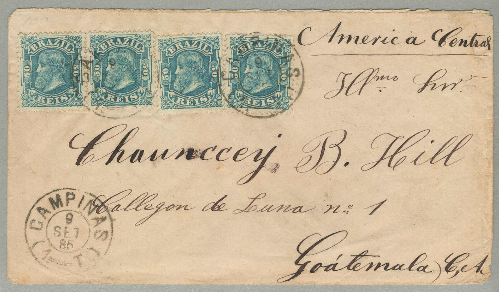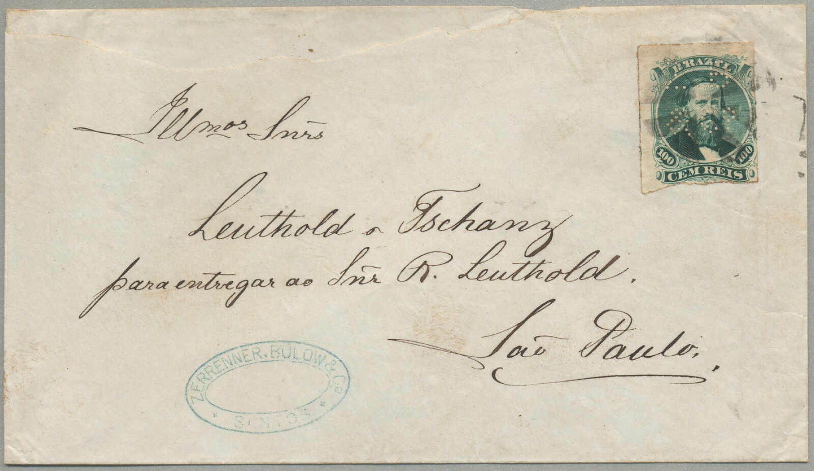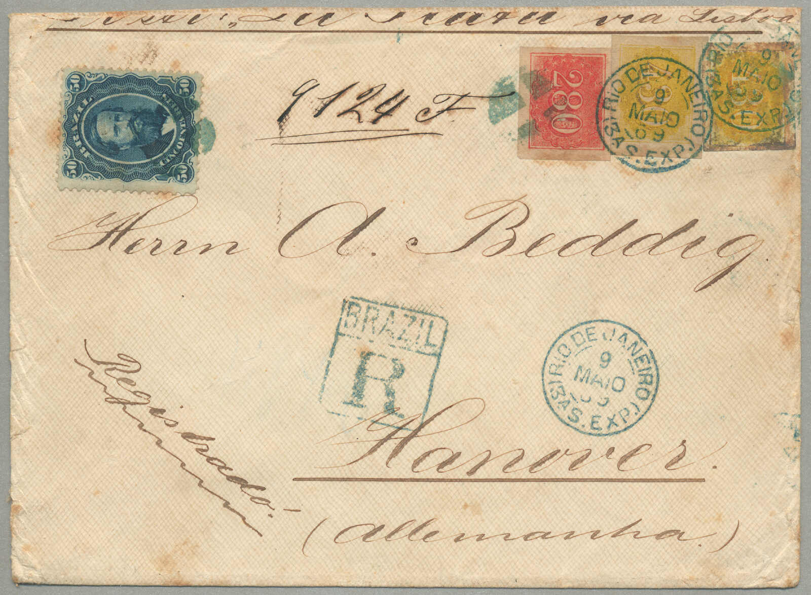 Republicana series, postmarked January 19, 1896, on reverse, a Rio de Janeiro postmark dated January 20, 1896, and an arrival date in Malmö dated February 9, 1896, as an addition two 300 Reis stamps with the same Lazaretto postmark are