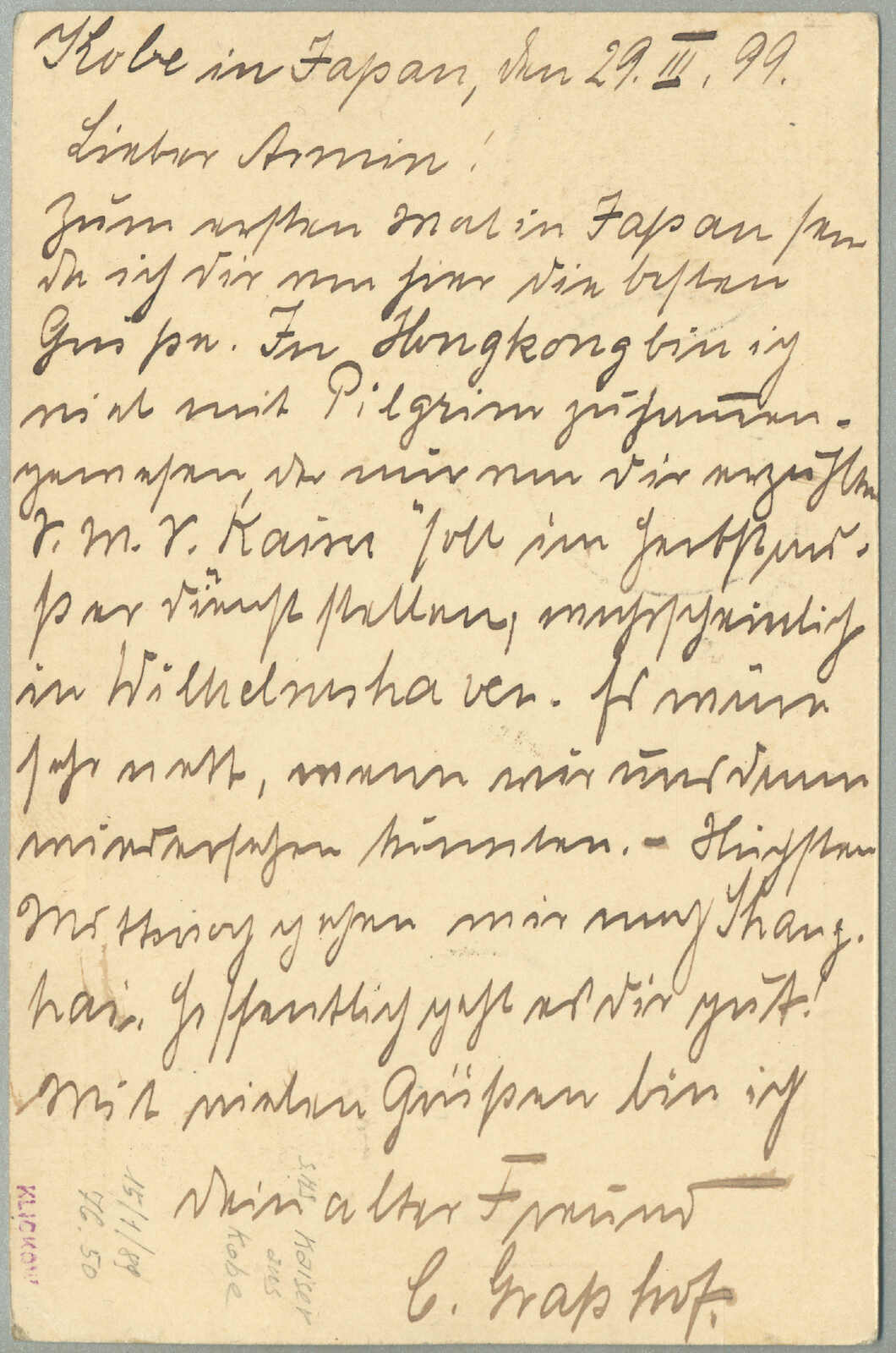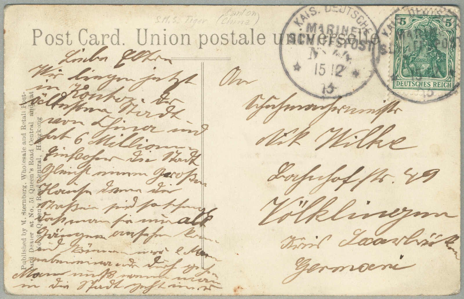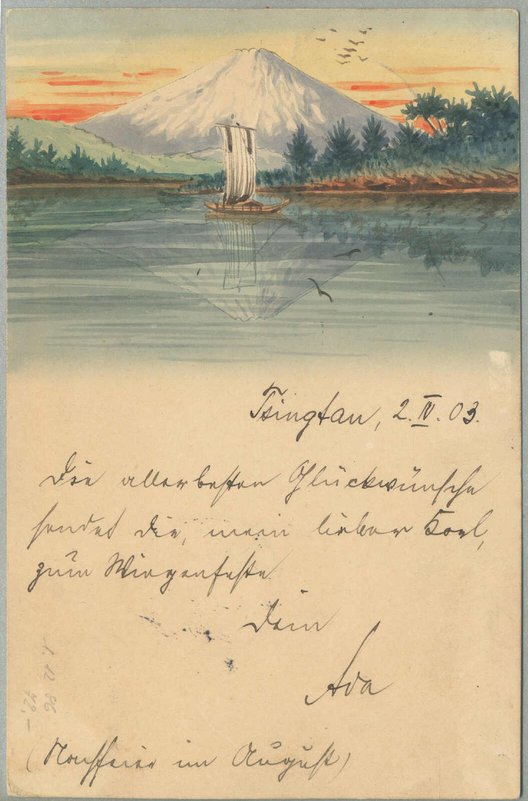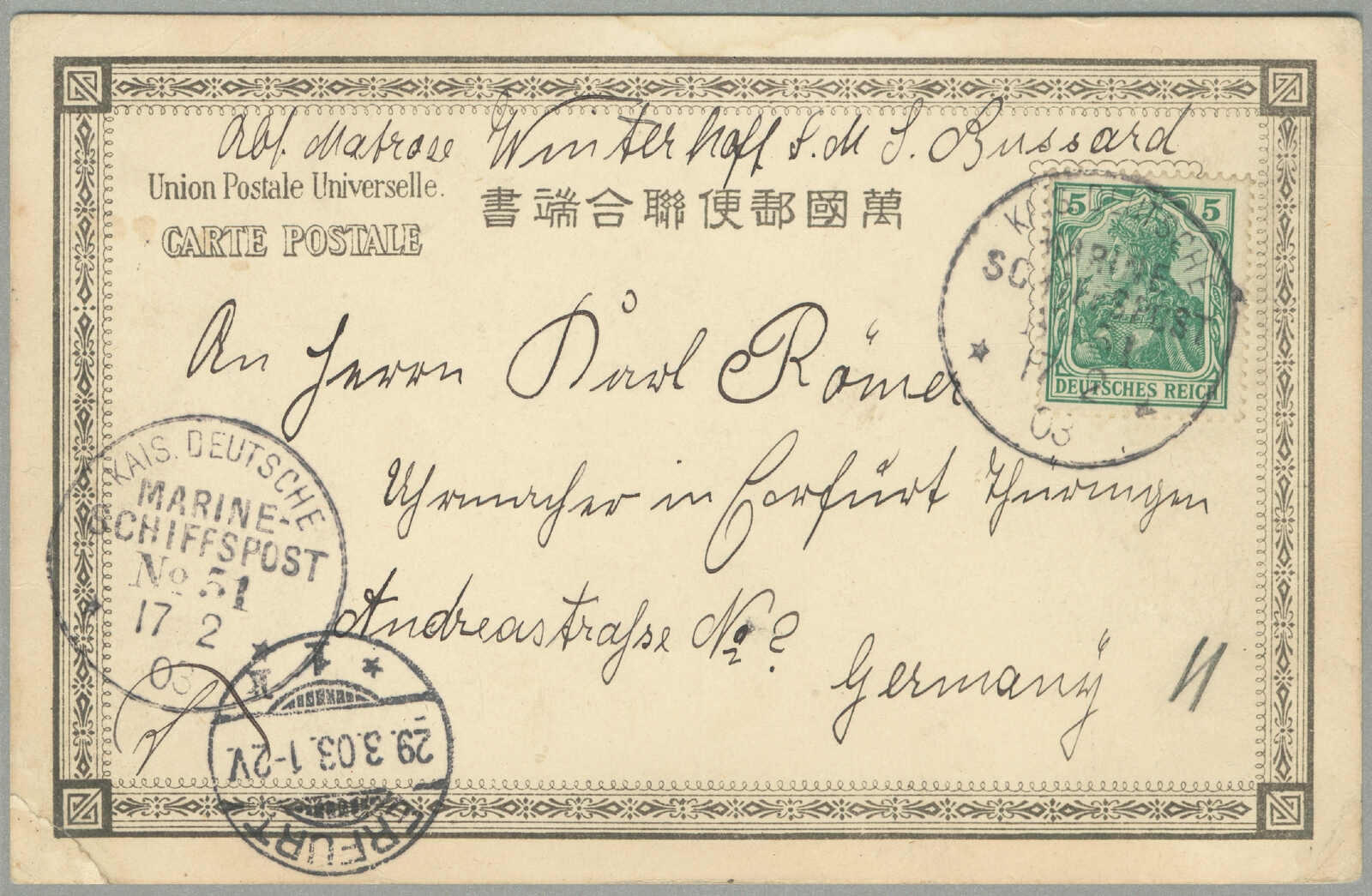 Automatisch generierte Übersetzung: 1895, Deutsche Marken gestempelt in China, 20 + 20 Pf., (2), blau, Paar, auf Einschreibebrief aus SHANGHAI zu Innsbrucker über London, Vermerk oben links handschriftlich über Kanada,