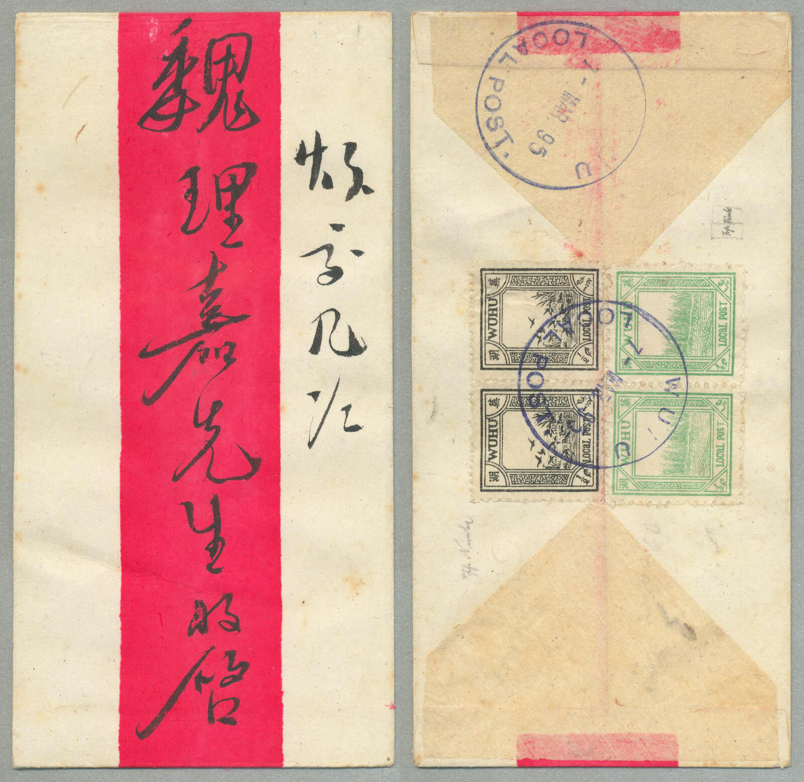 1895, German stamps used in China, 20+20Pf, (2), blue, pair, on registered letter from SHANGHAI to INNSBRUCK via LONDON, endorsed top left m/s via Canada, reverse with arrival, fresh and desirable letter, XF! Estimate