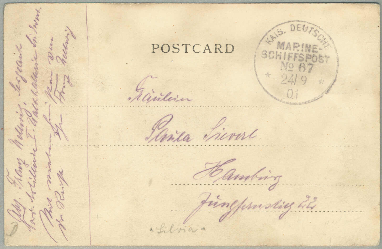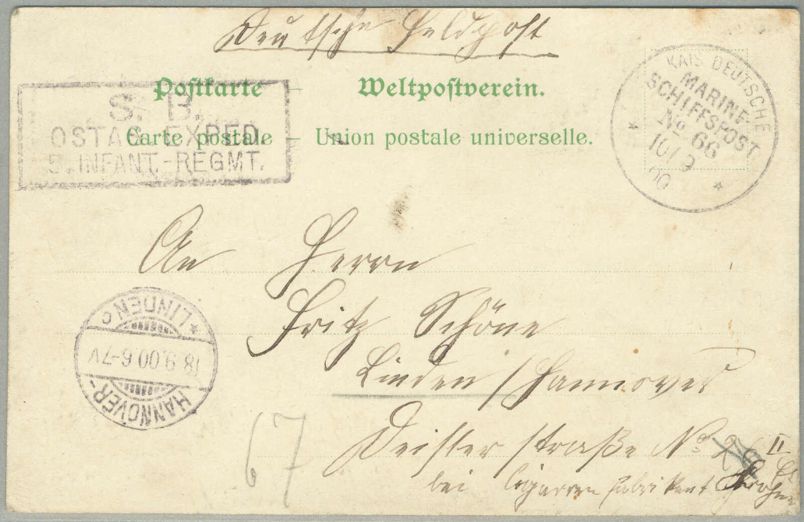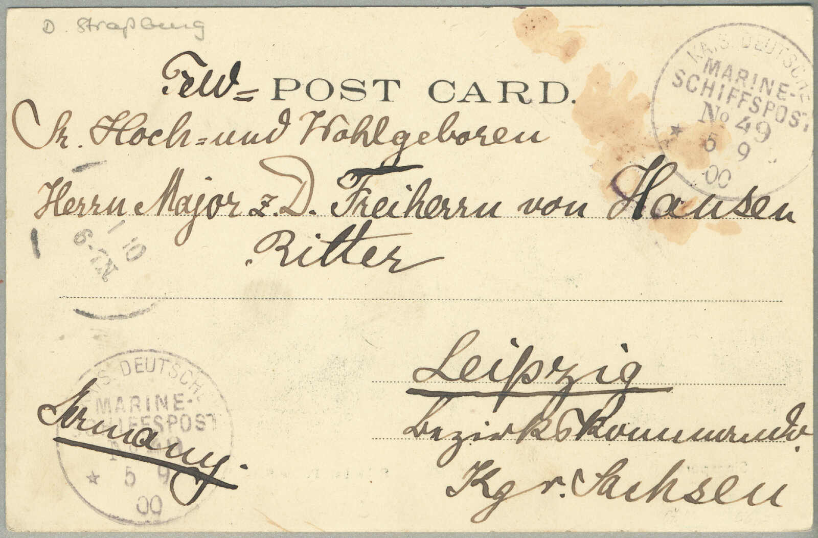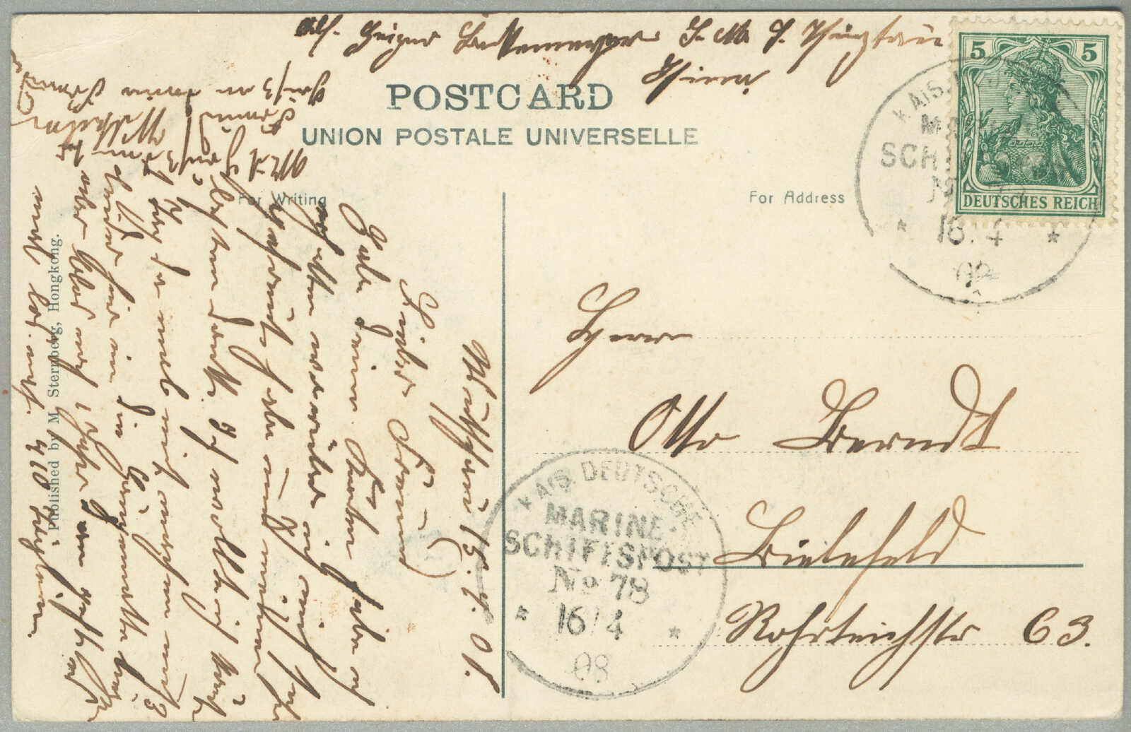1900, 5pf., green, stationary post card, from the SMS LUCHS in COLOMBO to DORNUM, description enclosed, fresh and desirable, XF! Estimate 450€.