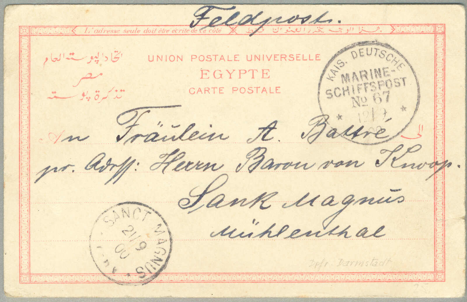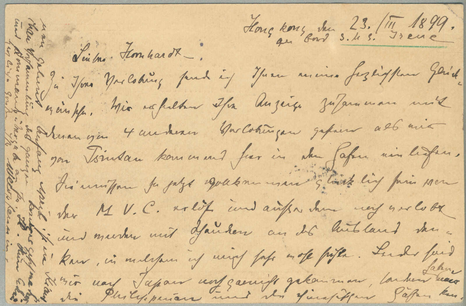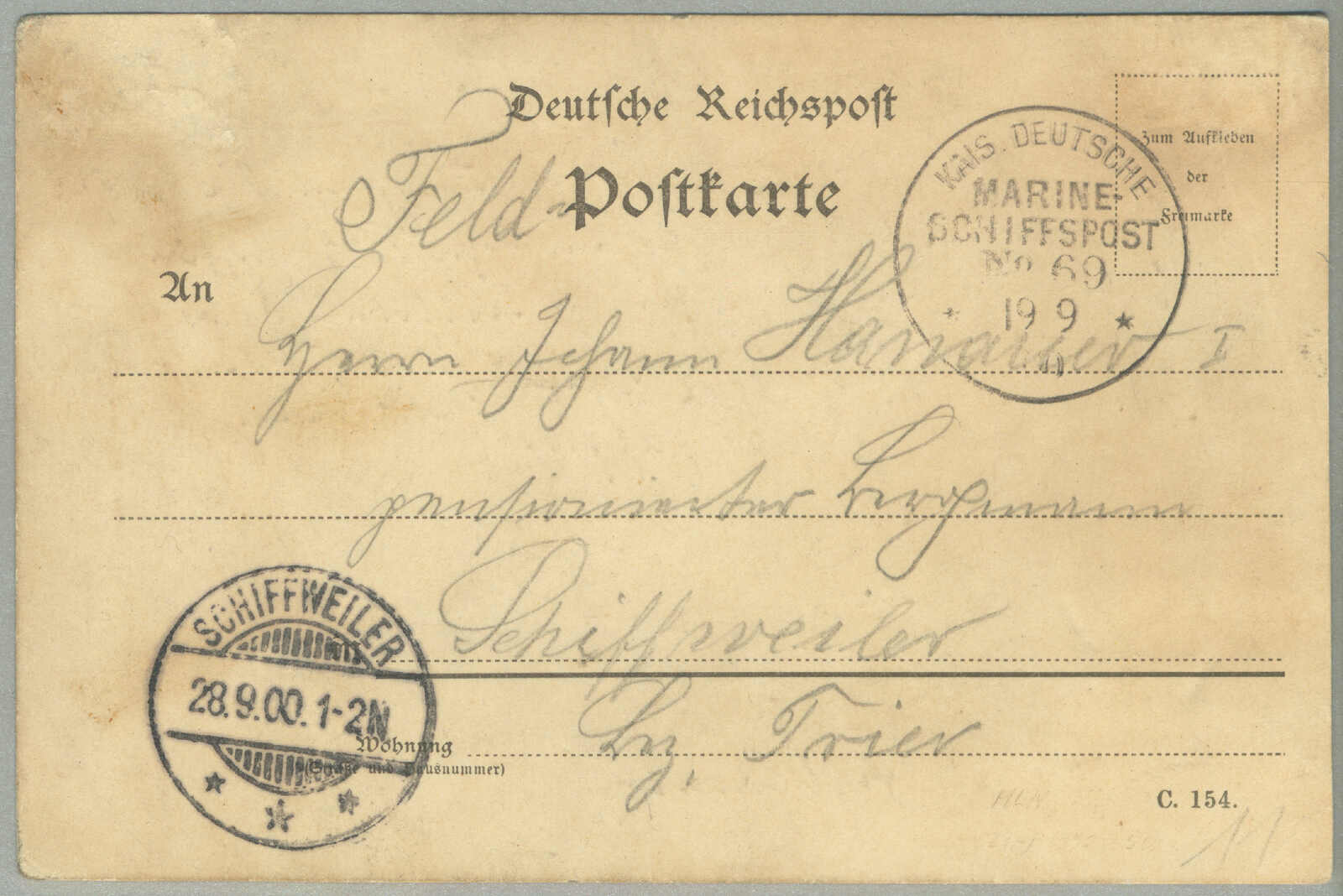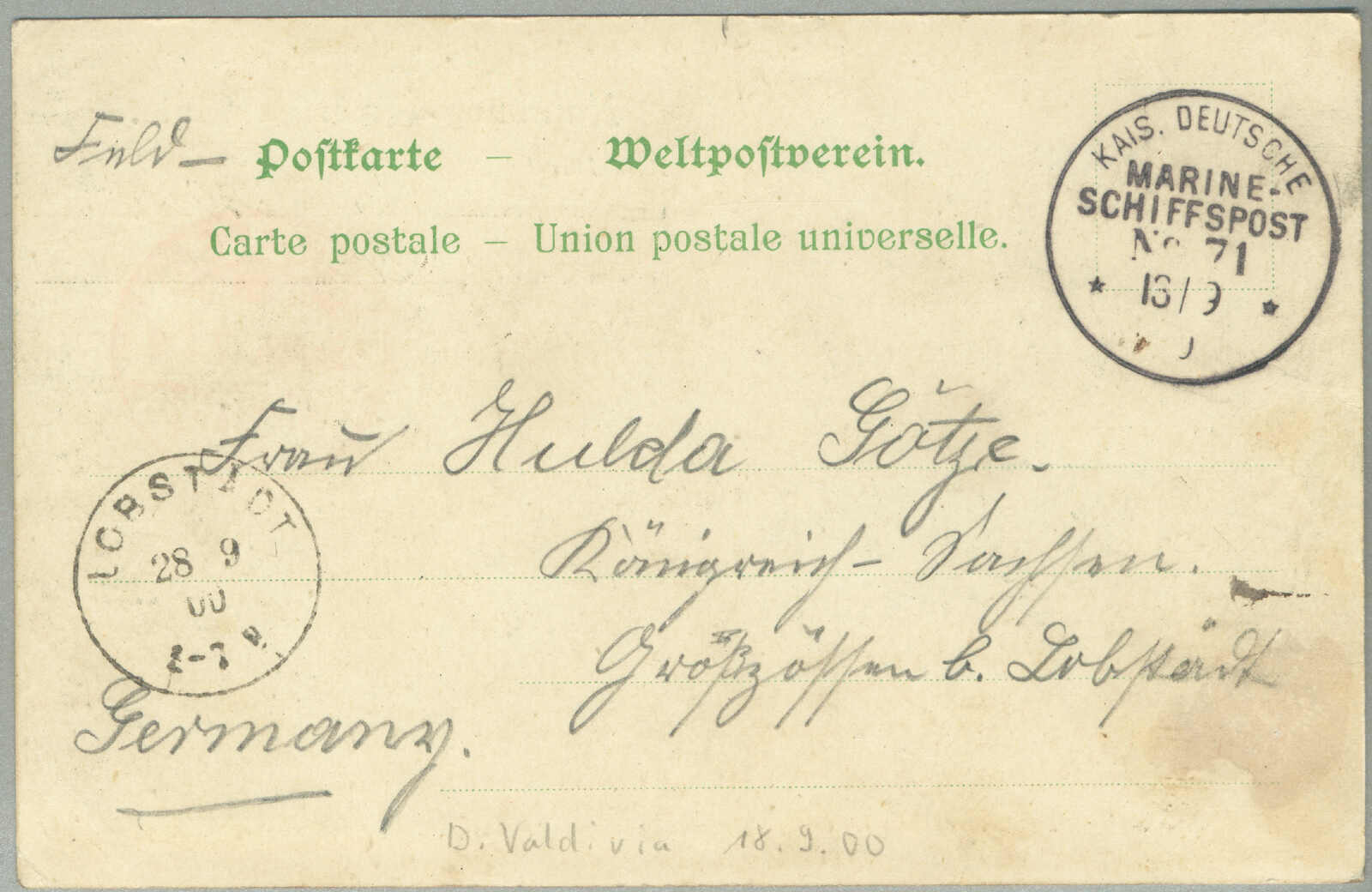 1900, 5pf., green, stationary post card, from the SMS LUCHS in COLOMBO to DORNUM, description enclosed, fresh and desirable, XF! Estimate 450€.