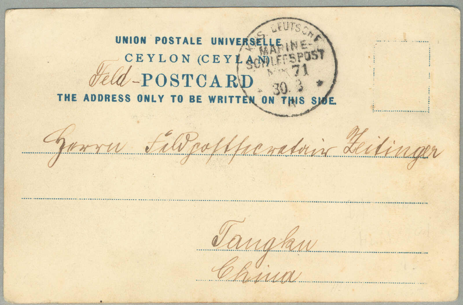 Ganzsachen Karte, von der SMS LUCHS in COLOMBO zu DORNUM, Beschreibung anbei, frisch und gesucht, Kabinett! Schätzpreis 450. (Image)