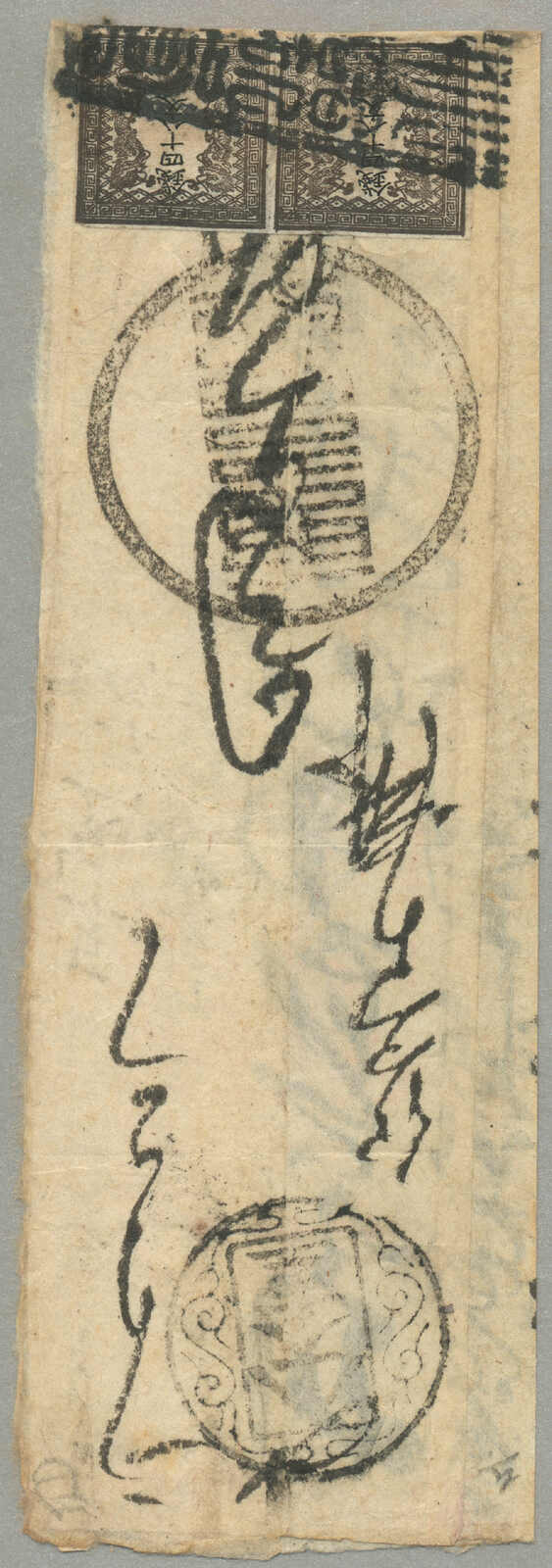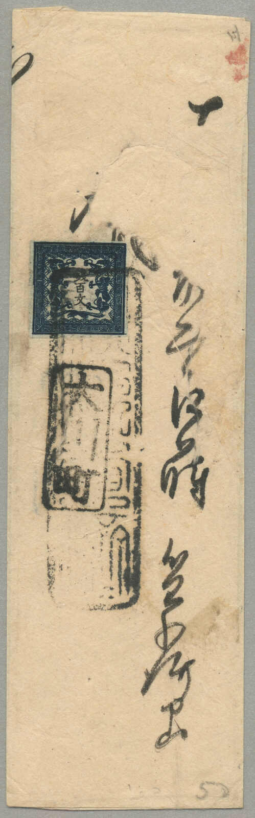 1887, 10s, blue, on cover from Yokohama, Japan to Brown’s River, Tasmania, indistinctly cancelled and prepaying 10 sen for a 1⁄2 ounce ship letter to Tasmania, endorsed - Per first steamer - at left and with Yokohama