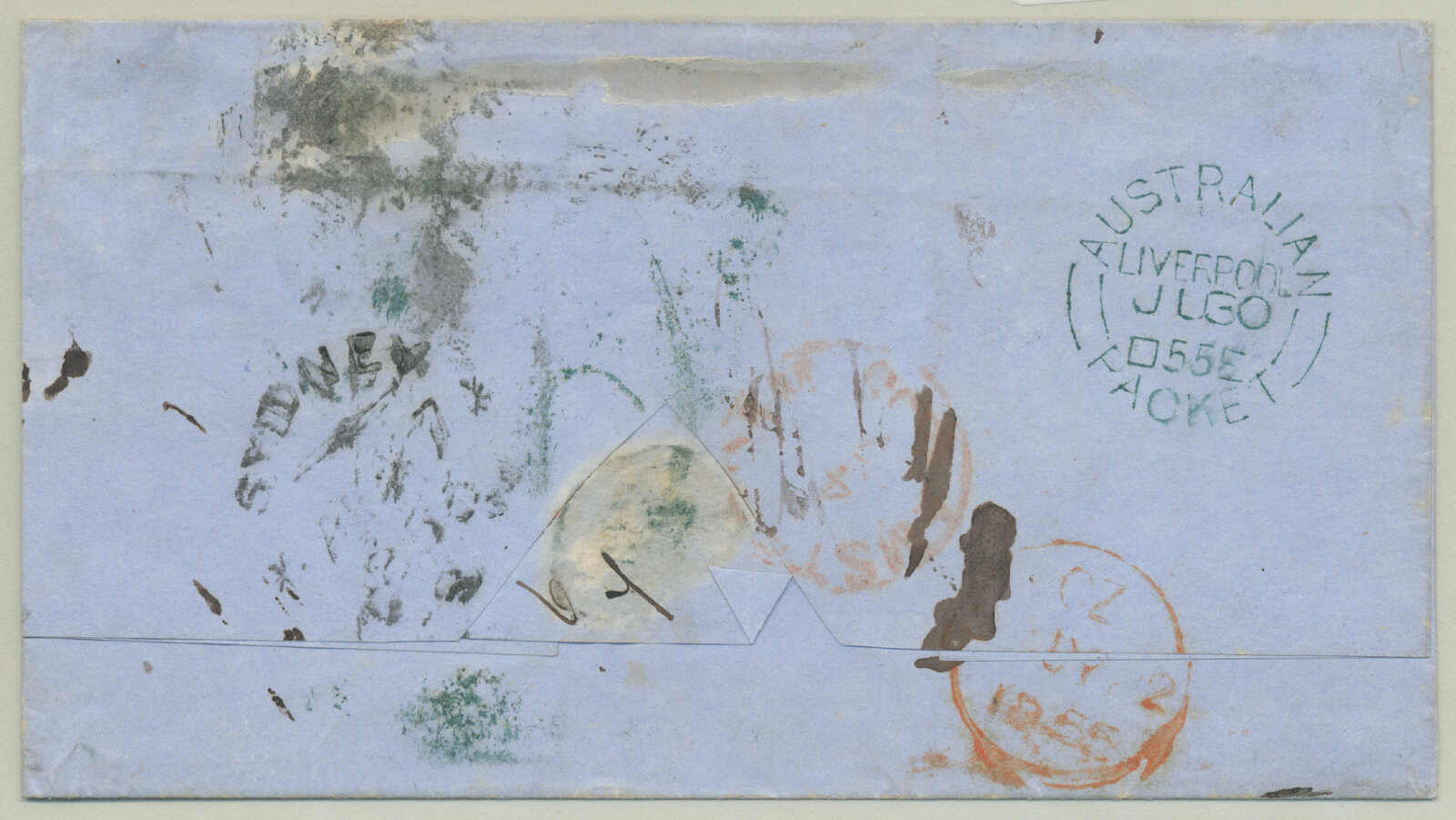 confined to reverse, otherwise fine and a very scarce destination for New South Wales, route - P&O Line: departed Sydney 22 Oct 1864 per Bombay to Galle (15 Nov), Simla (17 Nov) to Suez (3 Dec), overland to Alexandria, Euxine (5