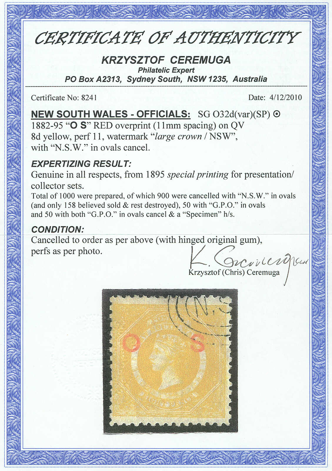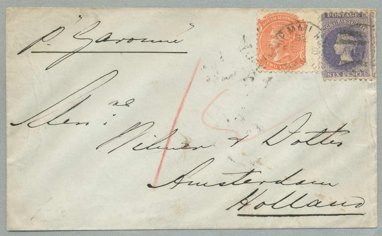 literature, illustrated in The Pre-UPU Mail from Queensland by Ben Palmer on page 143 and on page 73 in Queensland Postal History by Campbell, just five pre-UPU covers are recorded from Queensland to the Kingdom of Württemberg,