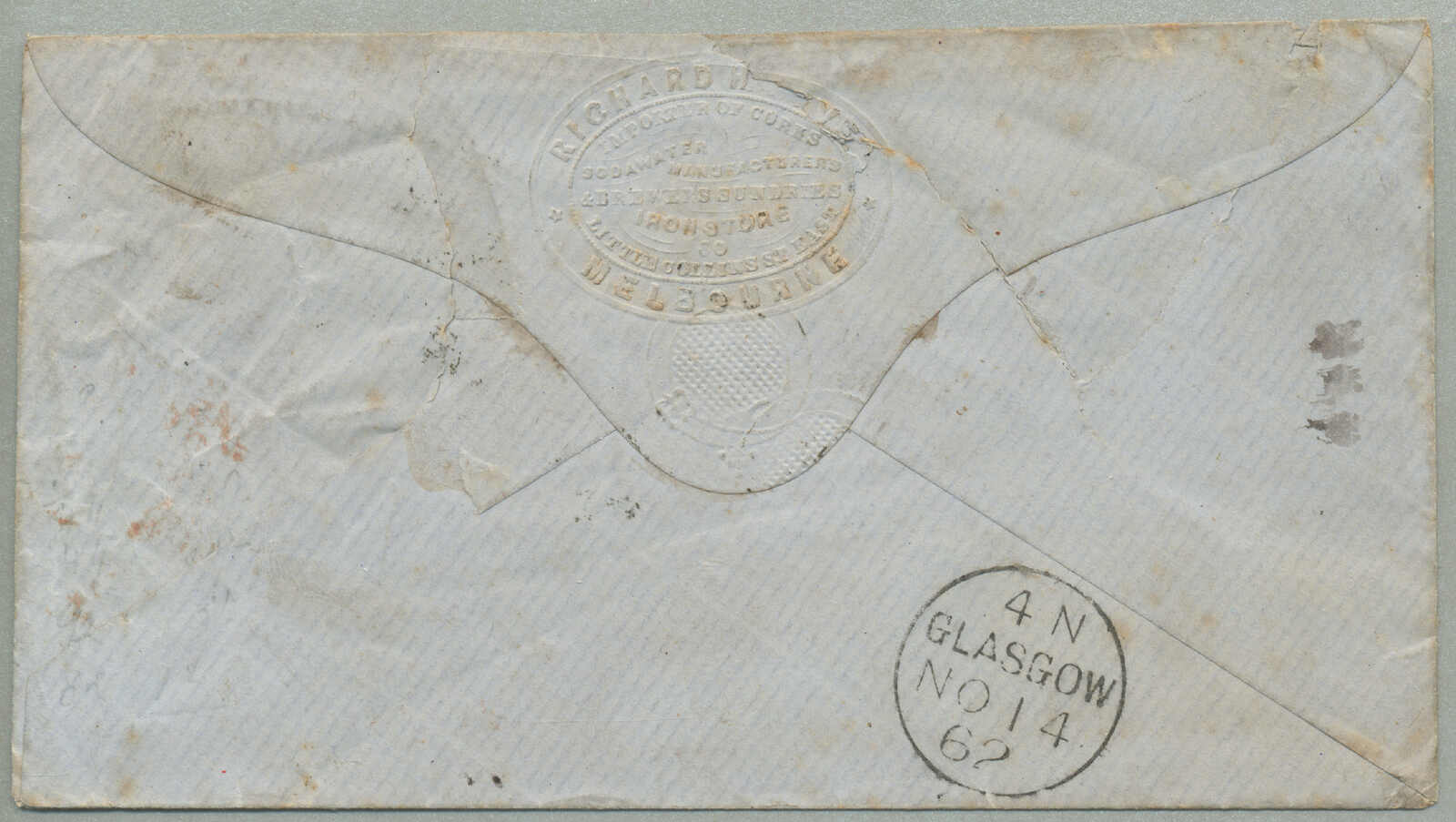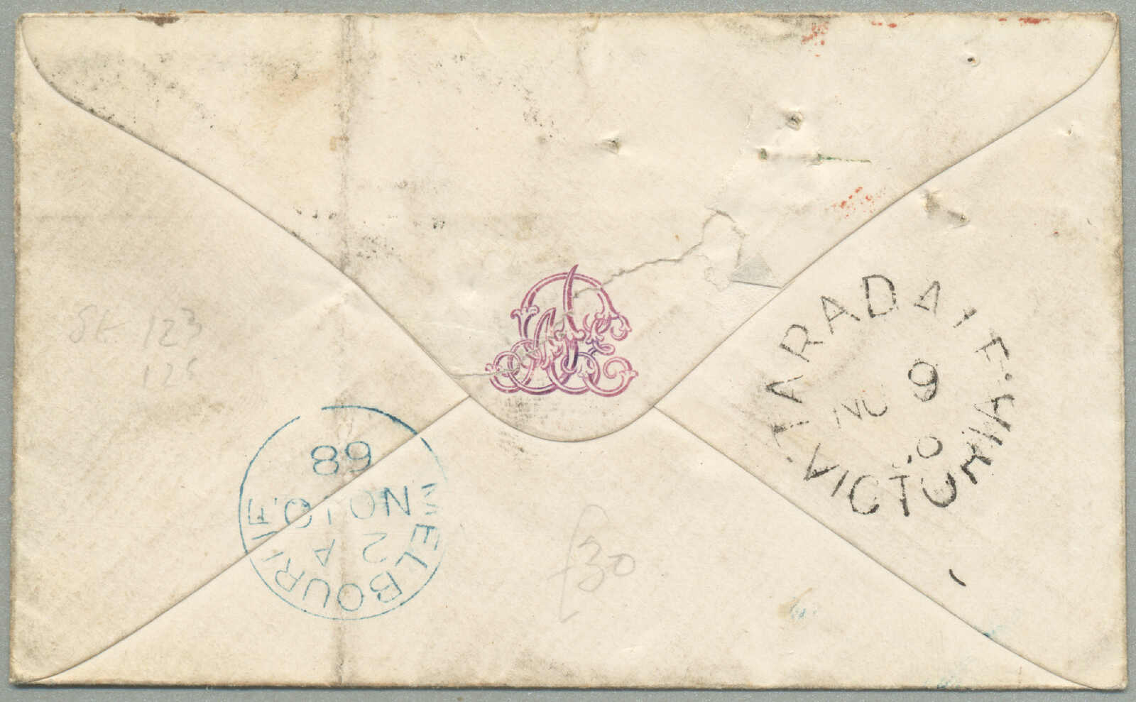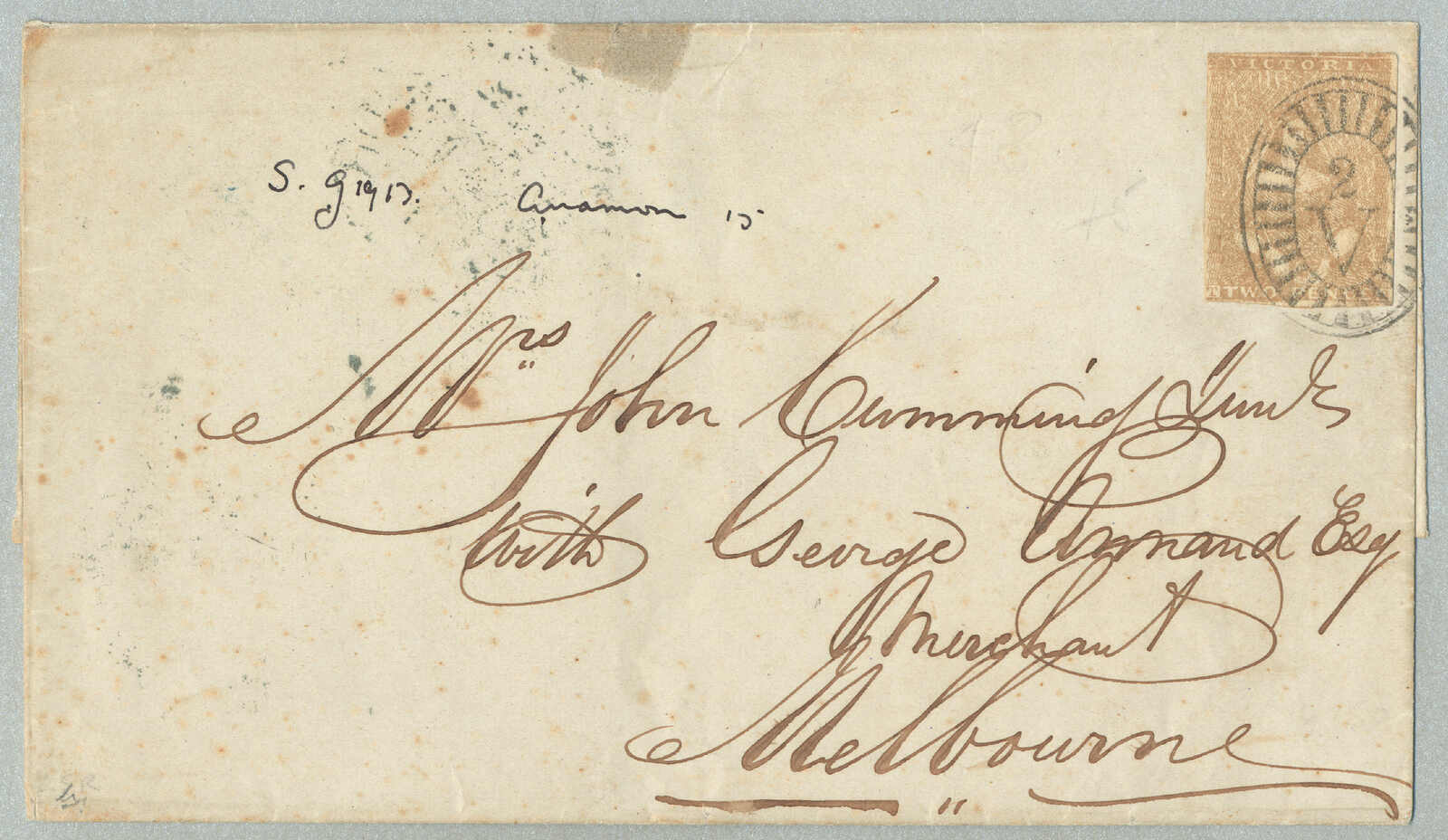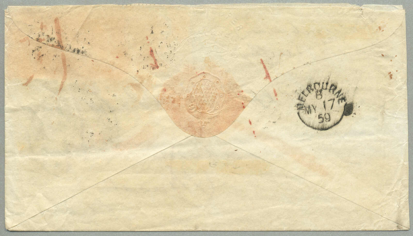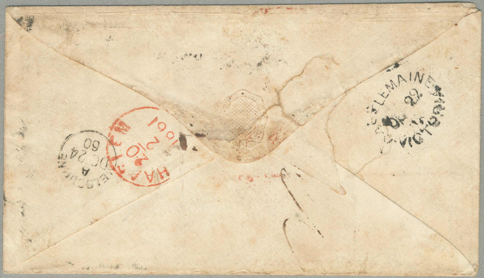 Neubraunschweig, ein paar kleinere Verschmutzung auf der Rückseite, sonst in Ordnung, einer der frühesten Briefe verzeichnet ab Victoria zu Neubraunschweig, Strecke - P&O Linie: abgefahren Melbourne 19 Aug 1859 per Salsette über Port Louis (9