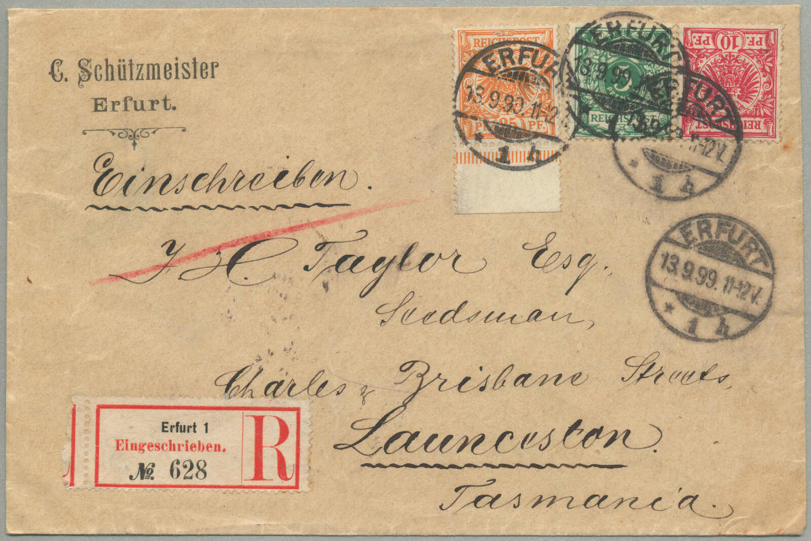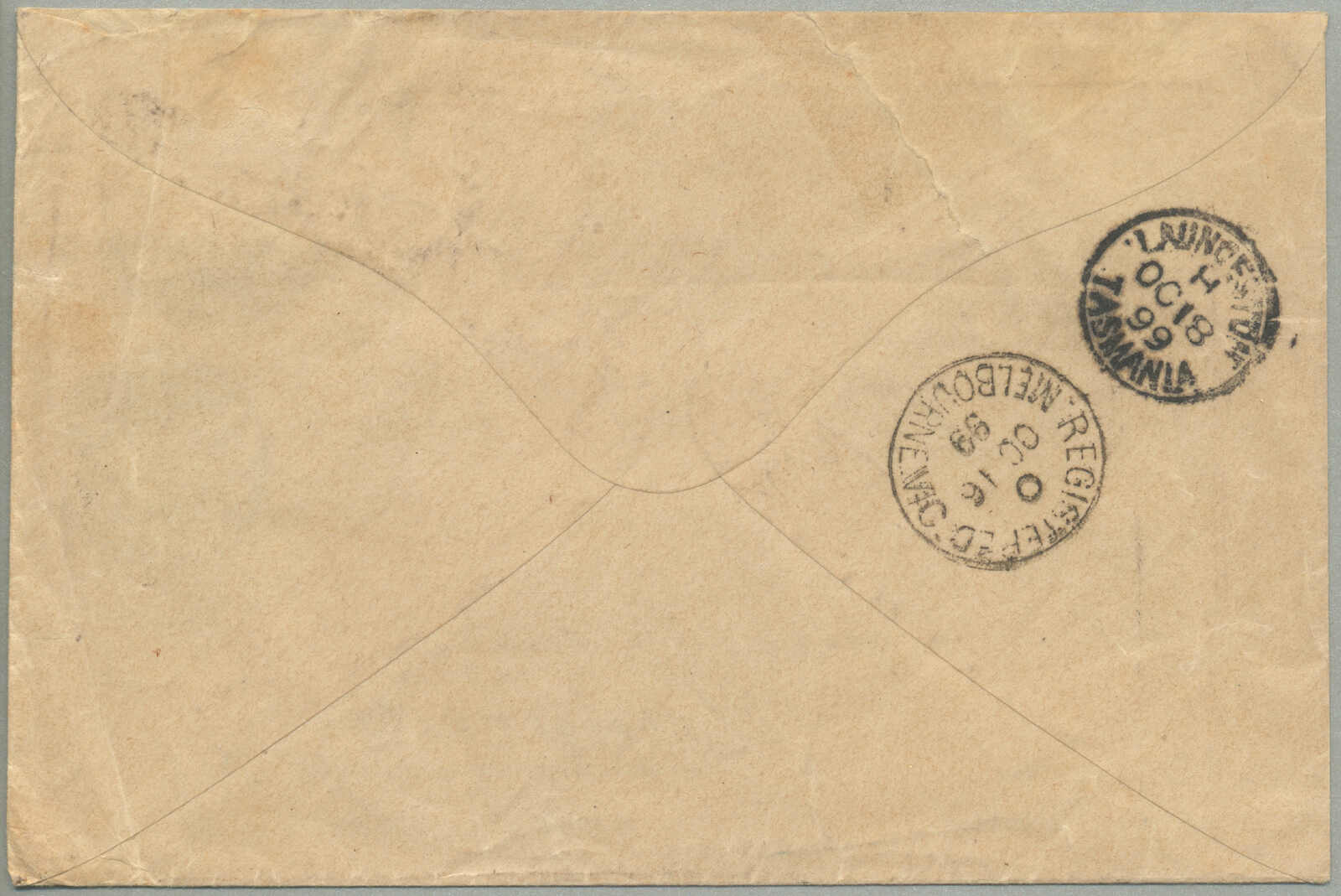 Victoria, Briefe zu die andere Australische Kolonien sehr selten sind, besonders Tasmania, senkrecht Registraturbüge Kreuz die erste und schließlich Briefmarke im 5 cent Einheit, ansonsten ein feiner und seltener Verwendung, Beschreibung inbegriffen,