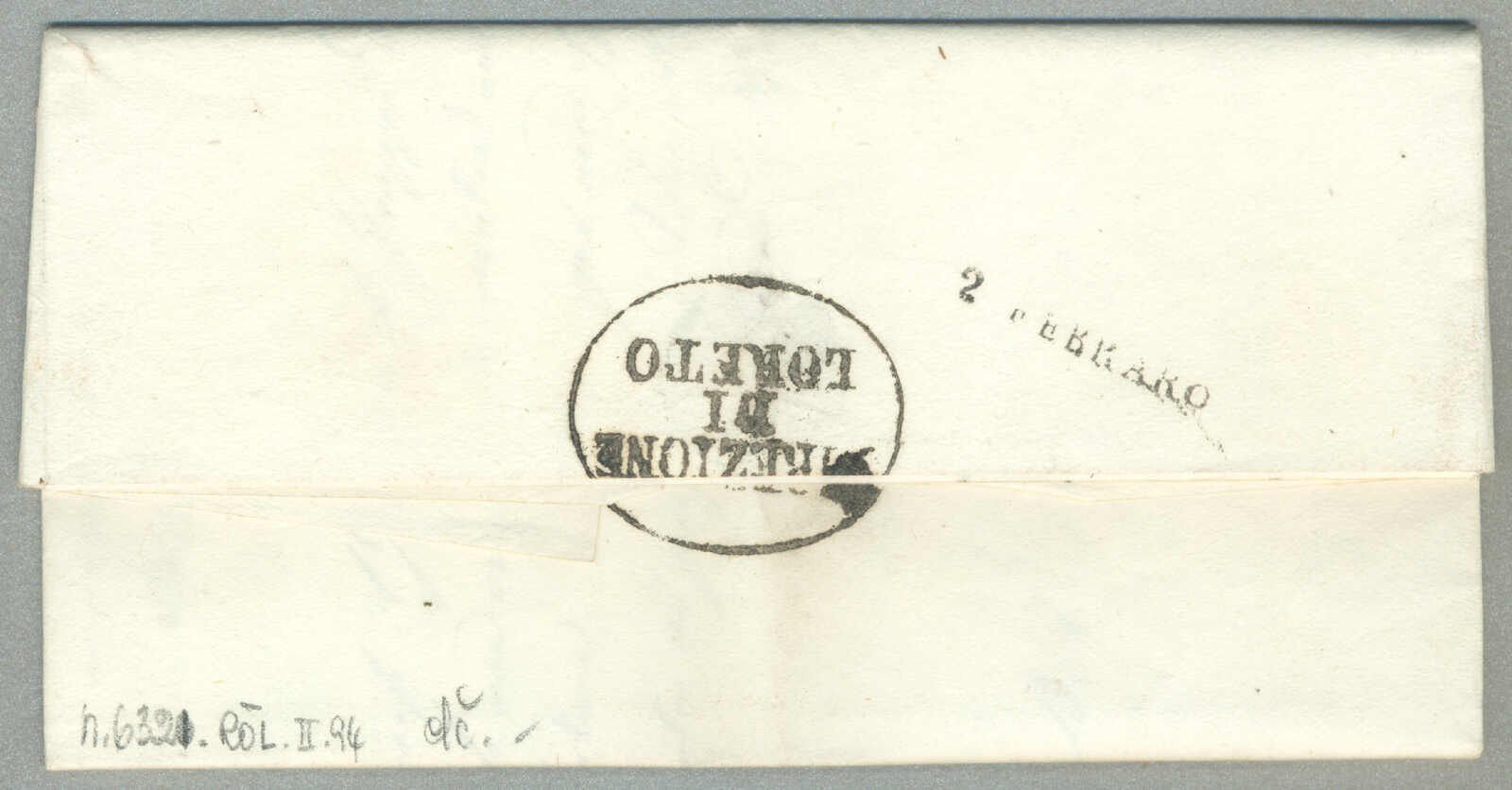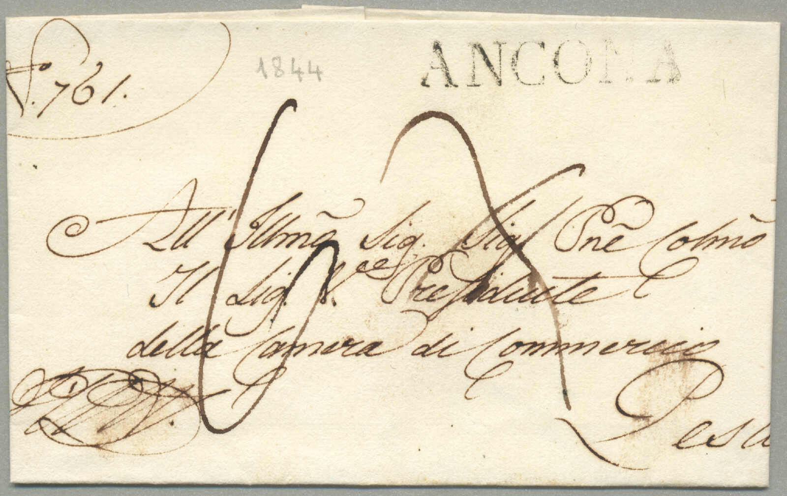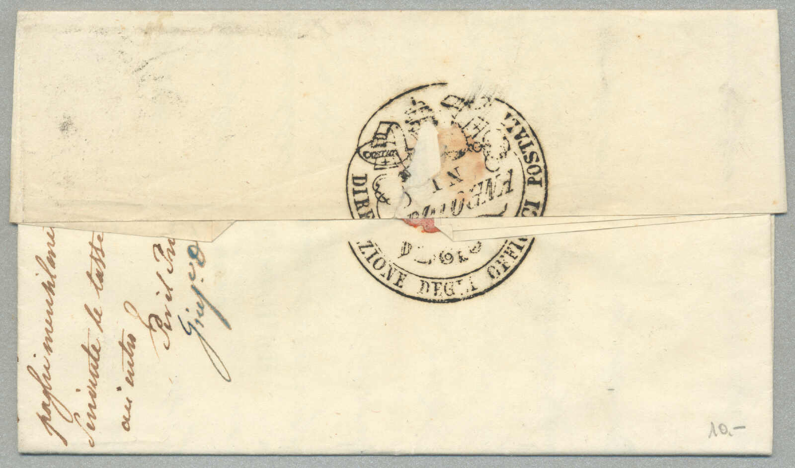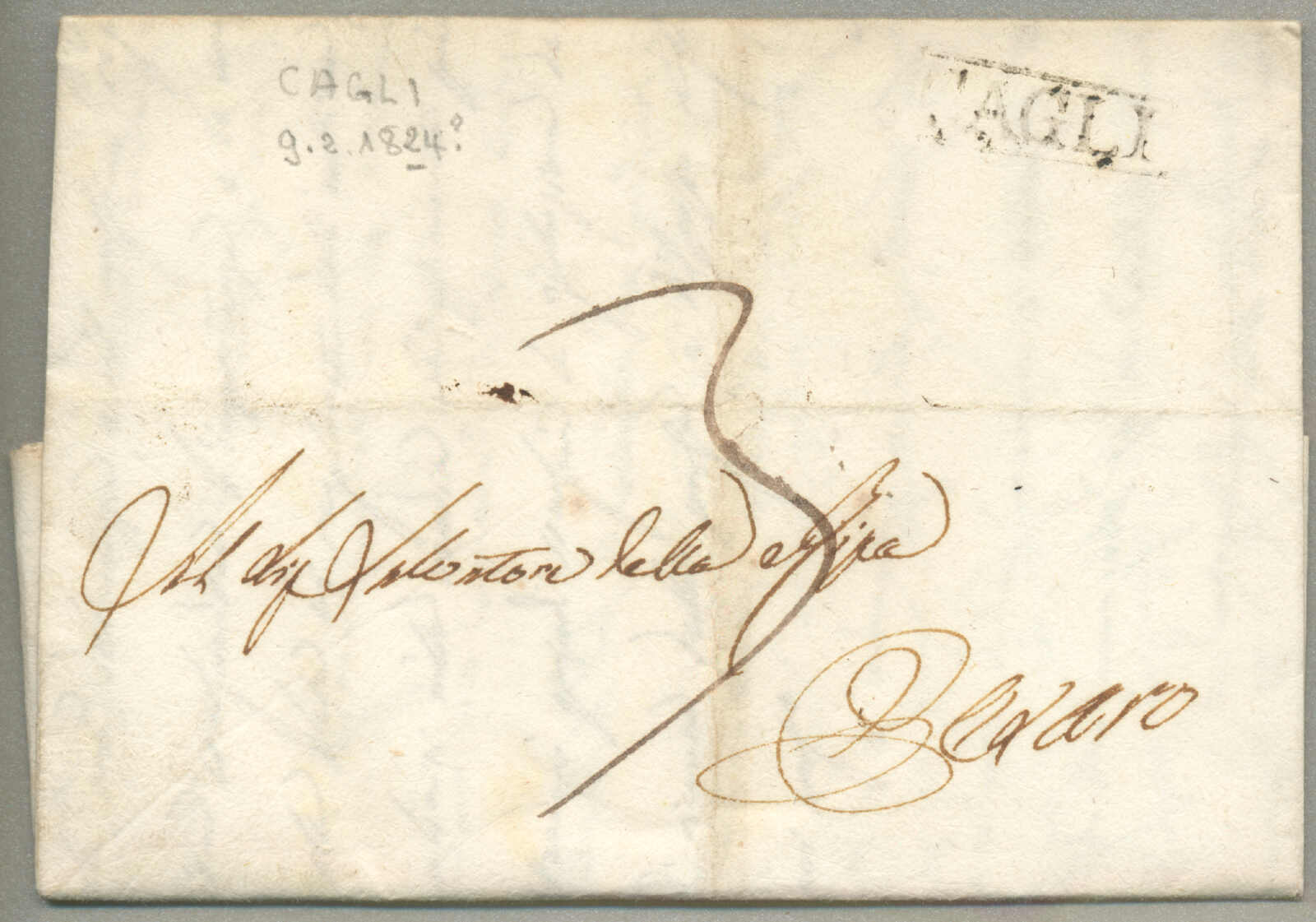 Briefpost, Brief von Corfu nach Malta, oben rechts mit Absenderstempel OFFICIO DELLA posen GENERALE und handschriftlich Taxierung 6, links mit Desinfektion Stempel MALTE, und handschriftlich Col. Vap. Inglese, diagonal Desinfektionsschlitze sind auf