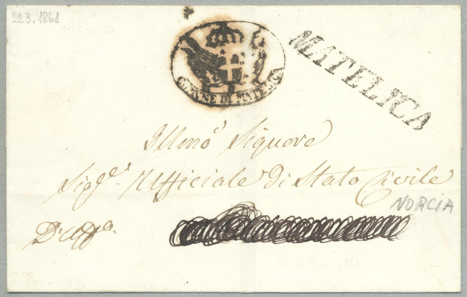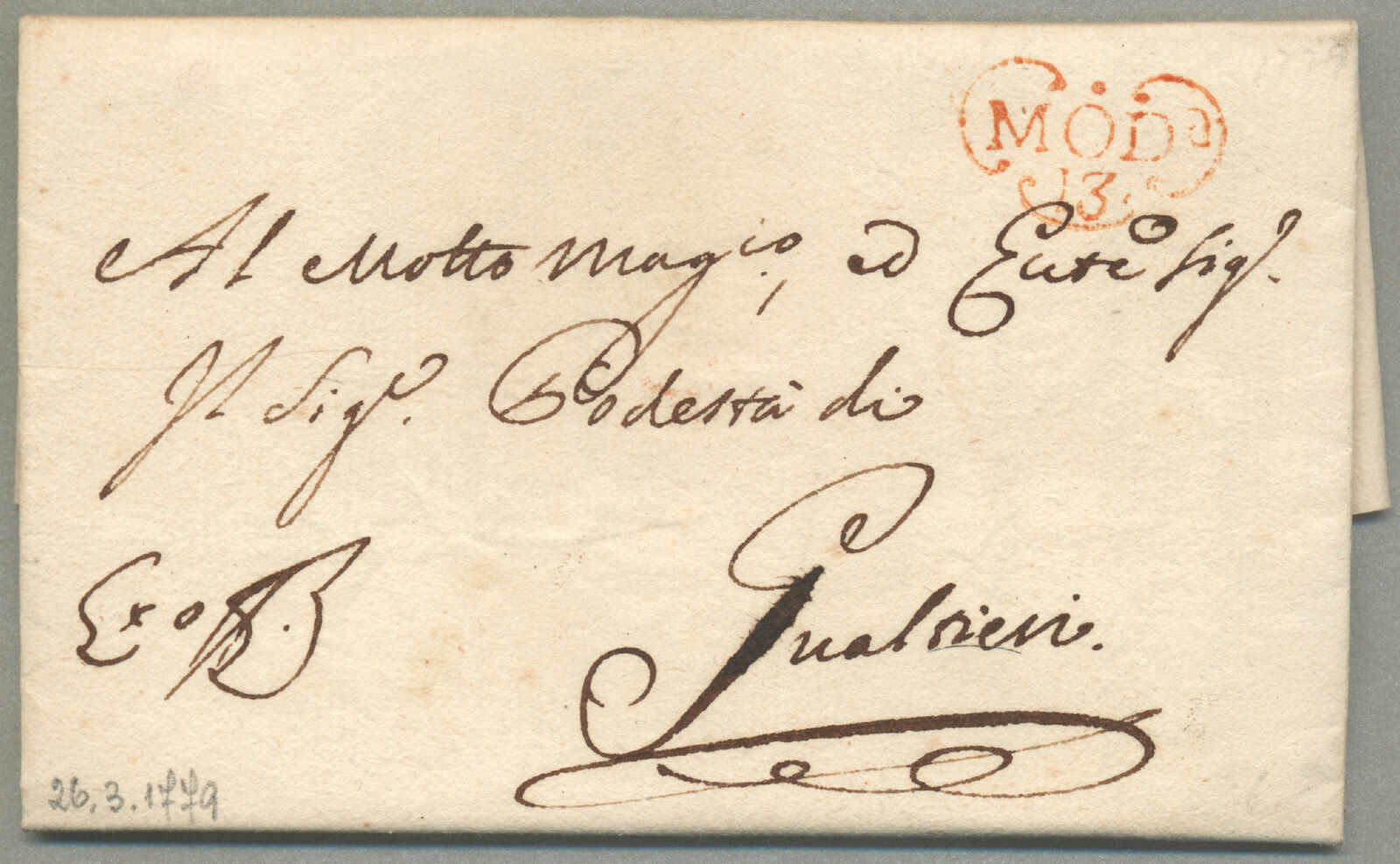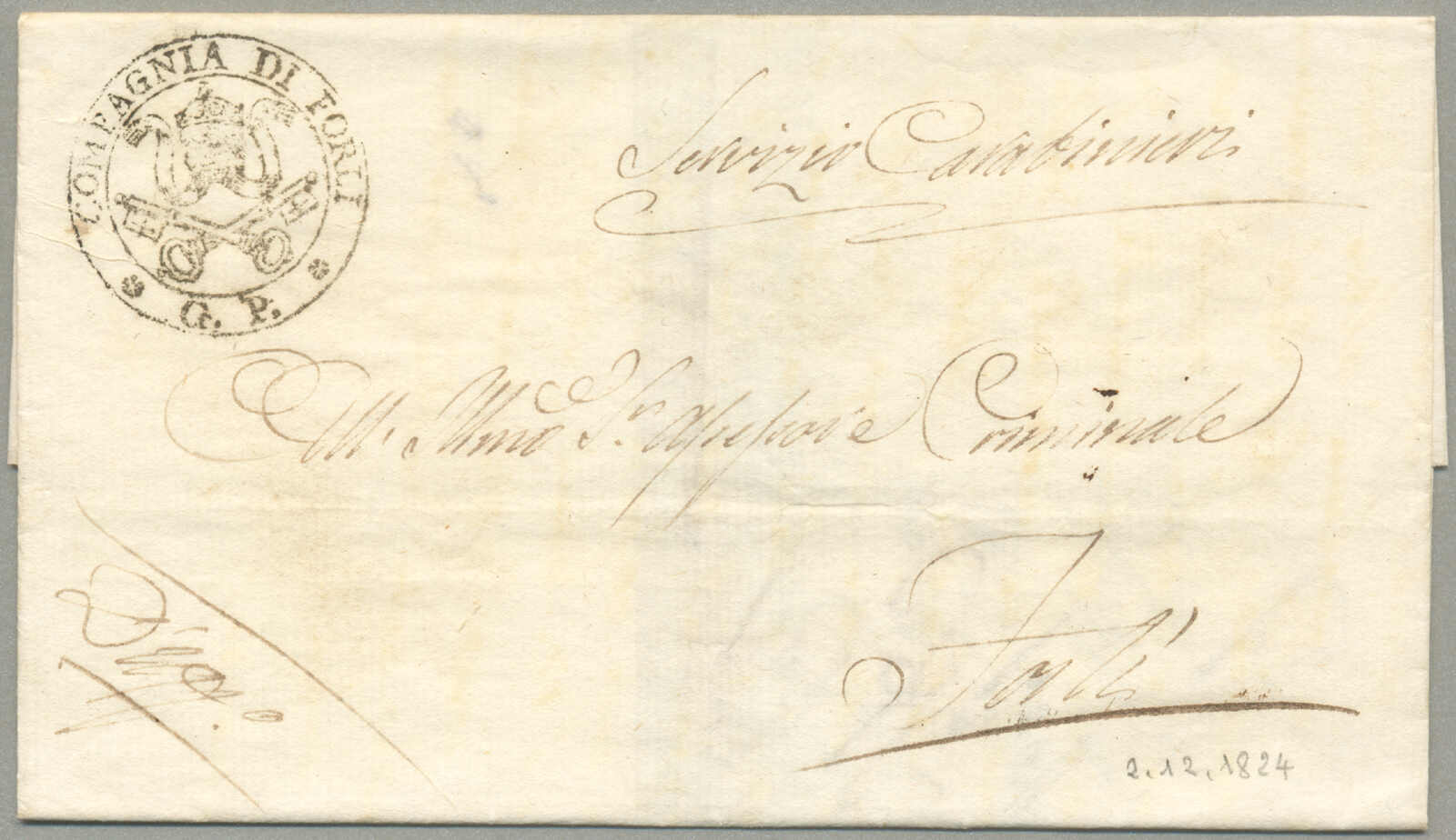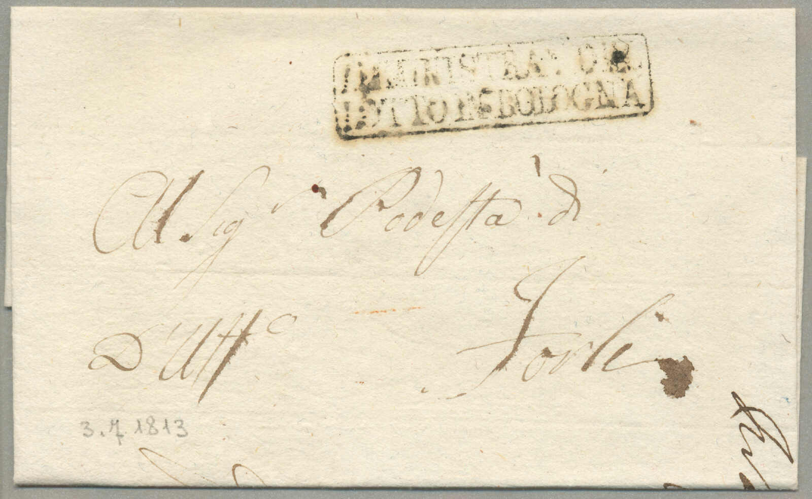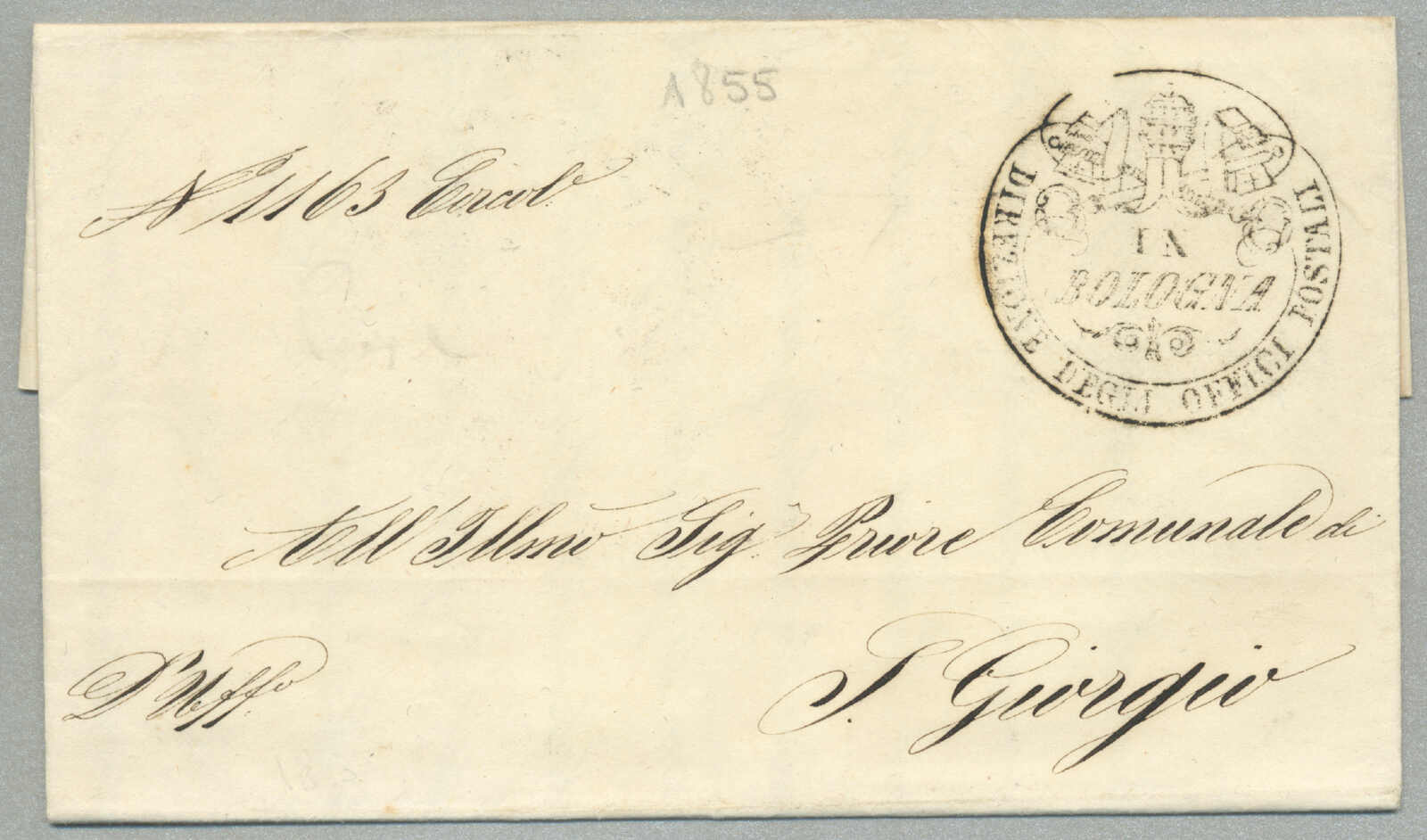 Briefpost, Brief von Corfu nach Malta, oben rechts mit Absenderstempel OFFICIO DELLA posen GENERALE und handschriftlich Taxierung 6, links mit Desinfektion Stempel MALTE, und handschriftlich Col. Vap. Inglese, diagonal Desinfektionsschlitze sind auf