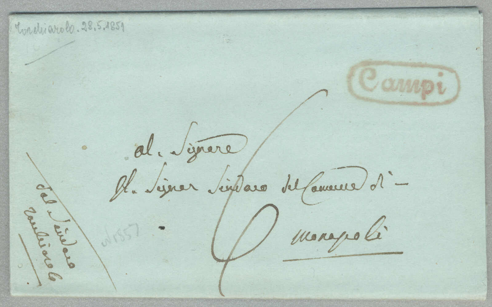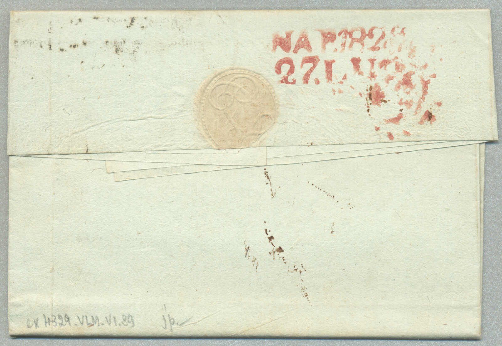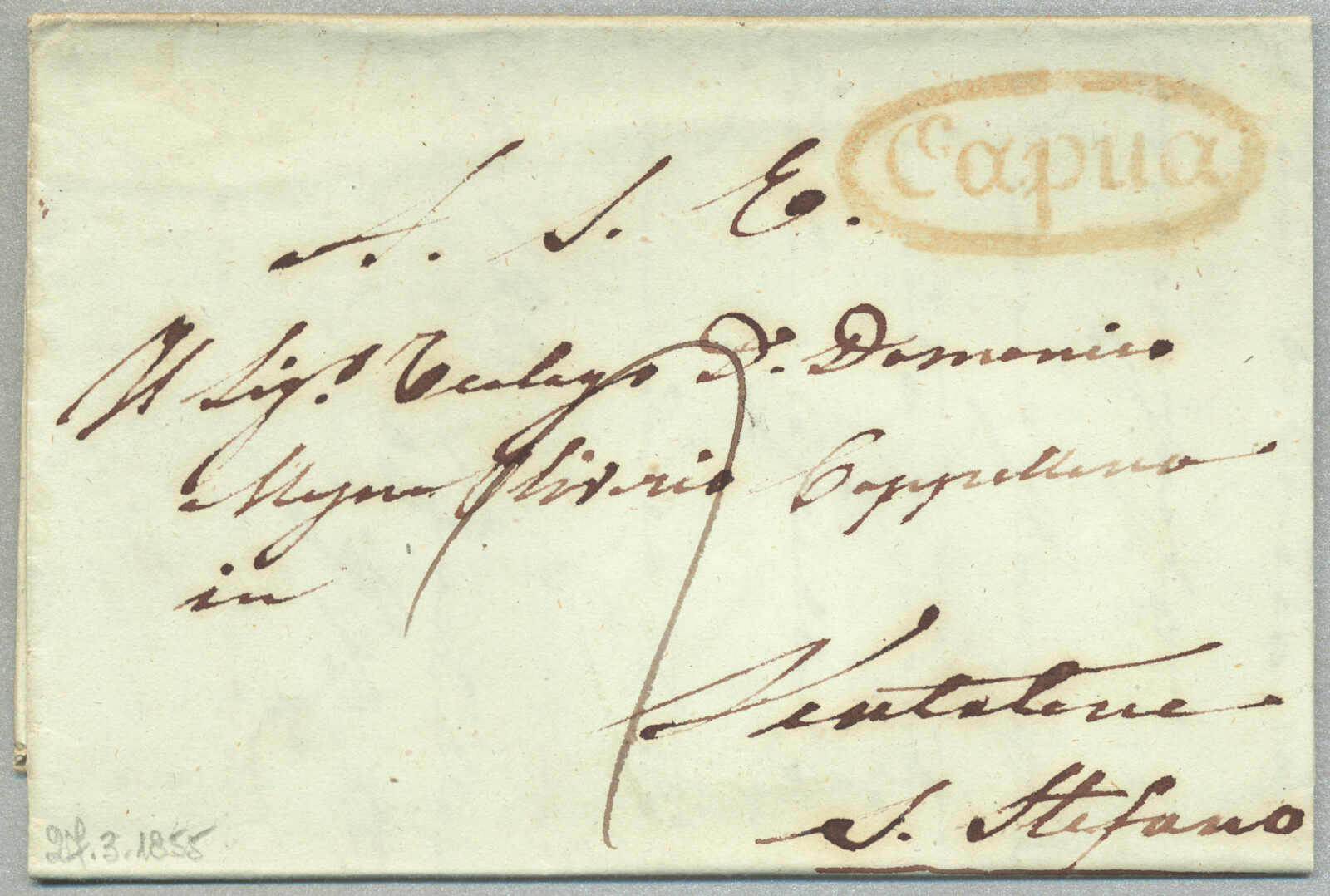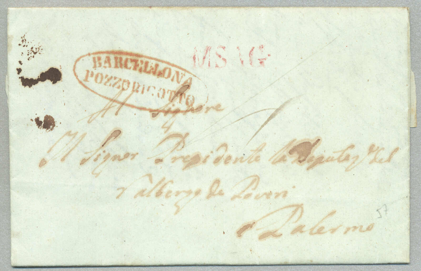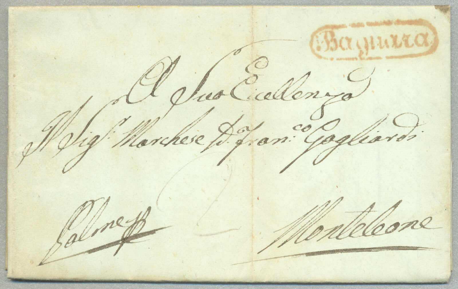 about 1830s, with neatly strike of red AULETTA and red DI RISERVIZIO, on folded letter, ex Provera, XF! Estimate 200€.