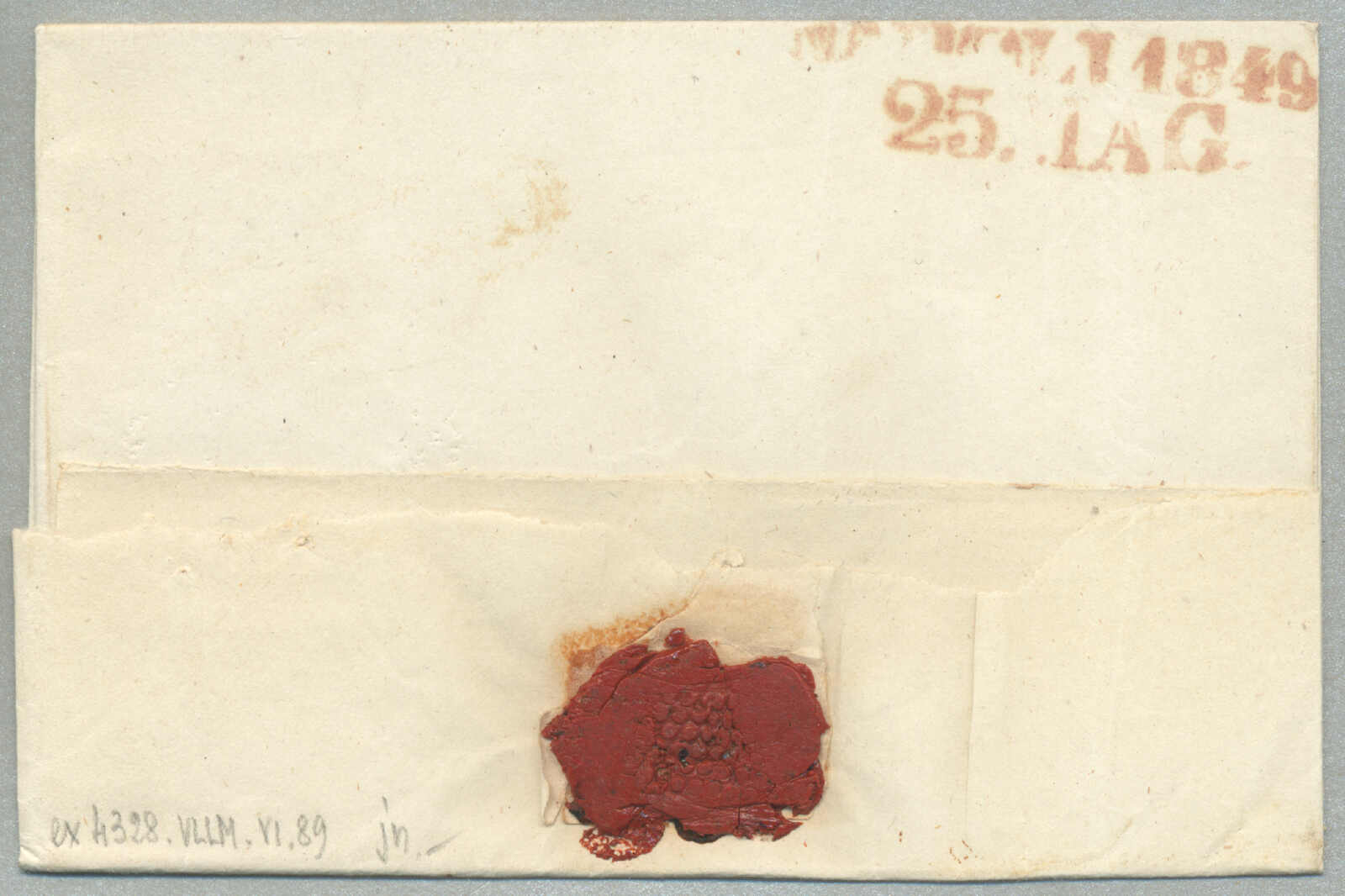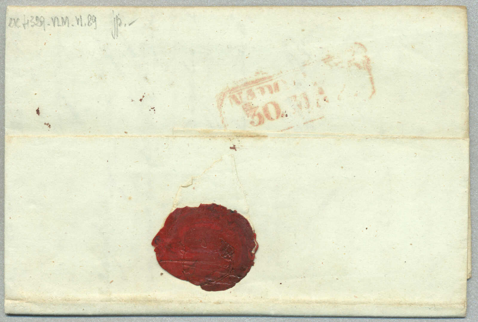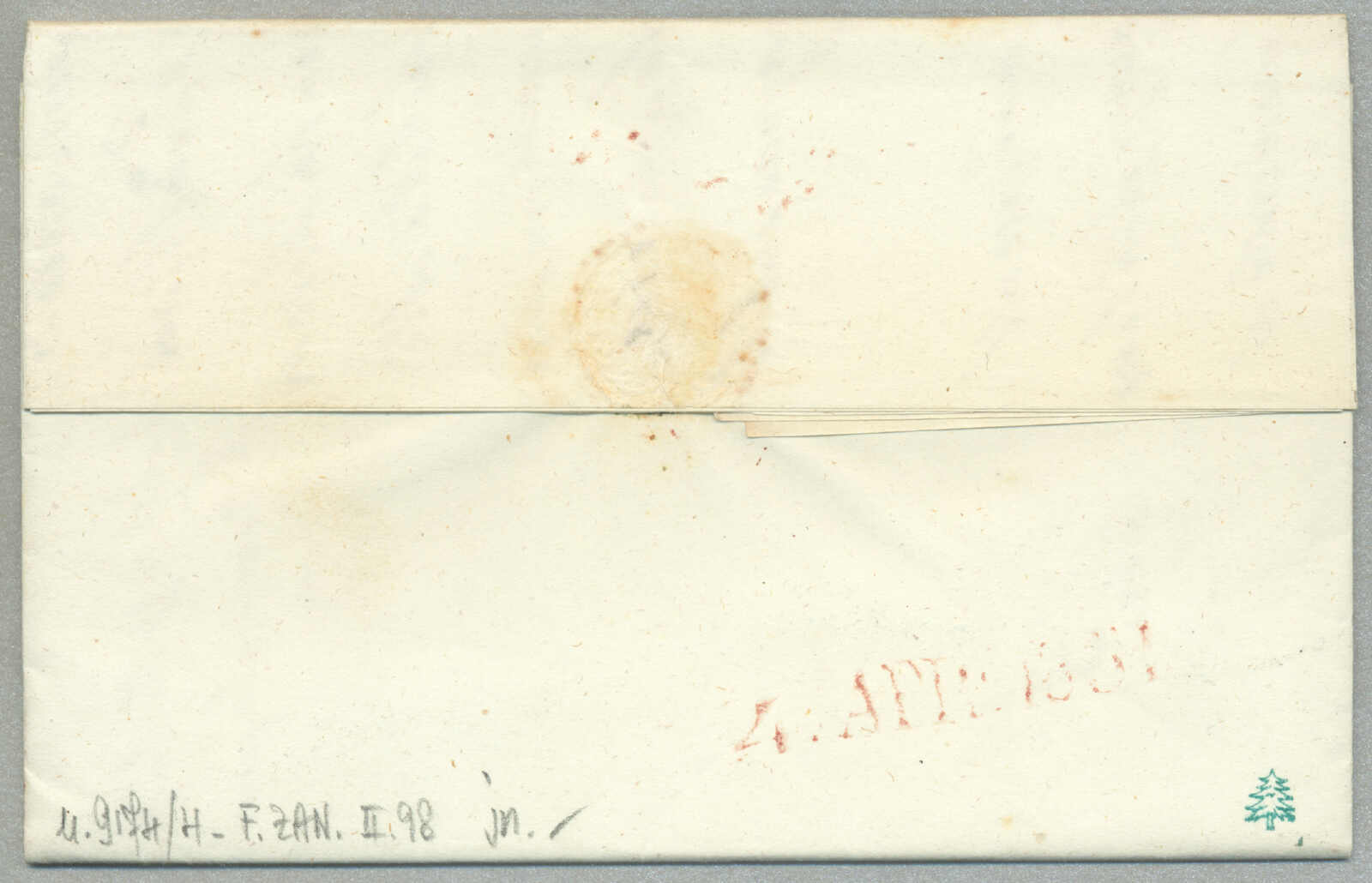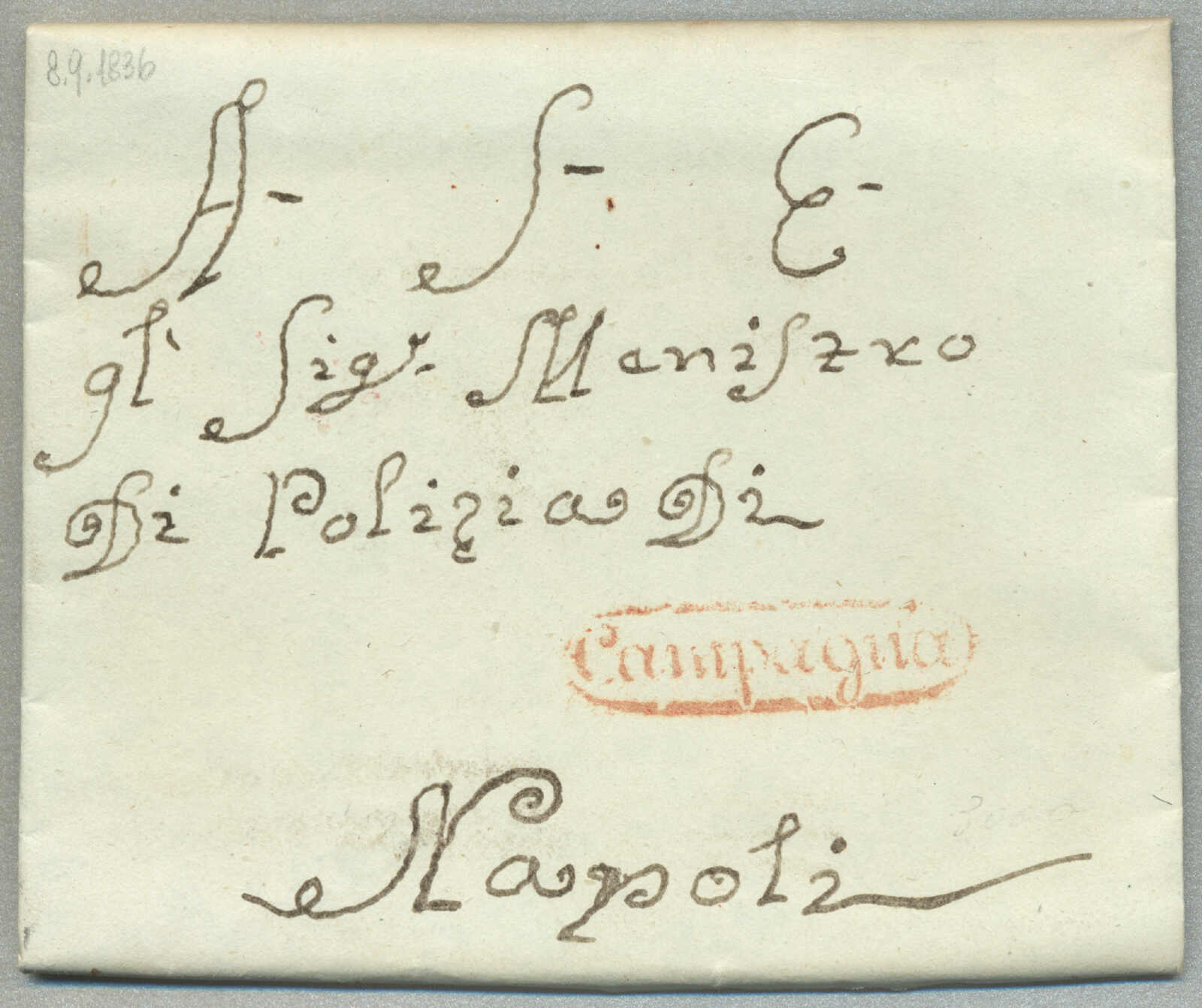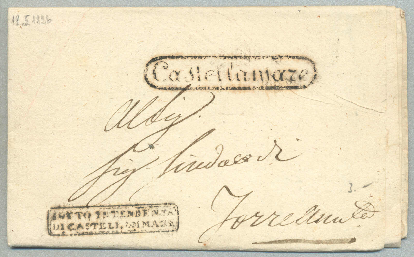 about 1830s, with neatly strike of red AULETTA and red DI RISERVIZIO, on folded letter, ex Provera, XF! Estimate 200€.