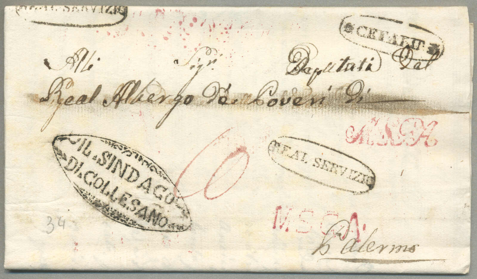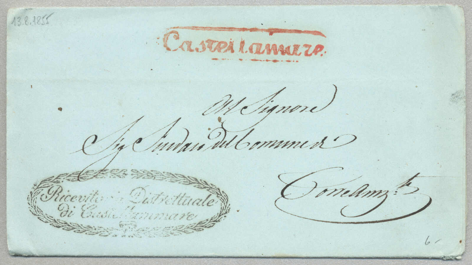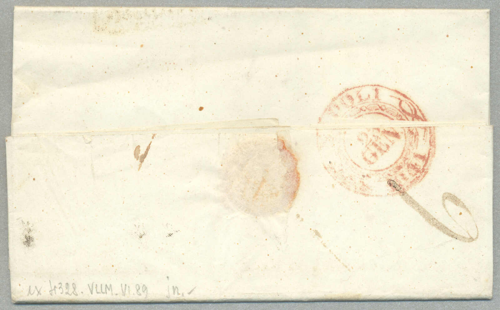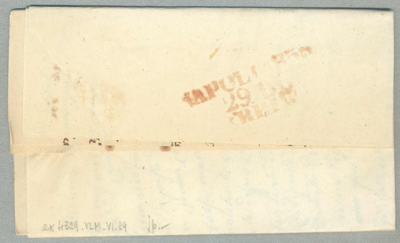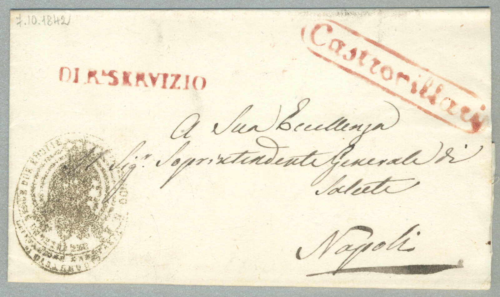 1832, with neatly strike of red CASTELTERMINI also red MSAC, red ink 4 tax remark, on folded letter, ex Provera, XF! Estimate 200€.