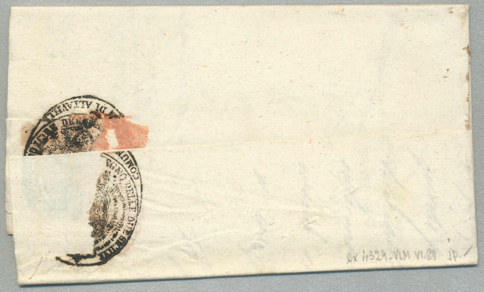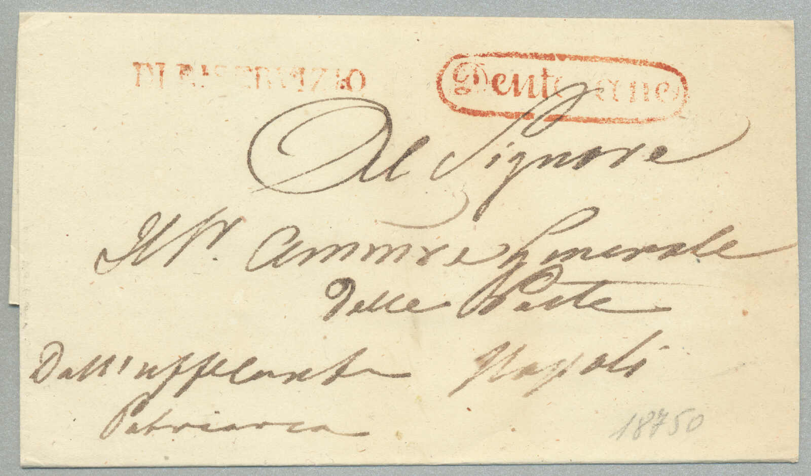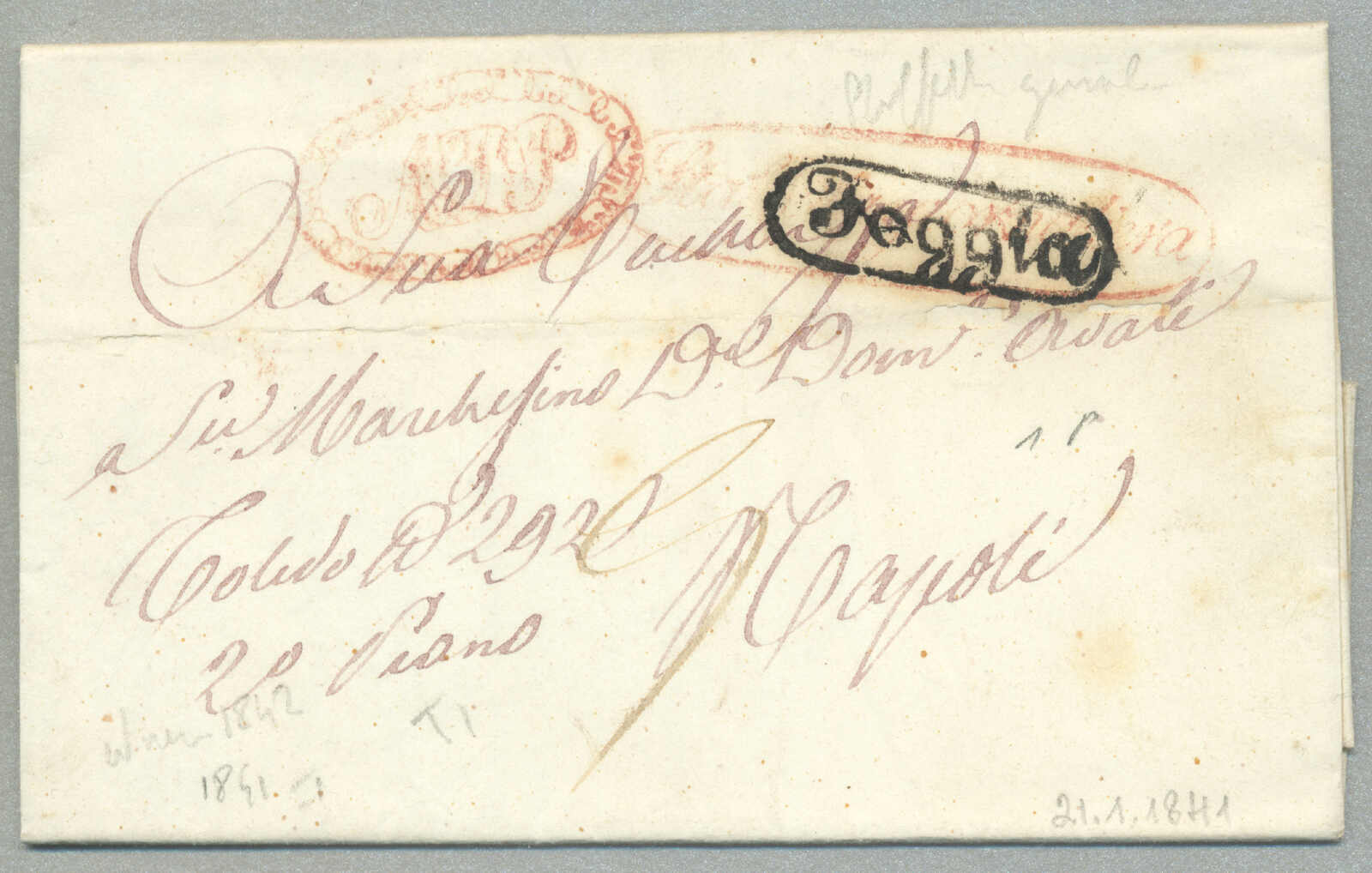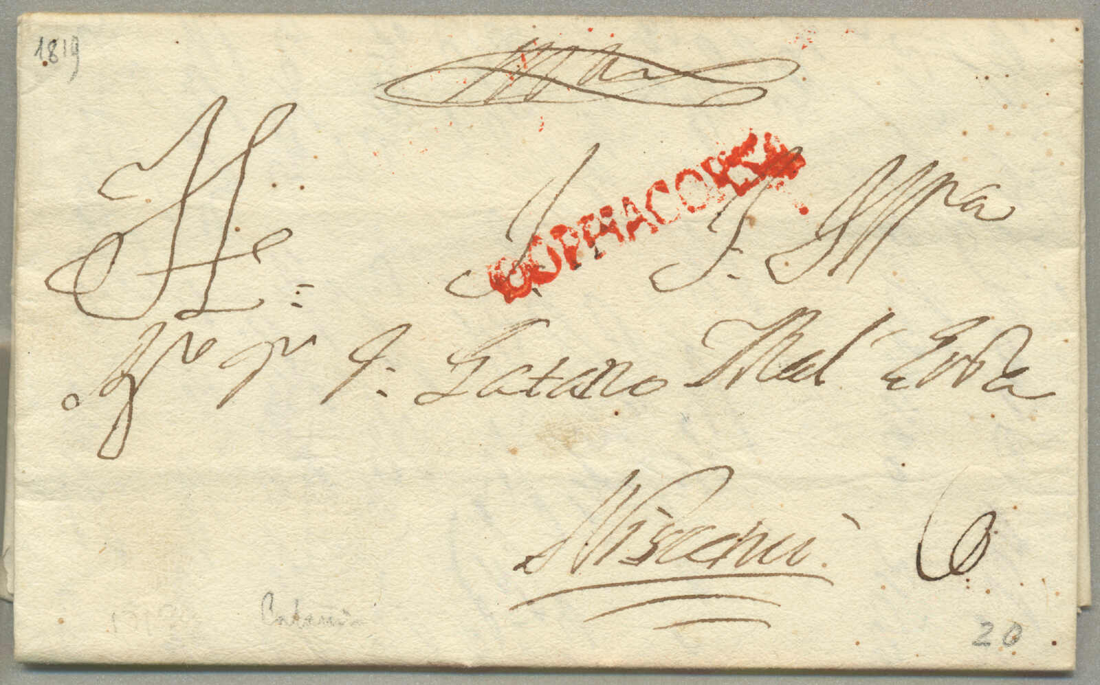 1832, with neatly strike of red CASTELTERMINI also red MSAC, red ink 4 tax remark, on folded letter, ex Provera, XF! Estimate 200€.