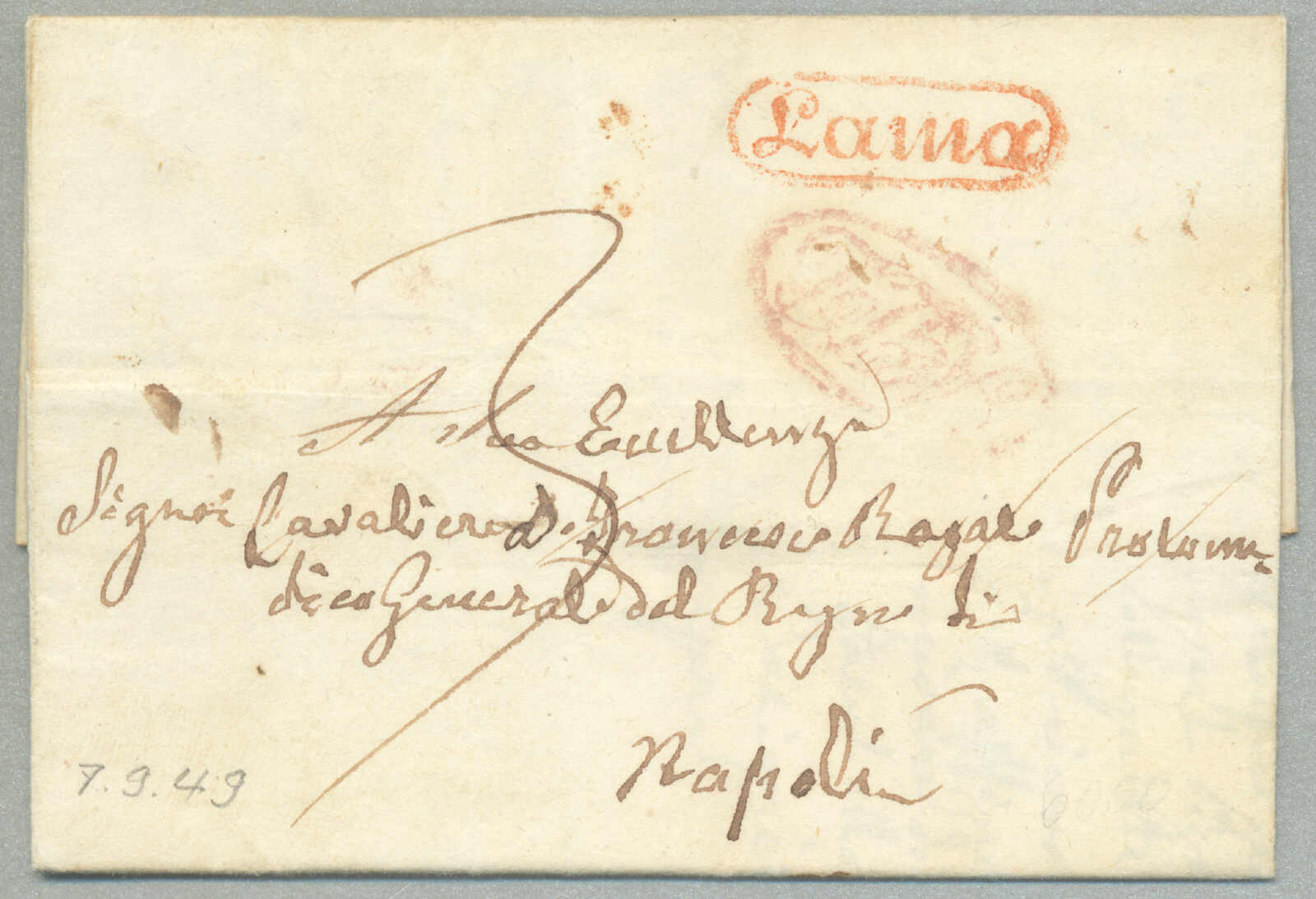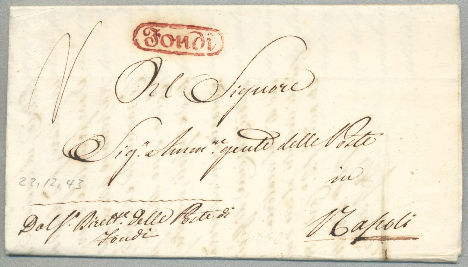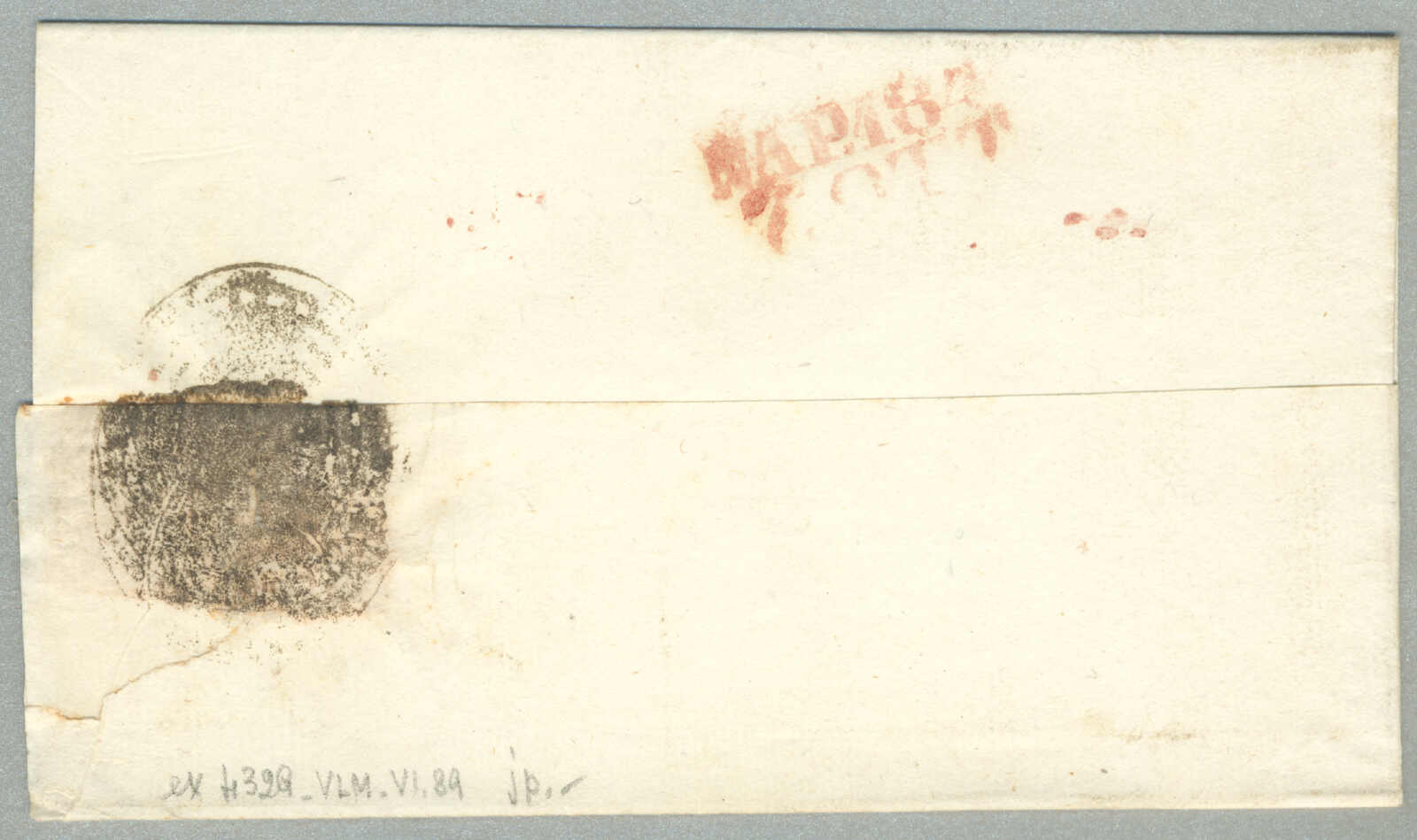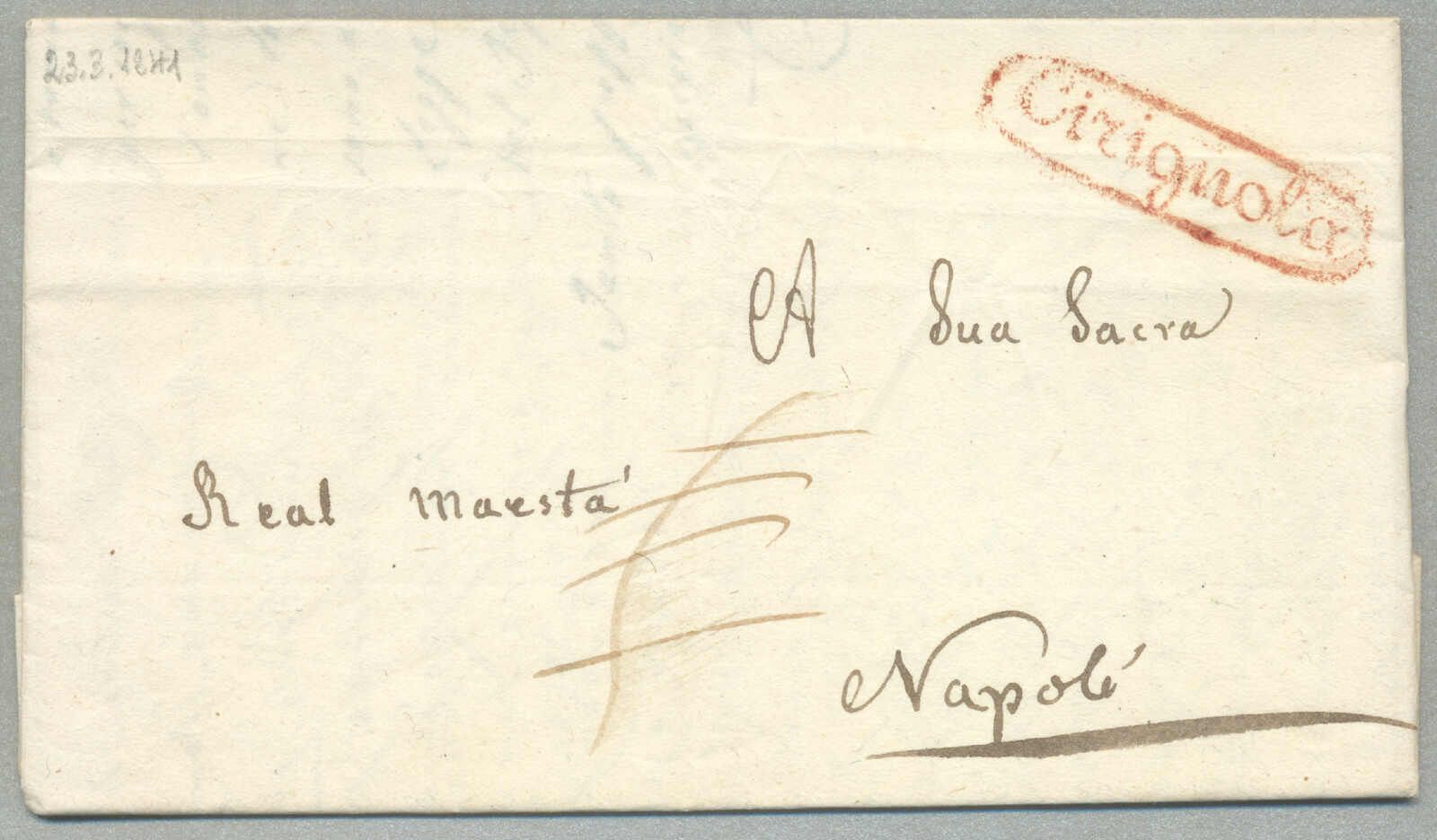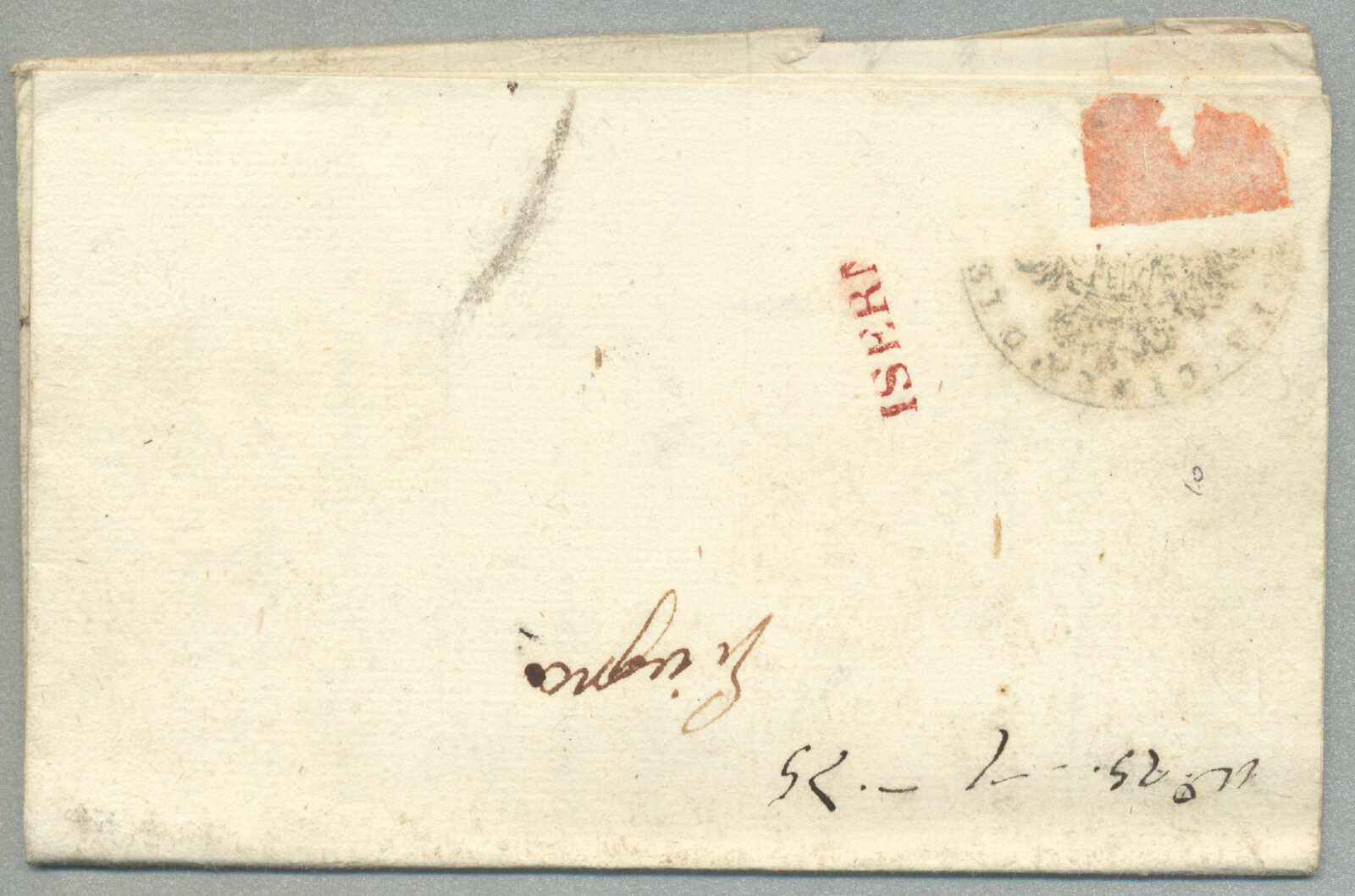 1832, with neatly strike of red CASTELTERMINI also red MSAC, red ink 4 tax remark, on folded letter, ex Provera, XF! Estimate 200€.