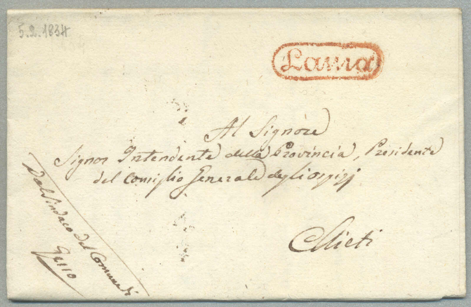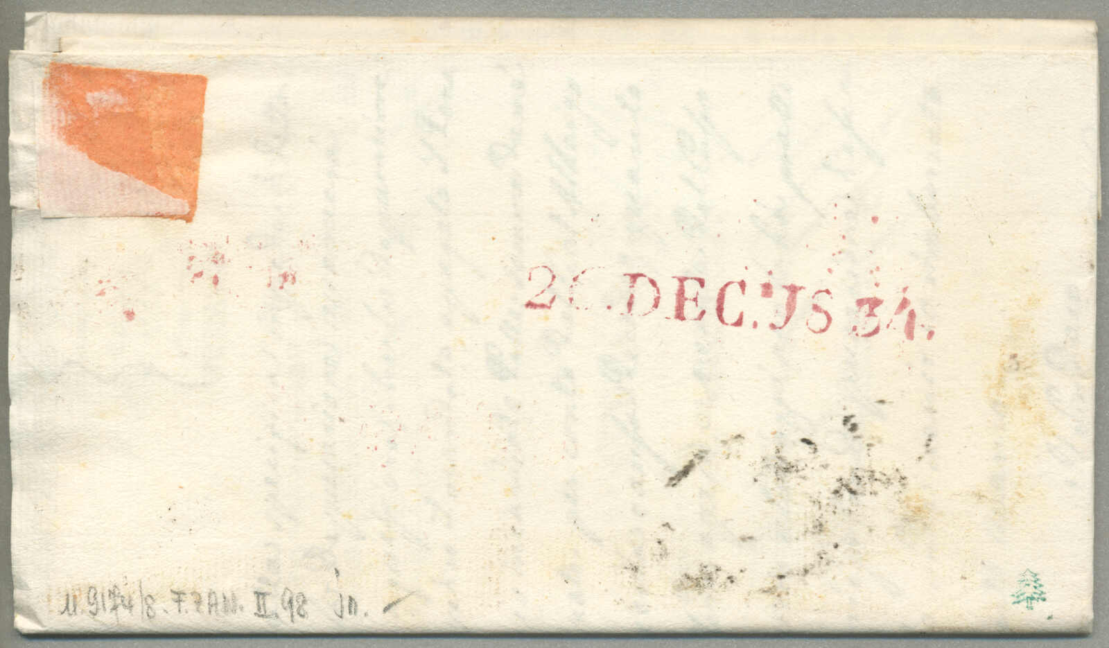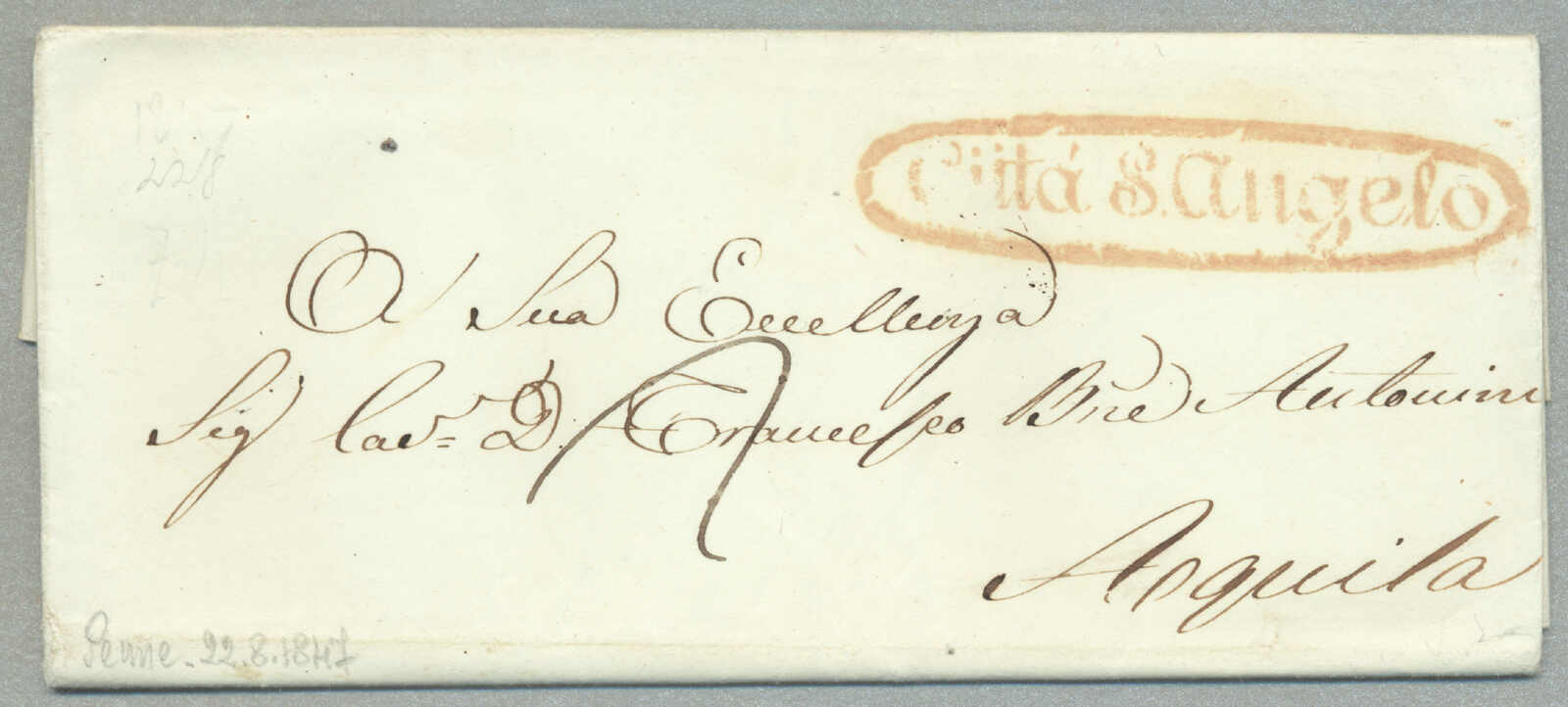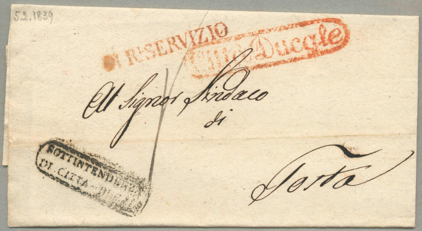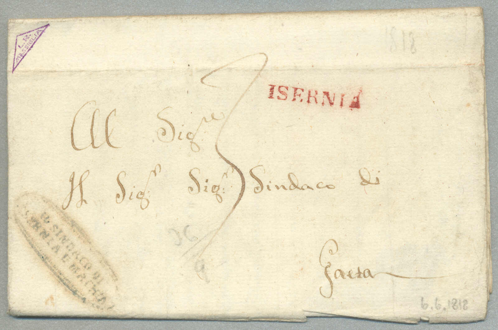 1832, with neatly strike of red CASTELTERMINI also red MSAC, red ink 4 tax remark, on folded letter, ex Provera, XF! Estimate 200€.