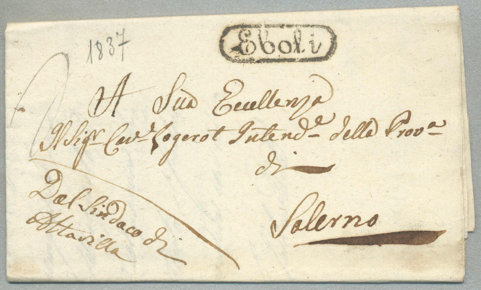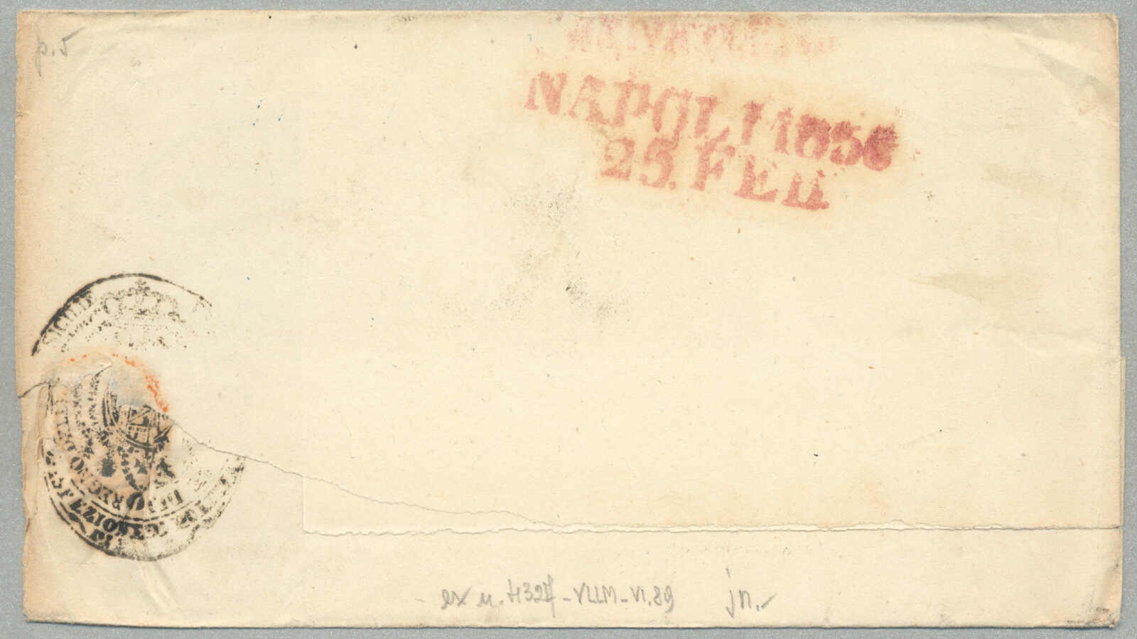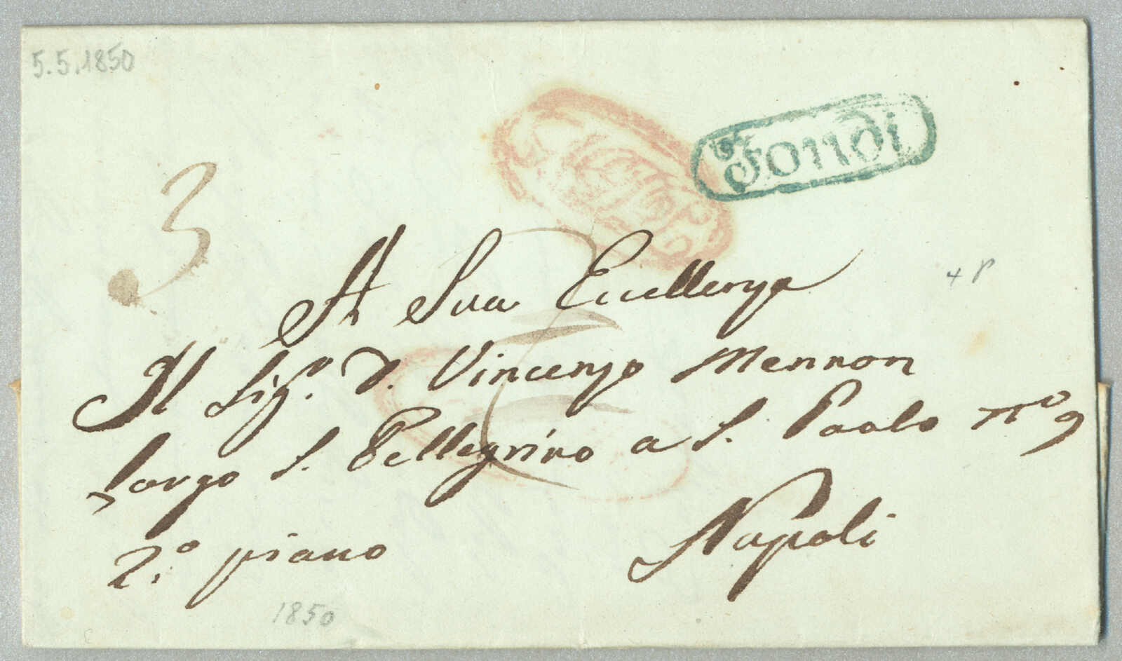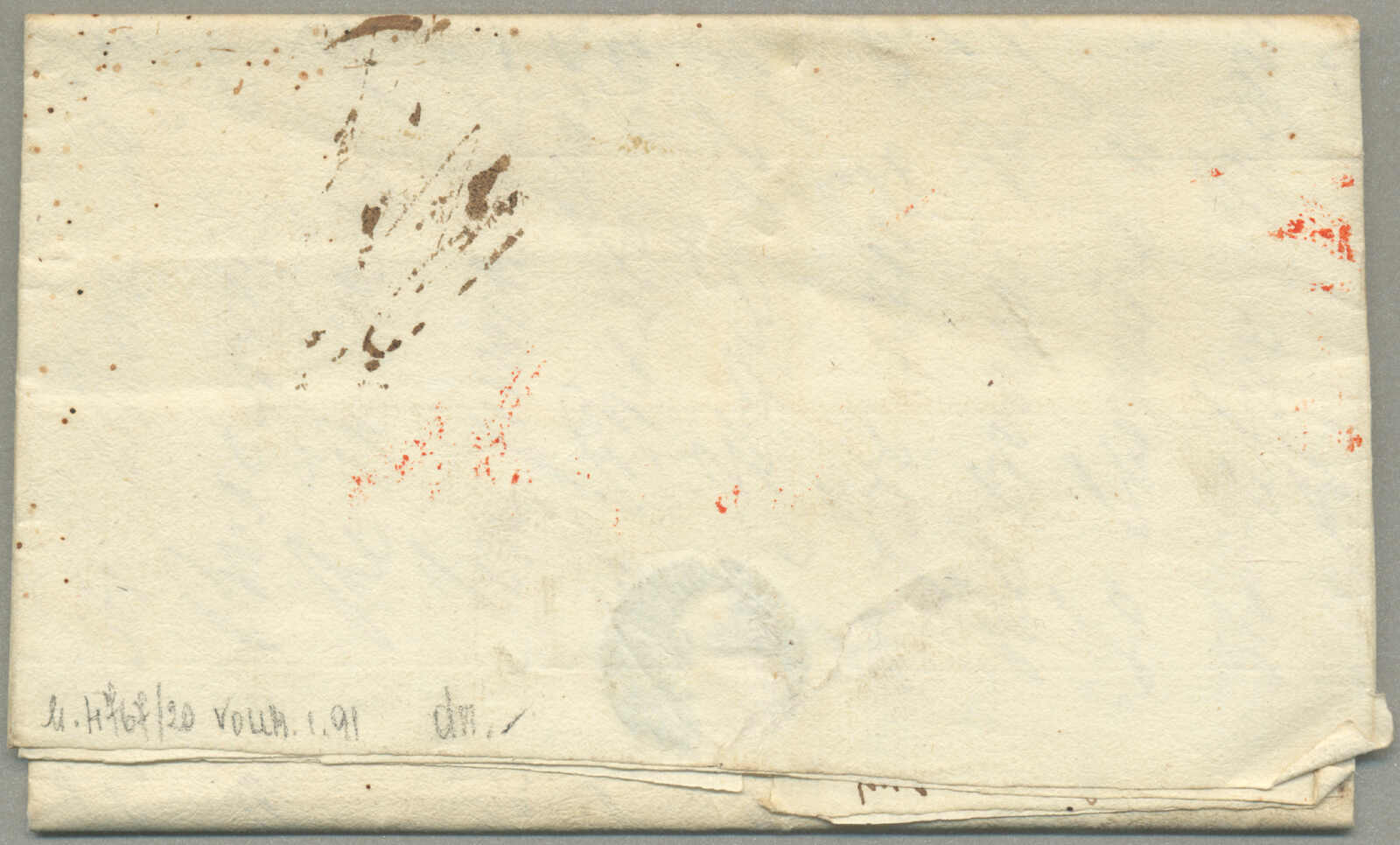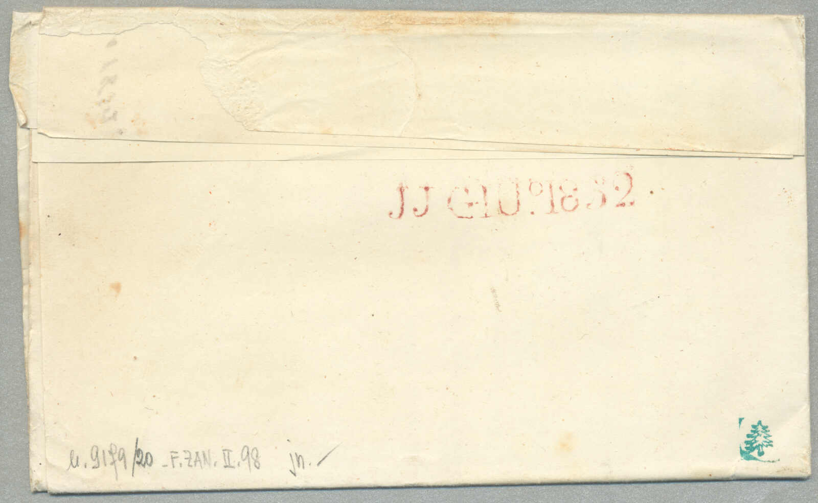 1832, with neatly strike of red CASTELTERMINI also red MSAC, red ink 4 tax remark, on folded letter, ex Provera, XF! Estimate 200€.
