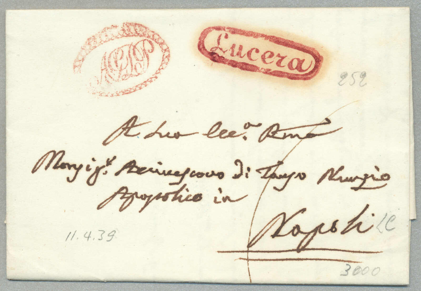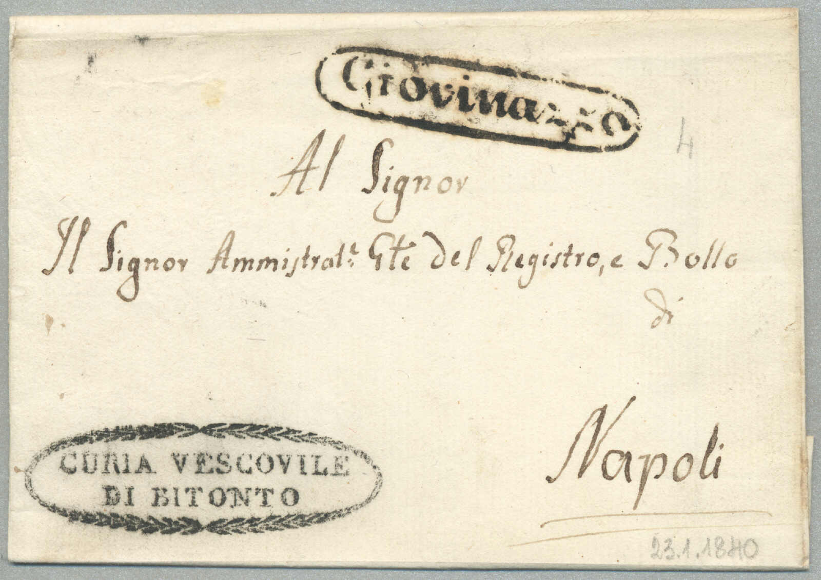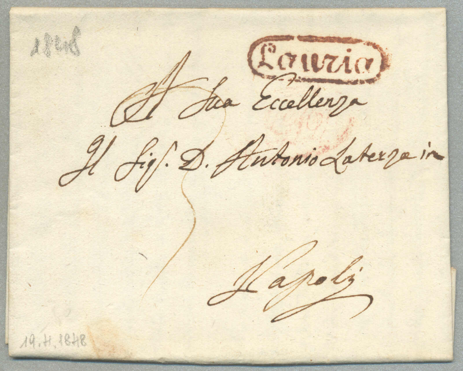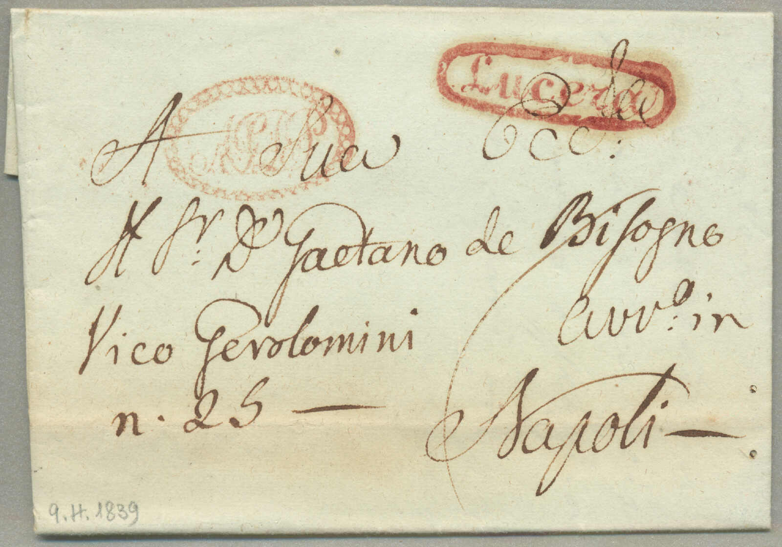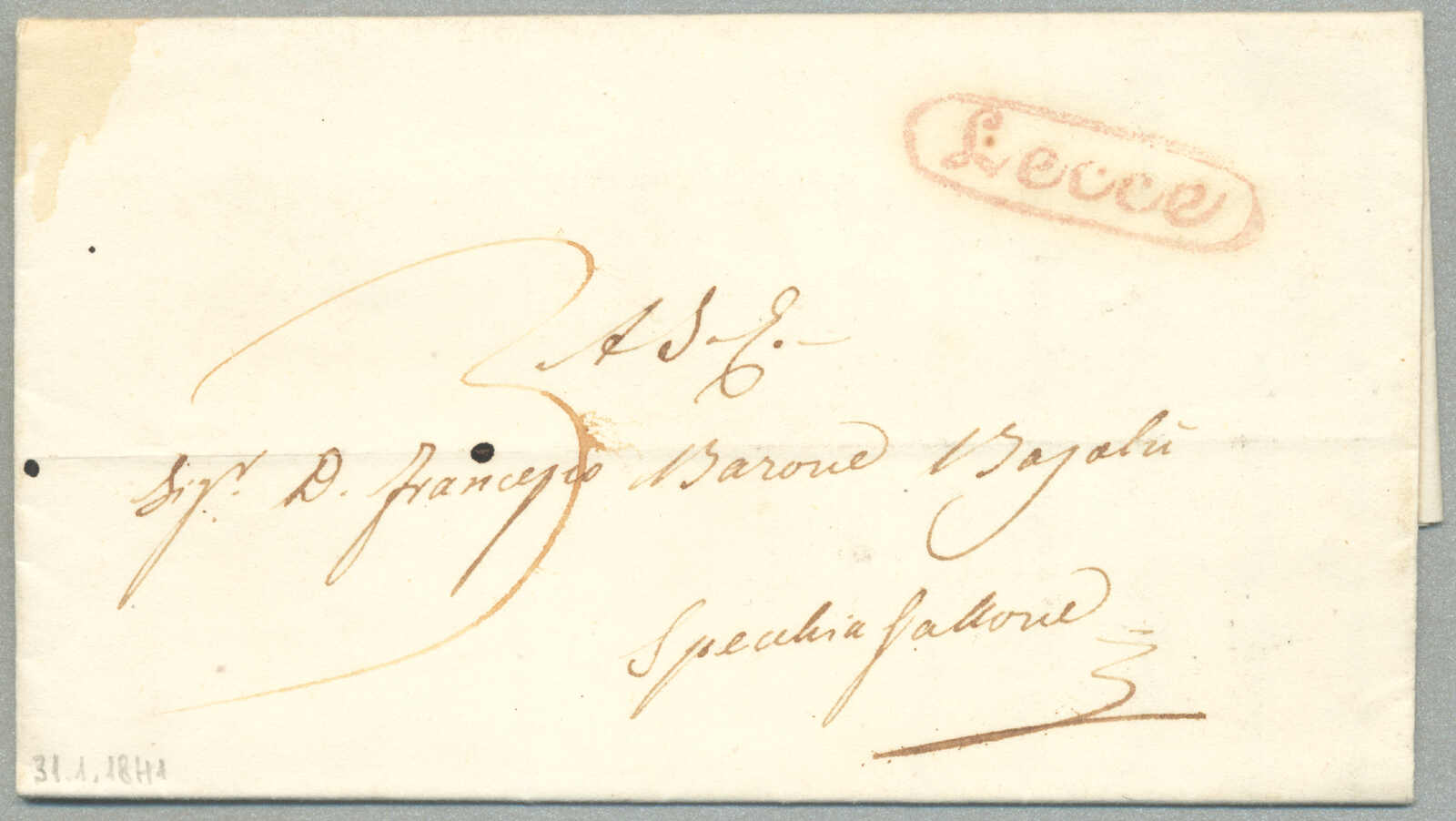 about 1830s, with neatly strike of red GALLIPOLI, on folded letter, ex Provera, XF! Estimate 200€.