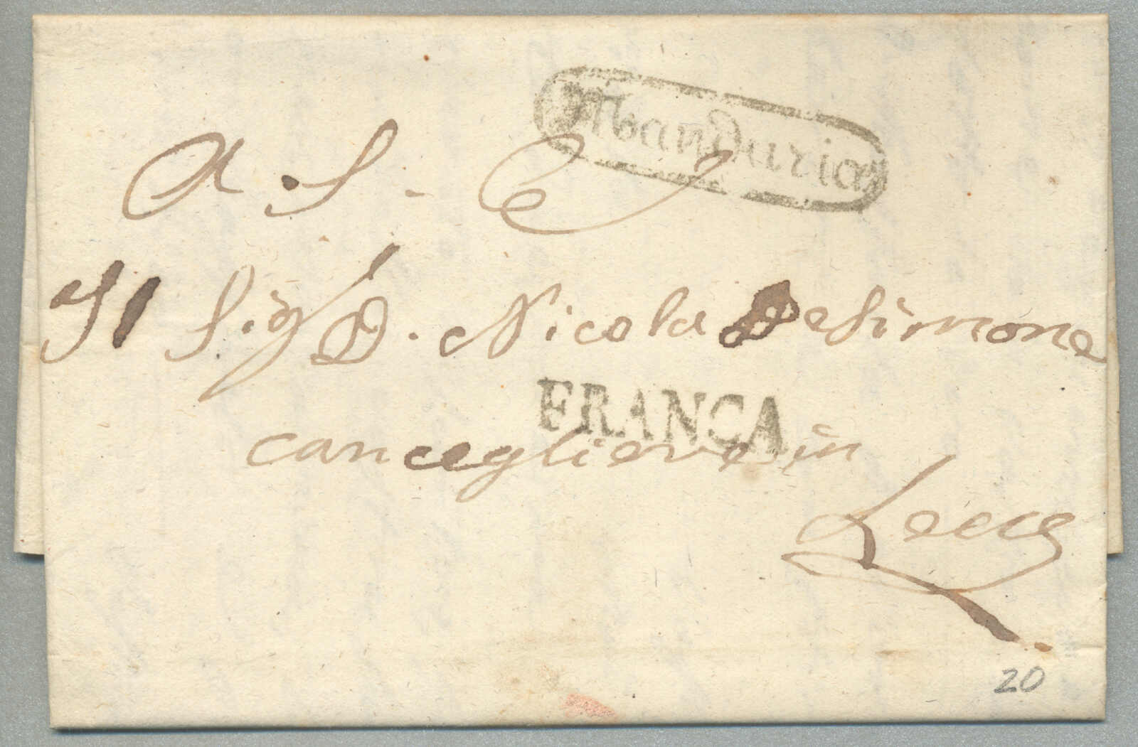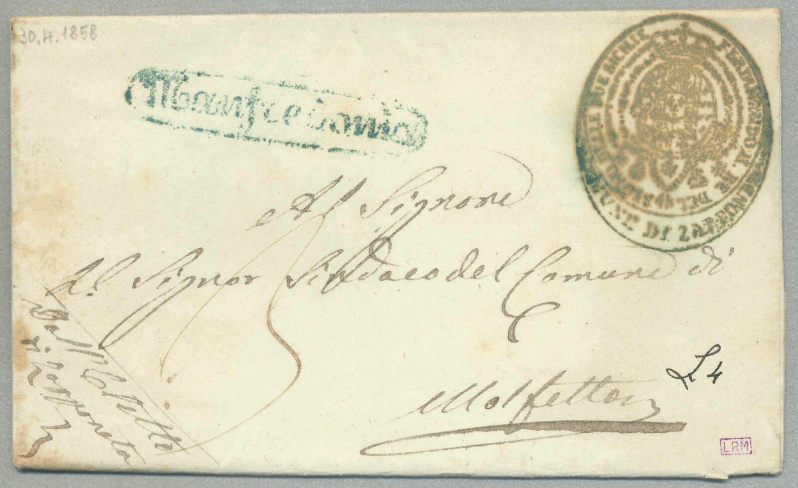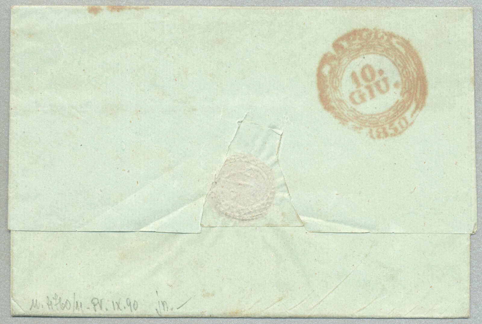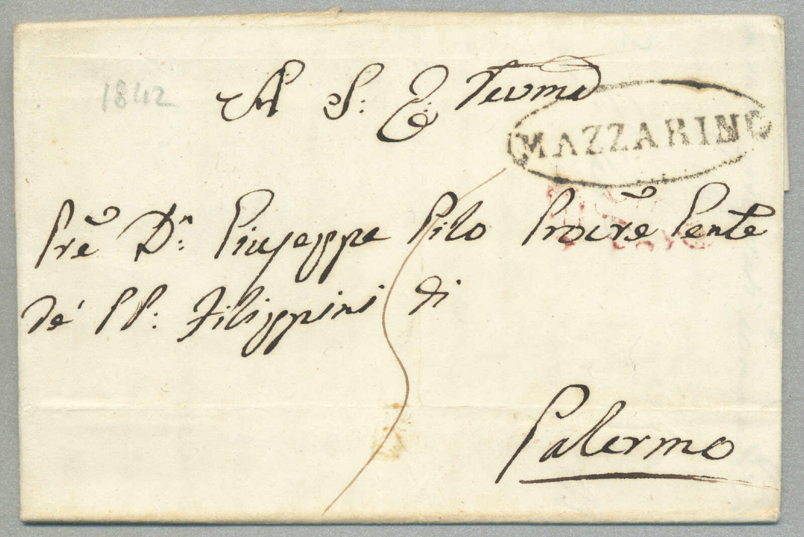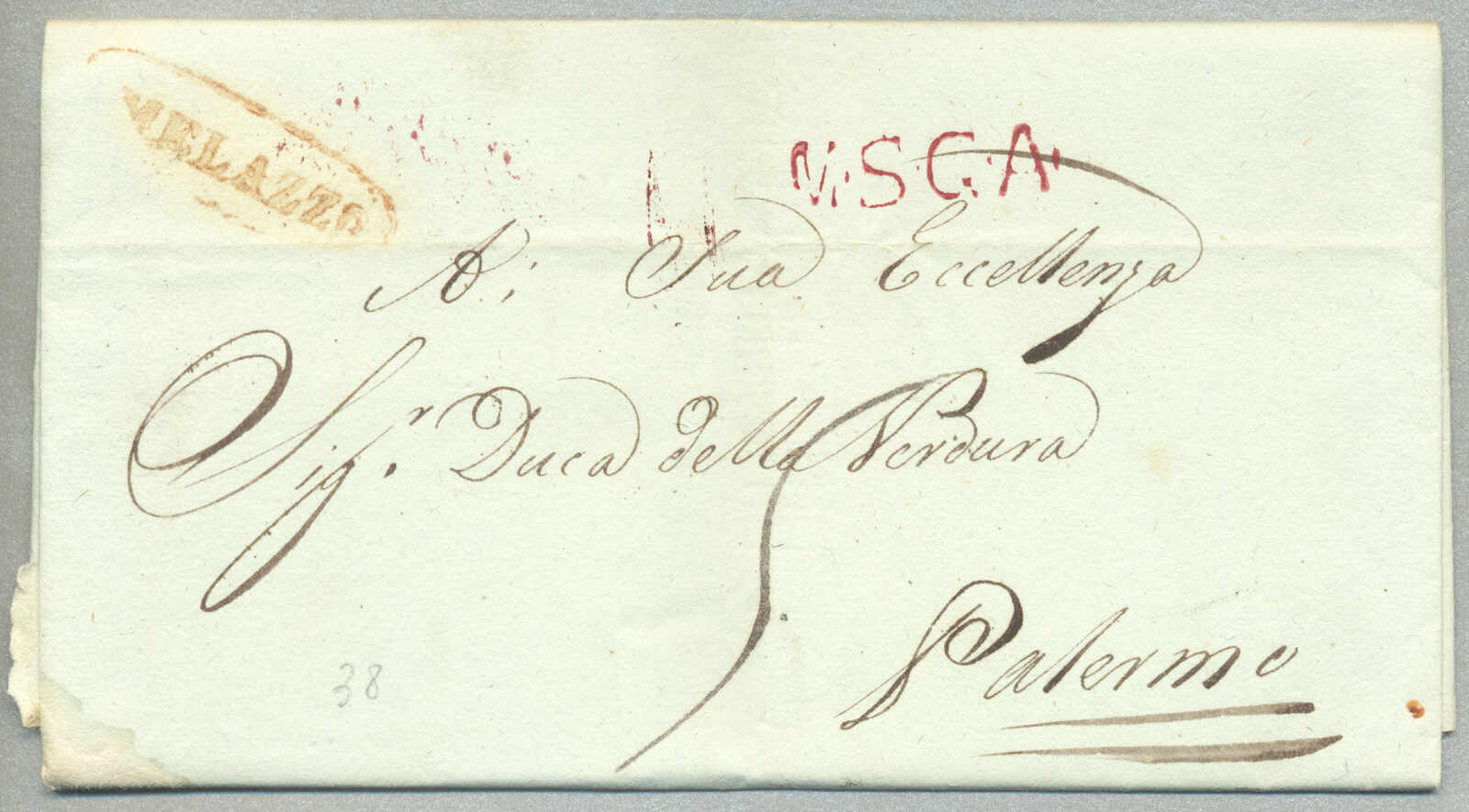 about 1830s, with neatly strike of red MARDALONI, on folded letter, ex Provera, XF! Estimate 200€.