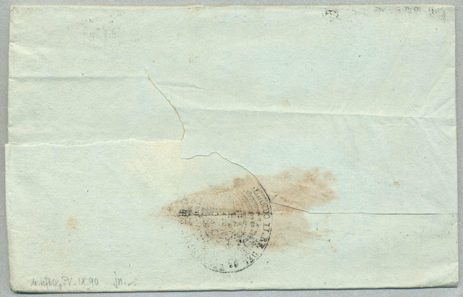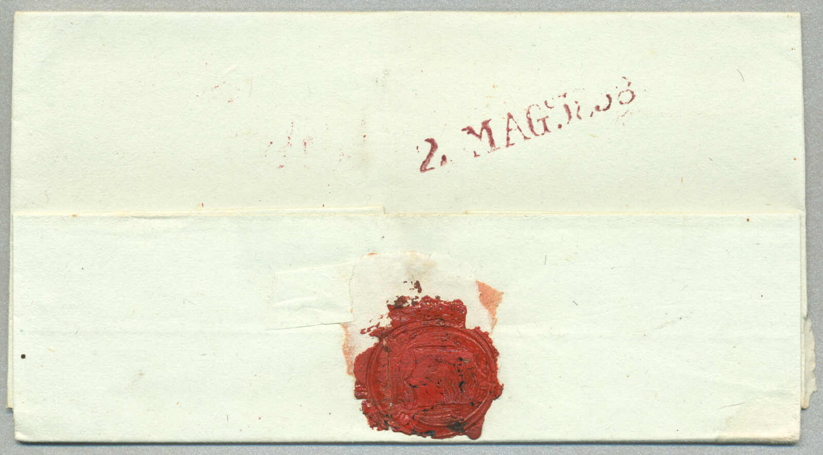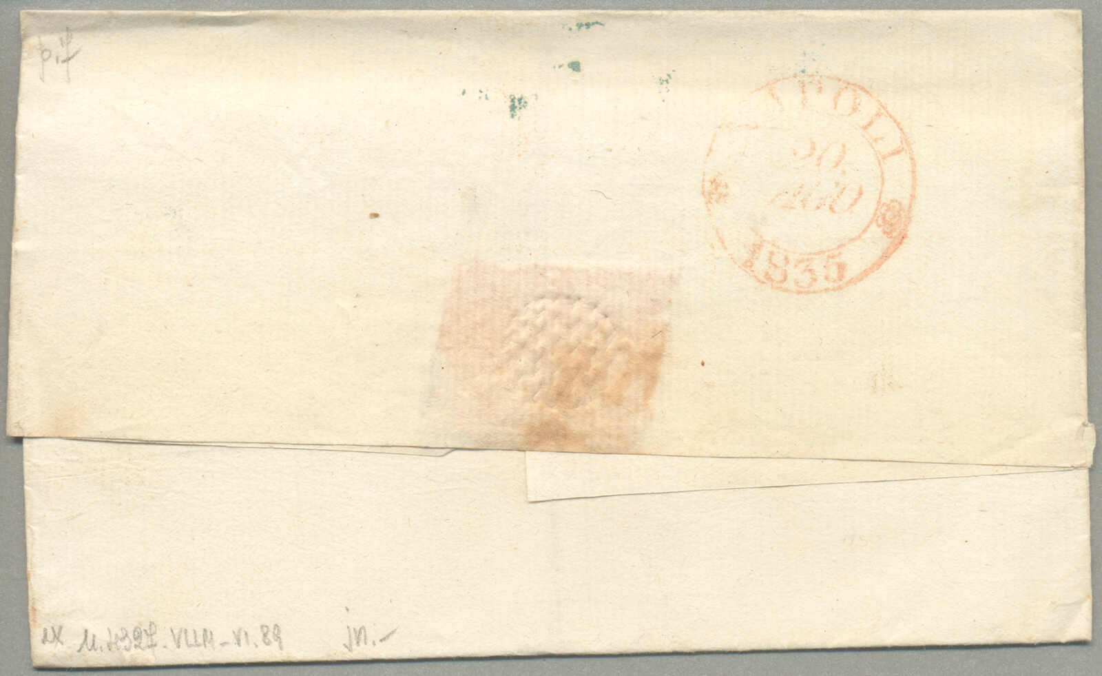 Automatisch generierte Übersetzung: Ungefähr 1830s, mit sauberem Abschlag des rot MARDALONI, auf Faltbrief,