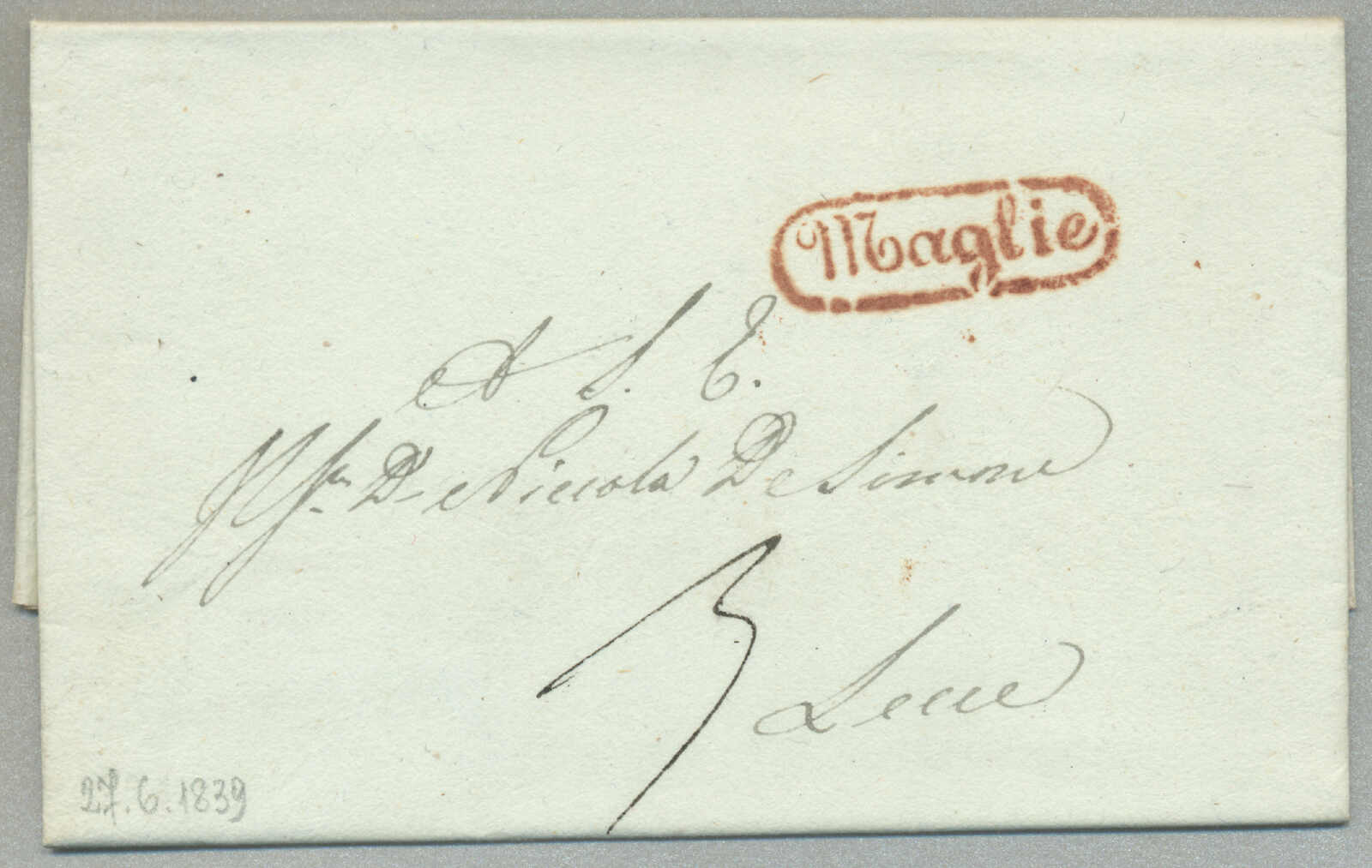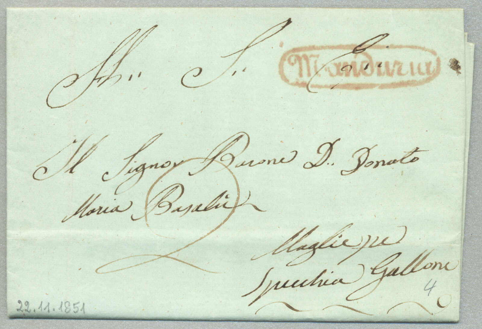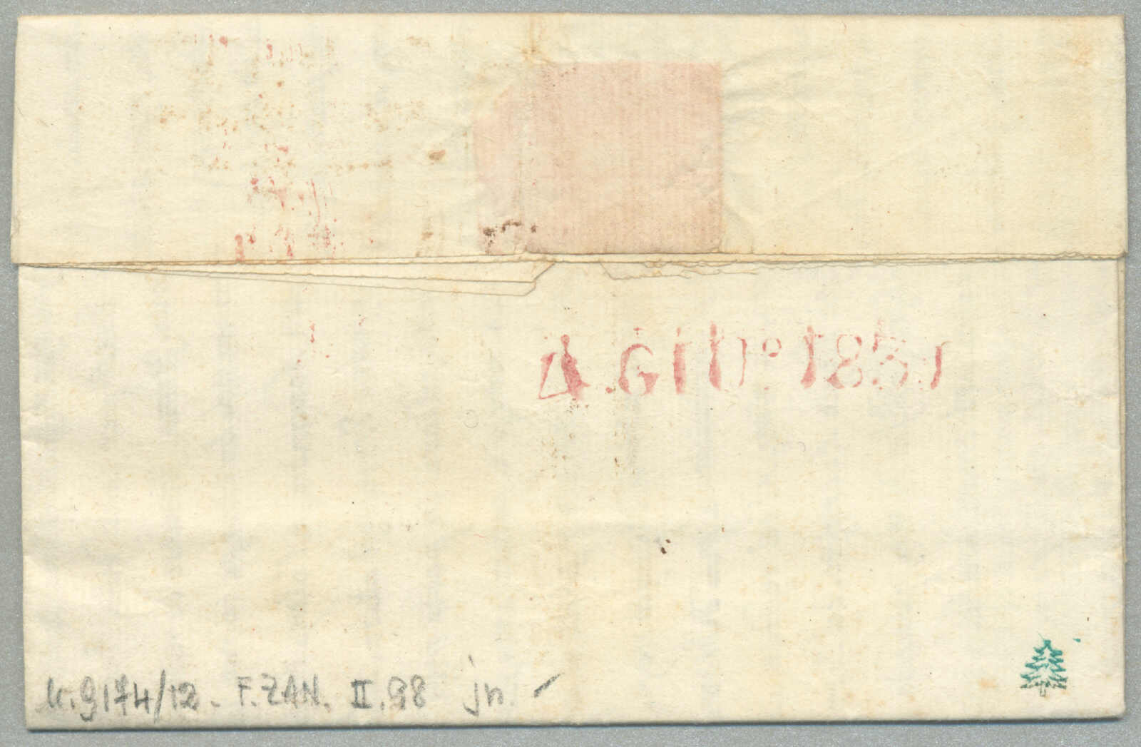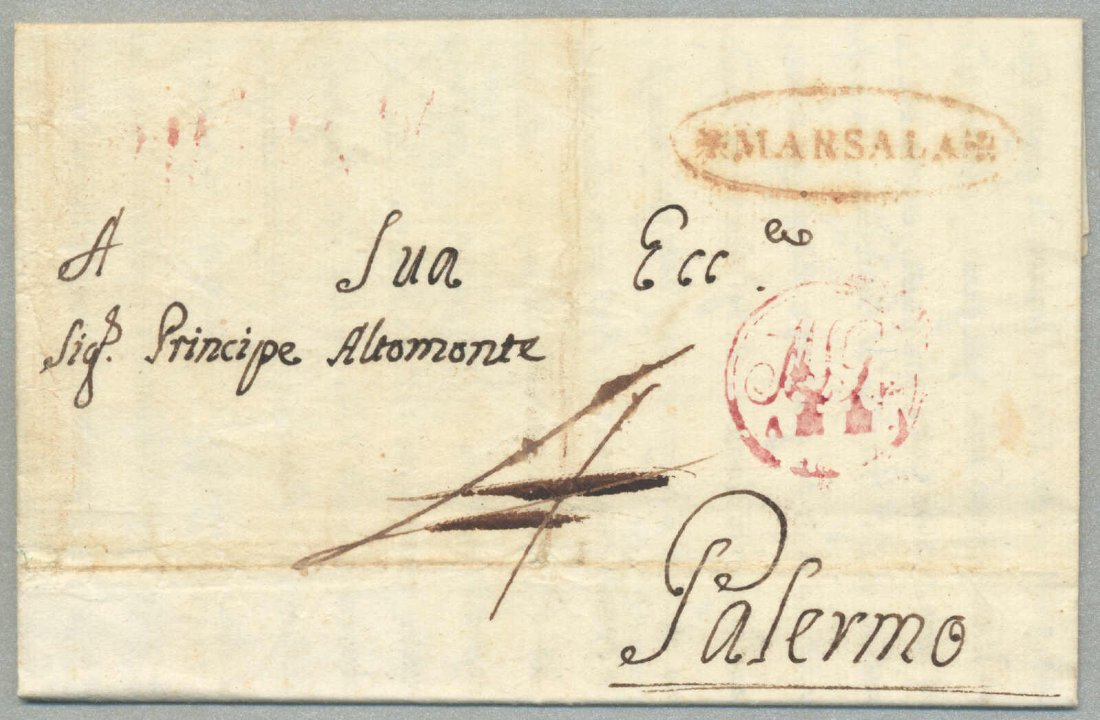 Automatisch generierte Übersetzung: Ungefähr 1830s, mit sauberem Abschlag des rot MARDALONI, auf Faltbrief,