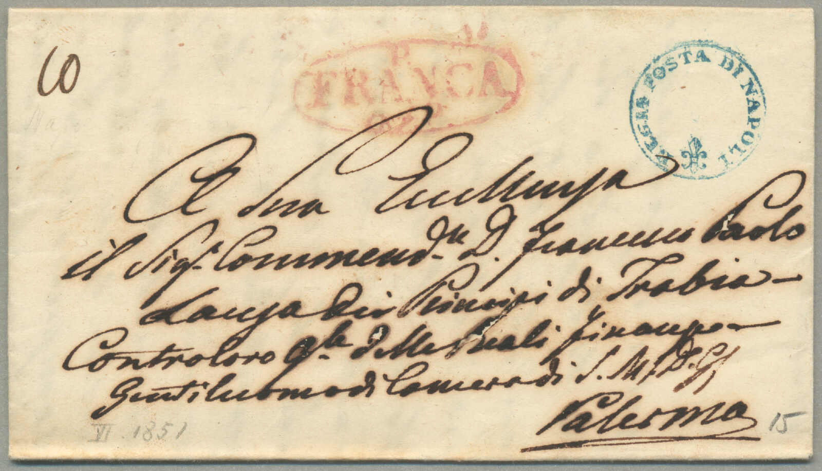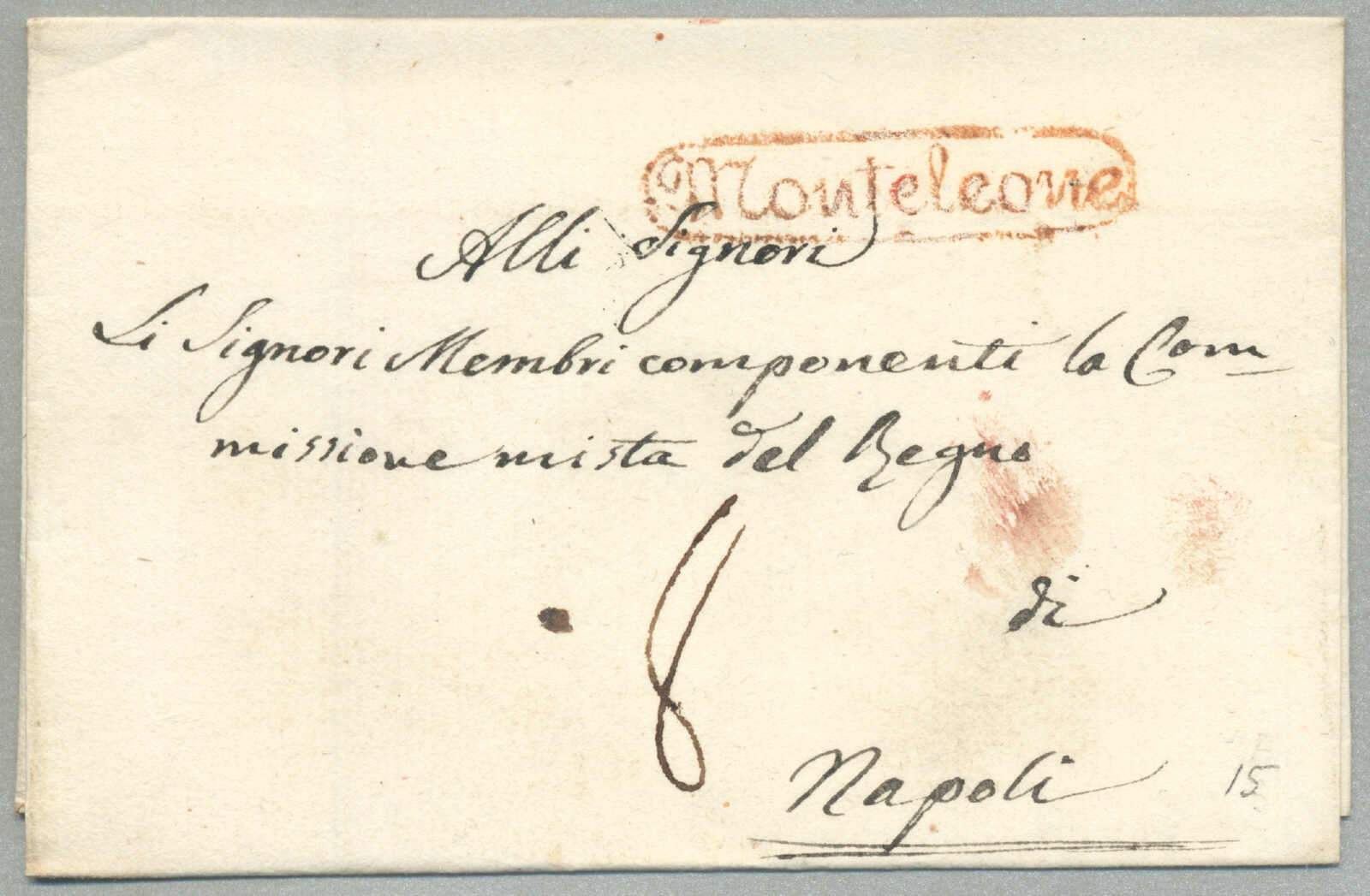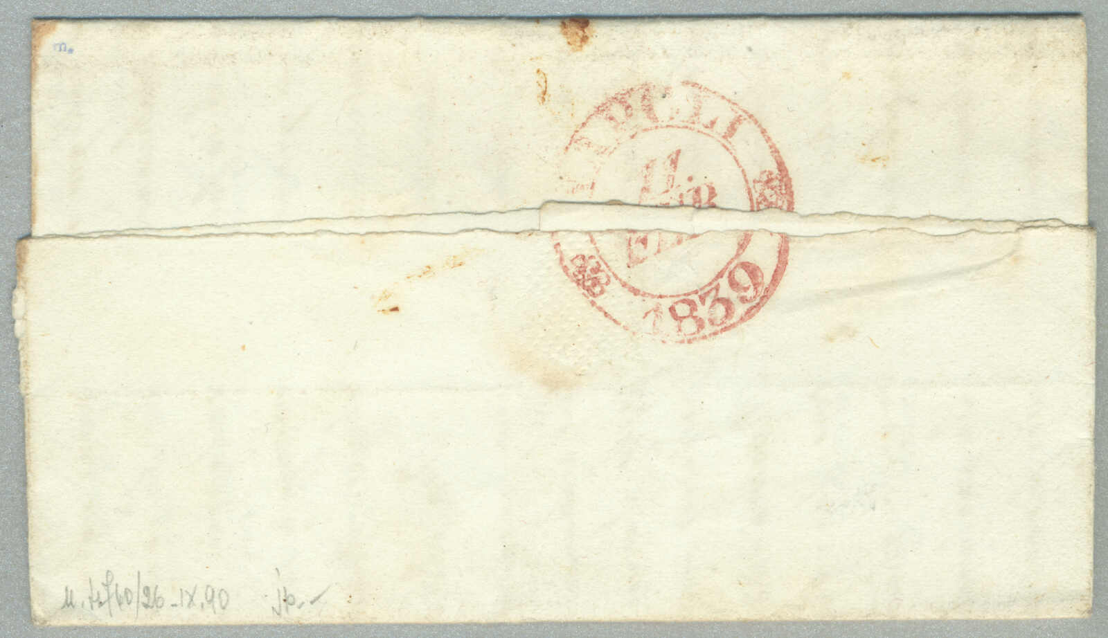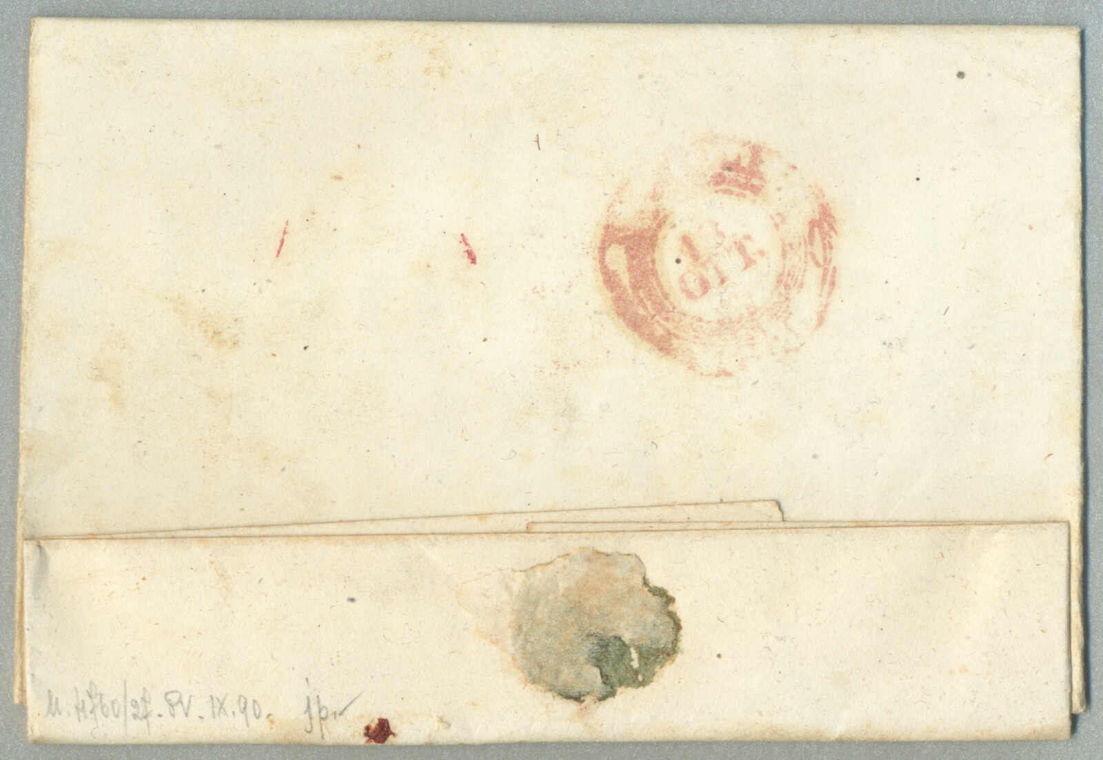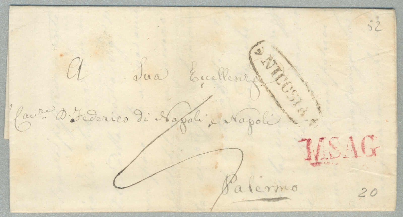 about 1830s, with neatly strike of red MOLA DI BARI, on folded letter, ex Provera, XF! Estimate 200€.