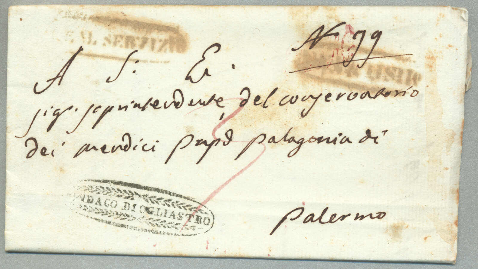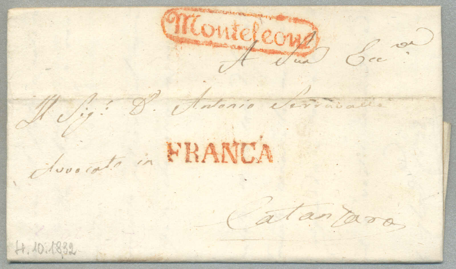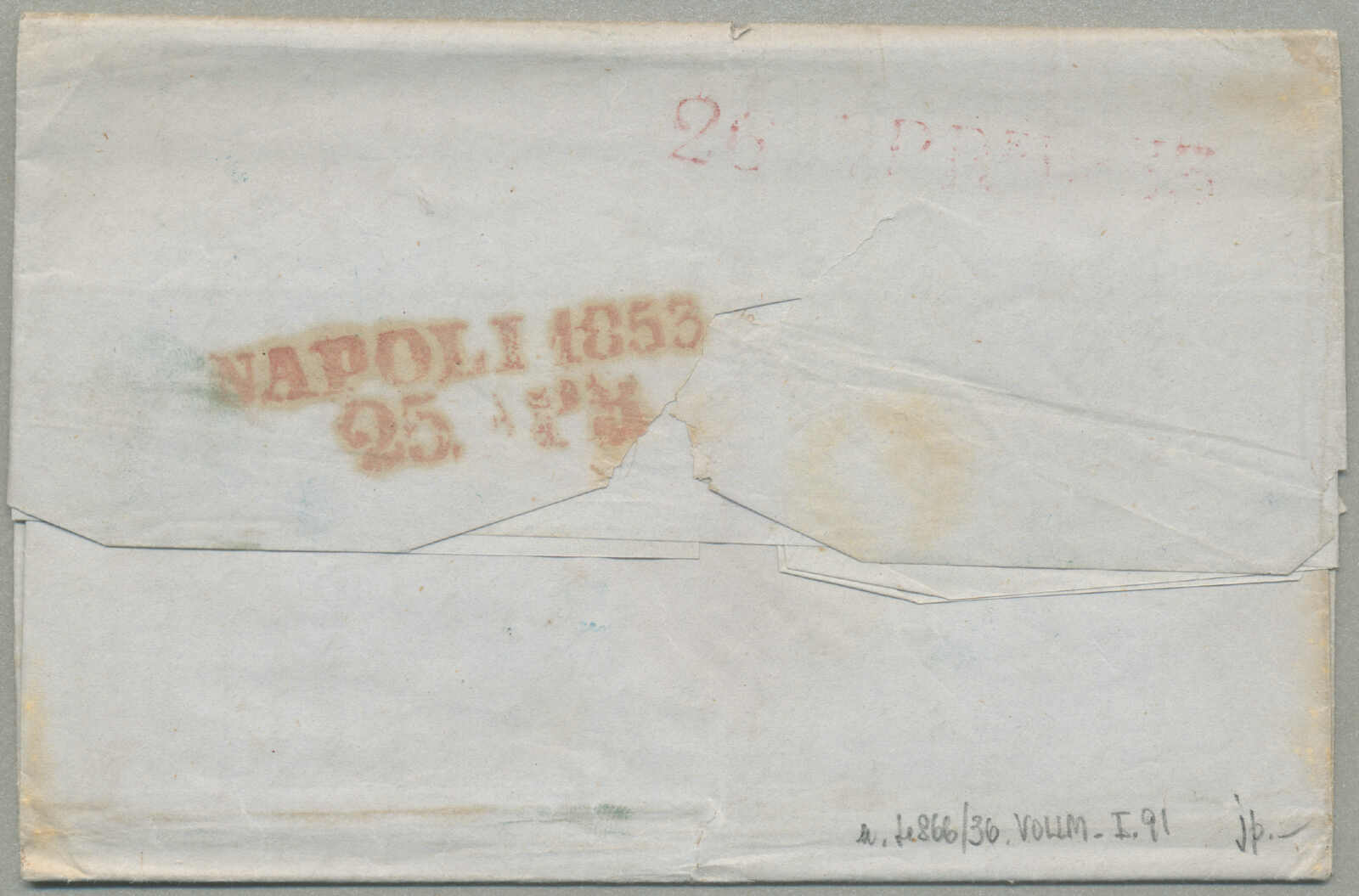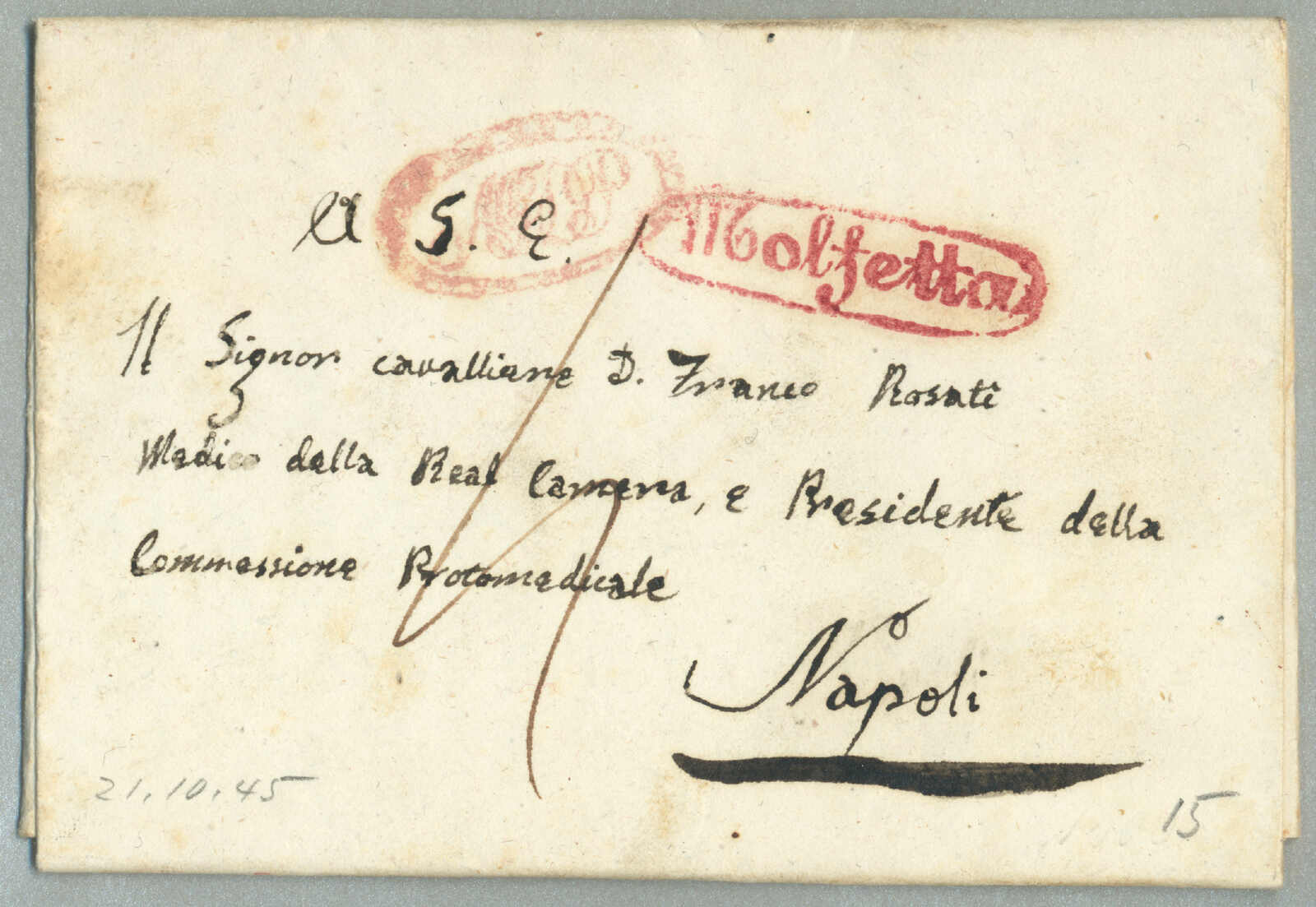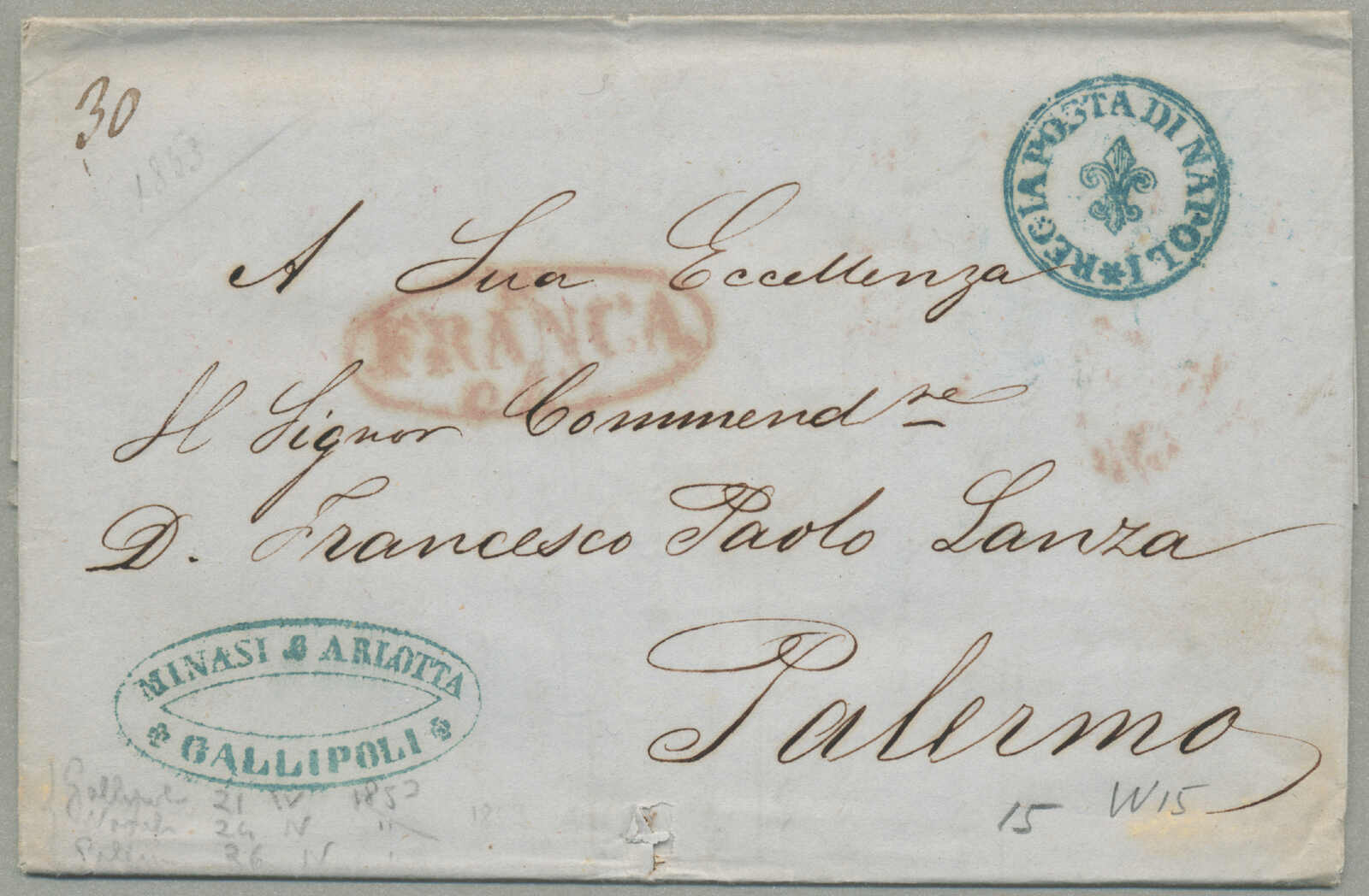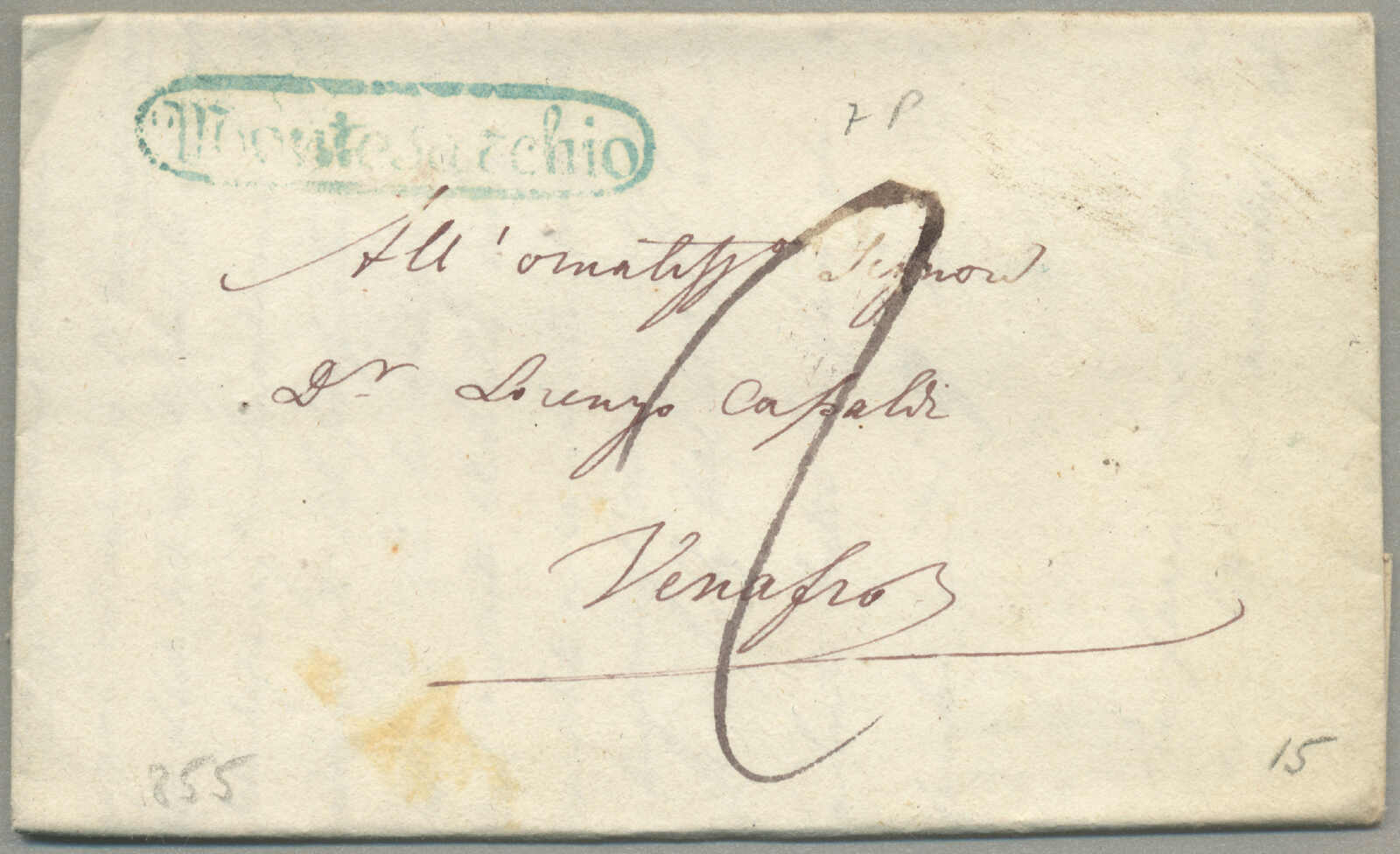 about 1830s, with neatly strike of red MOLA DI BARI, on folded letter, ex Provera, XF! Estimate 200€.