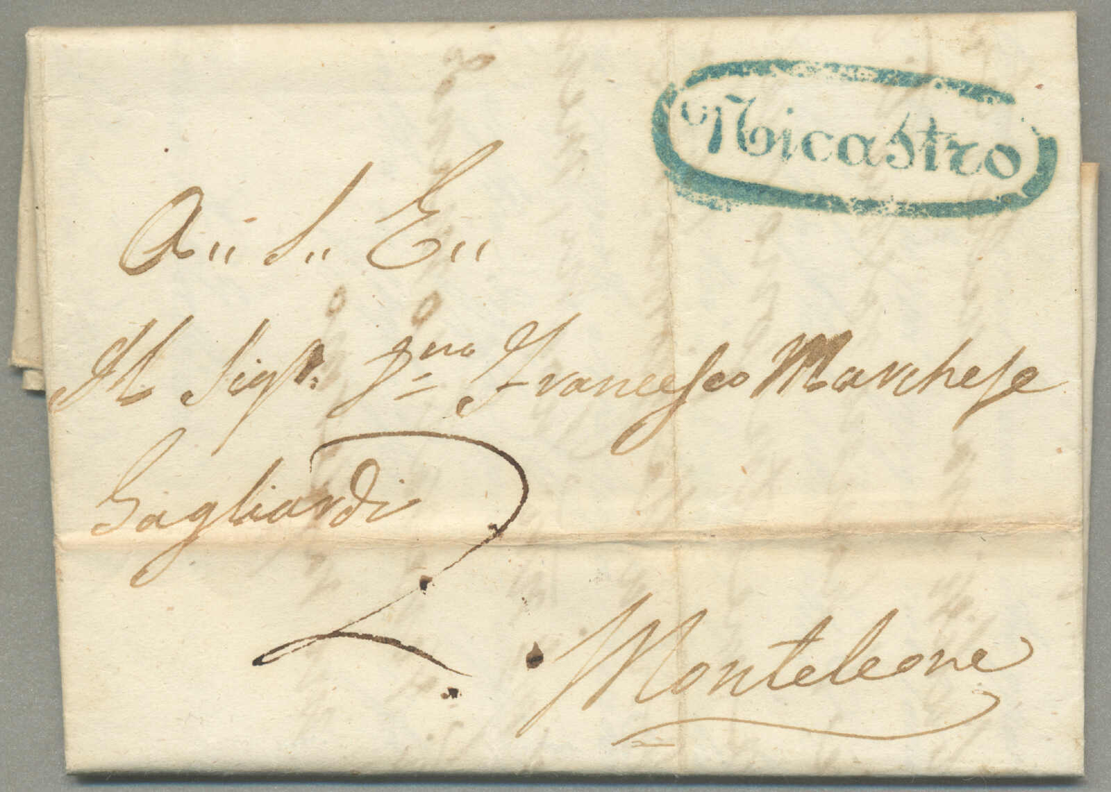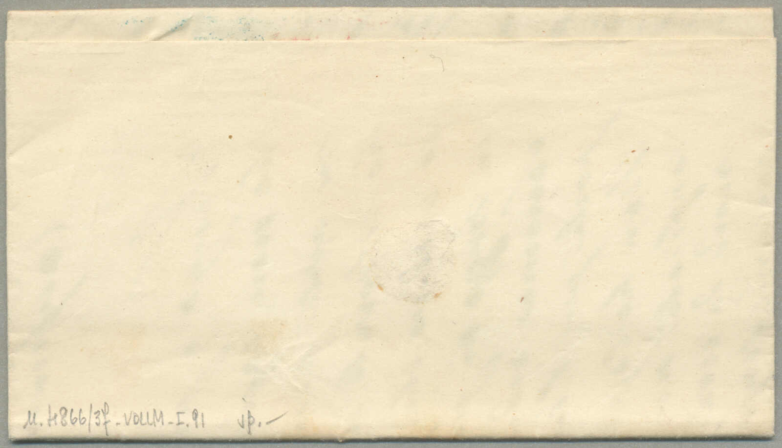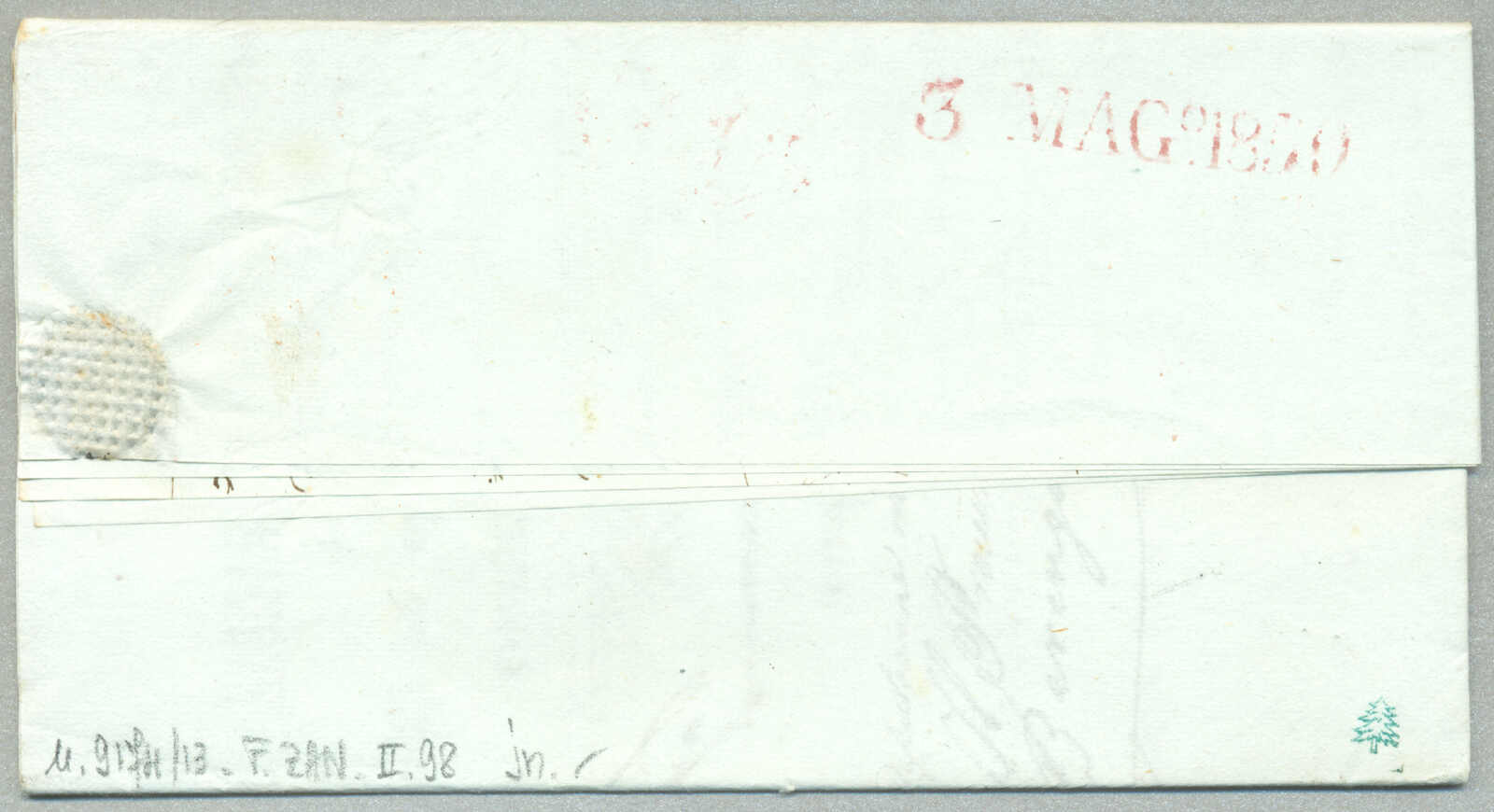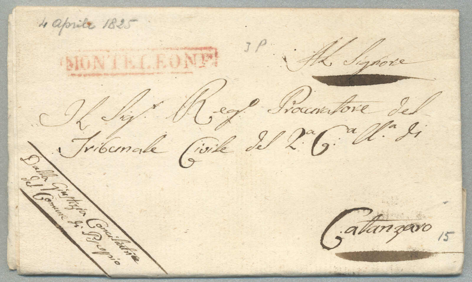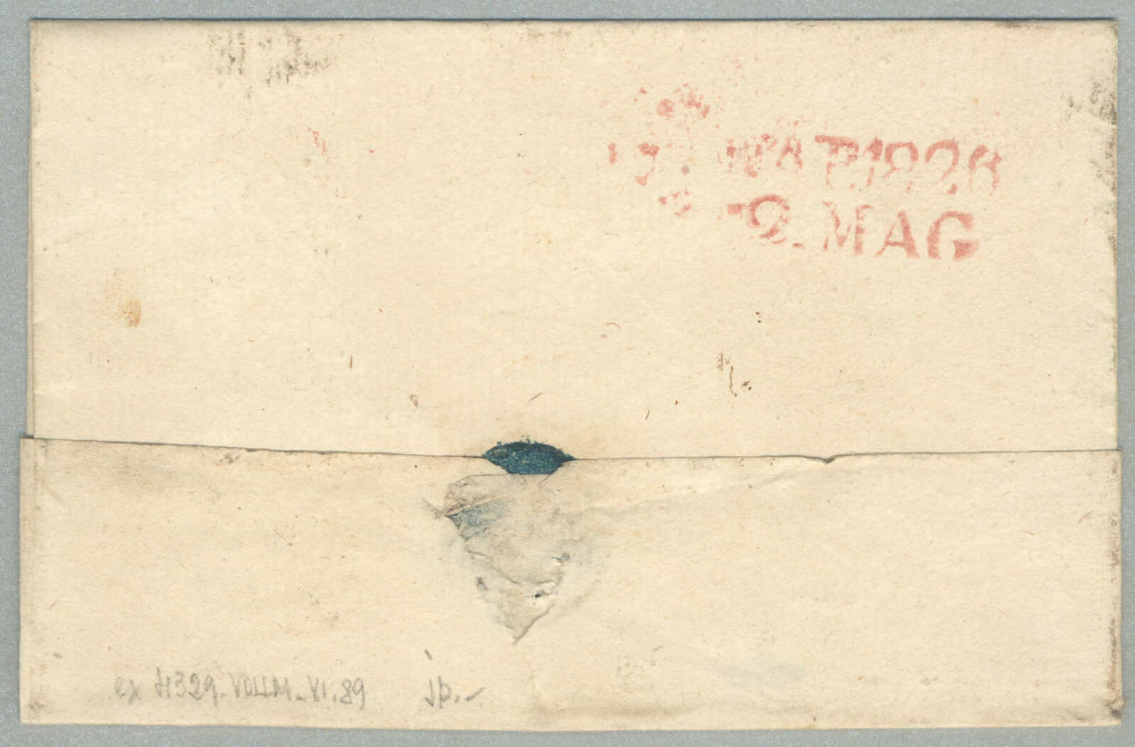 about 1830s, with neatly strike of red MOLA DI BARI, on folded letter, ex Provera, XF! Estimate 200€.
