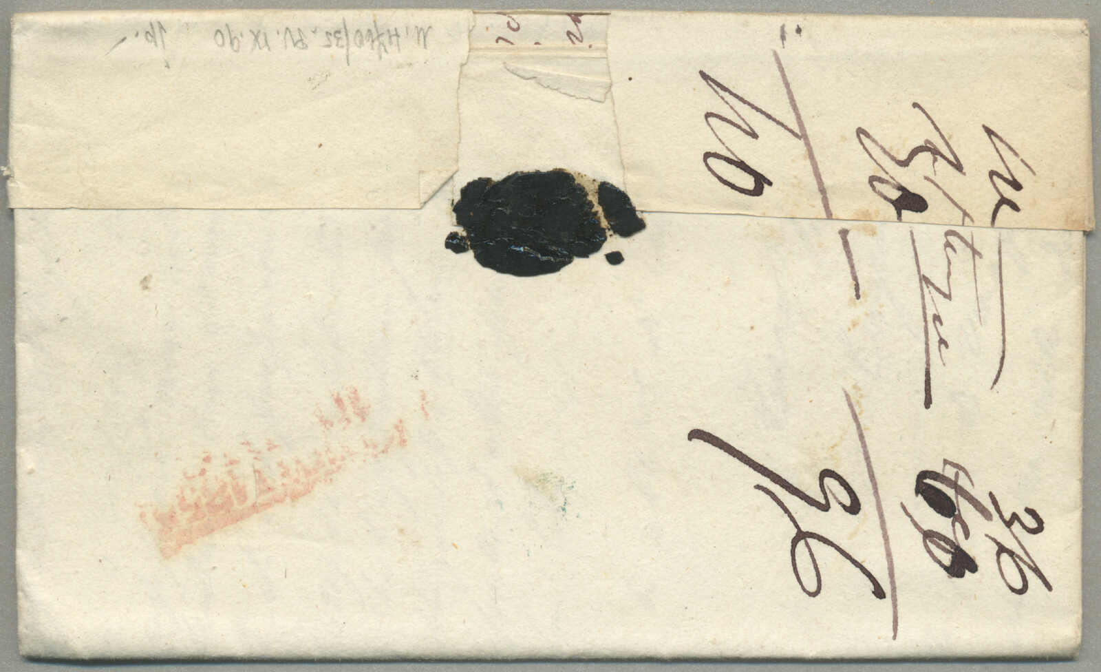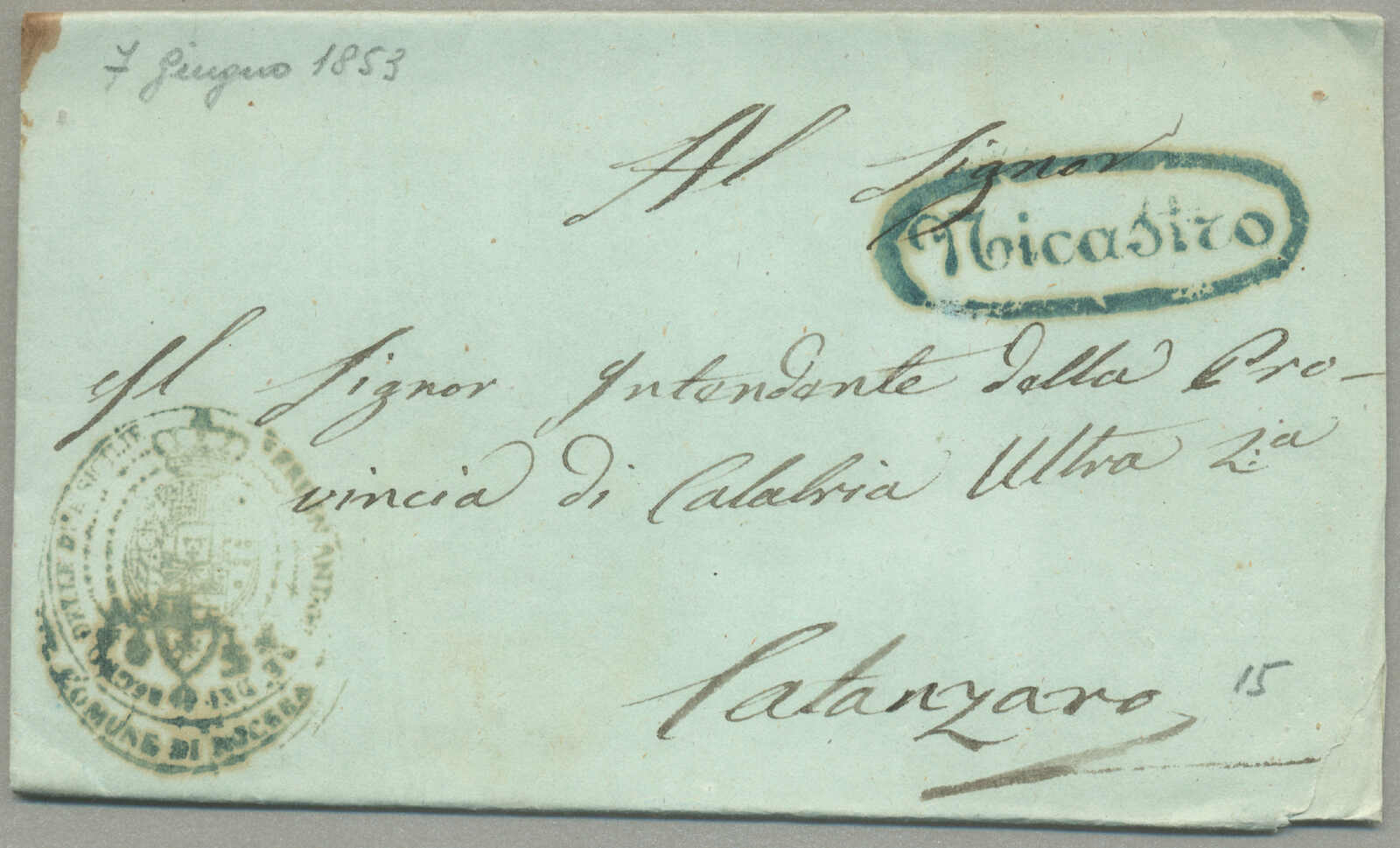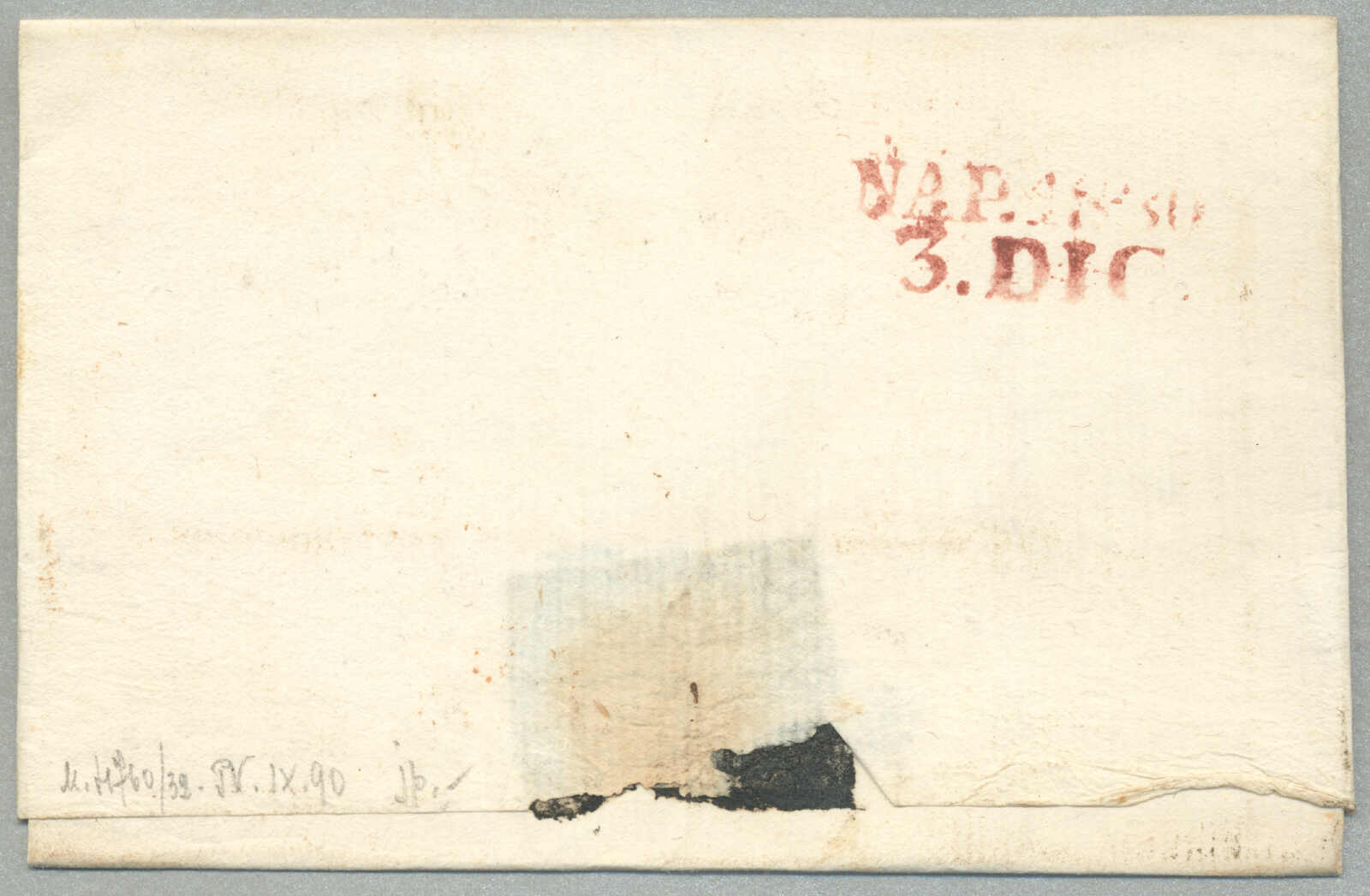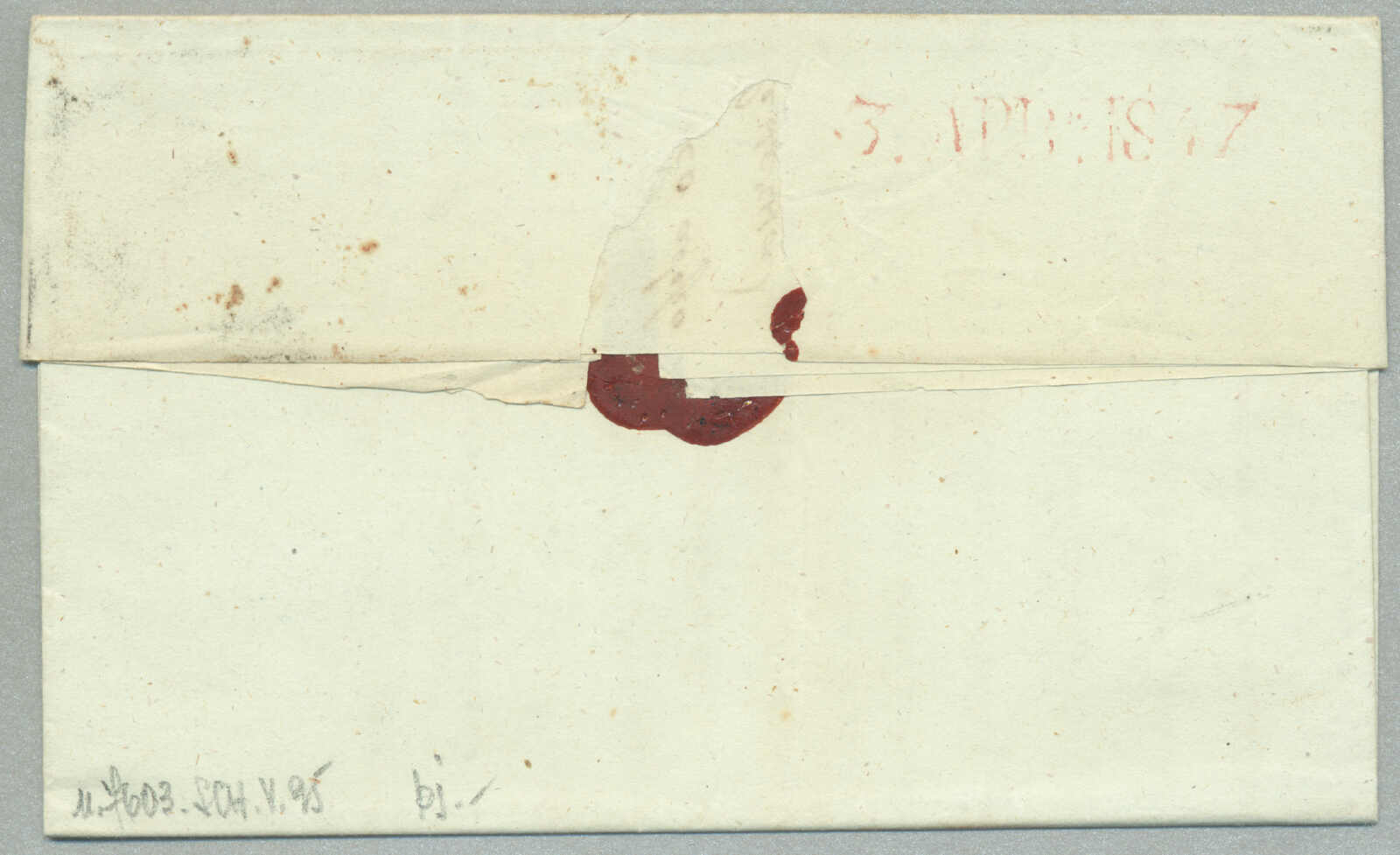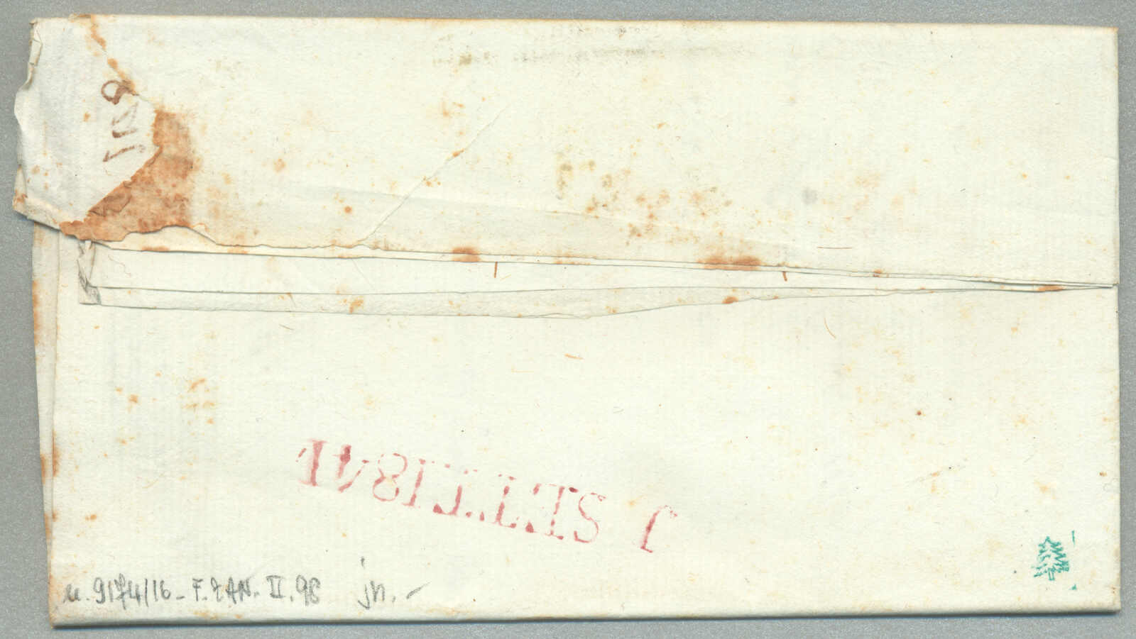 about 1830s, with neatly strike of red MOLA DI BARI, on folded letter, ex Provera, XF! Estimate 200€.