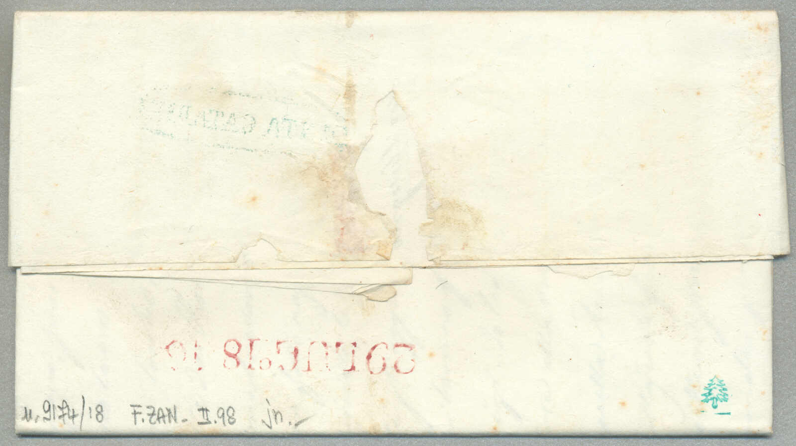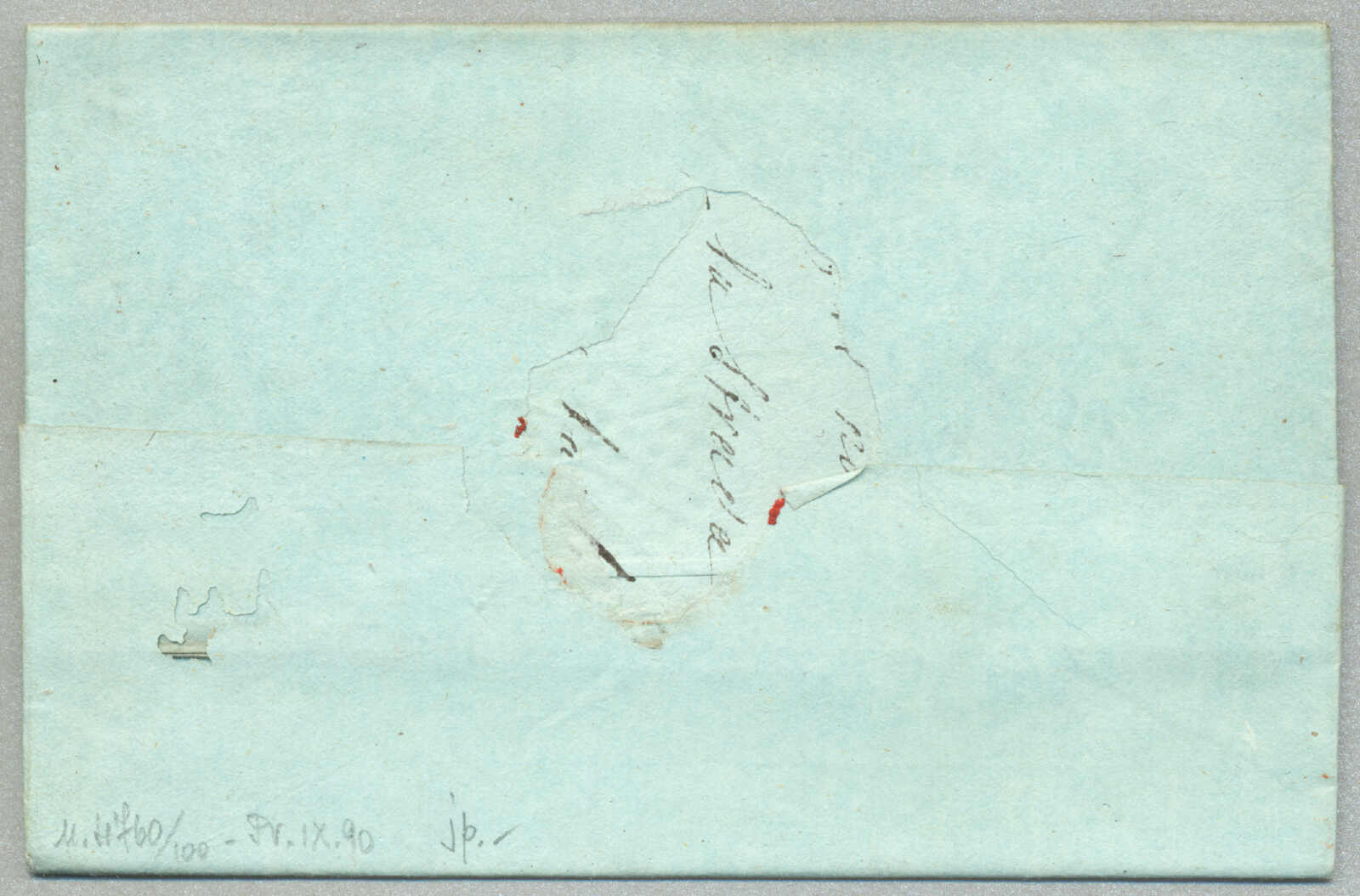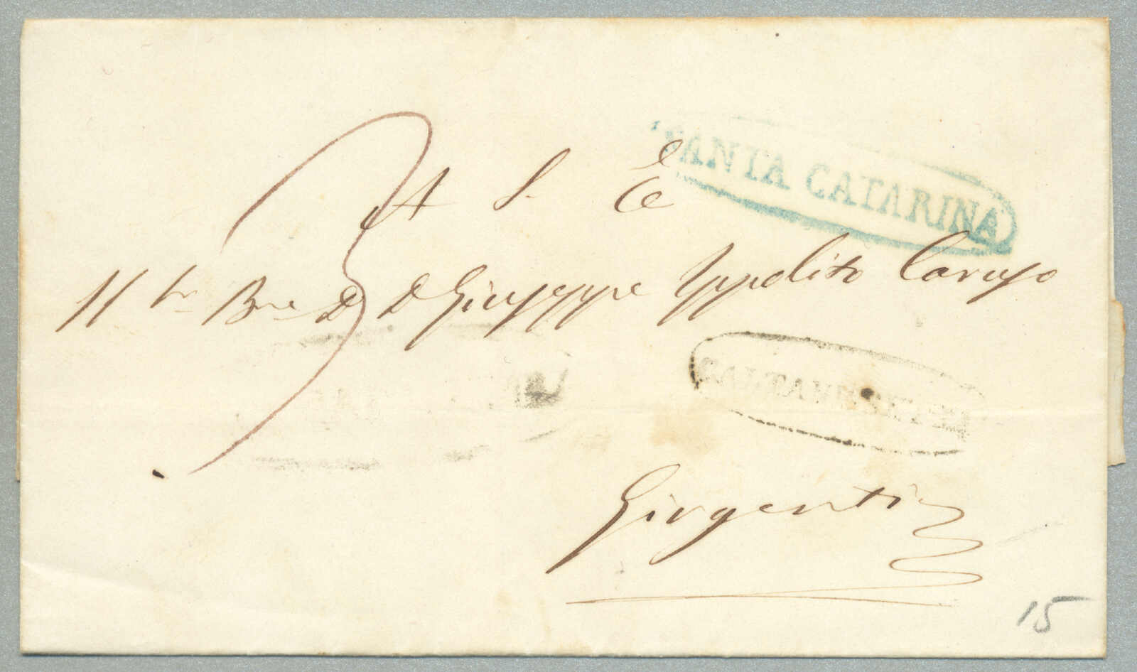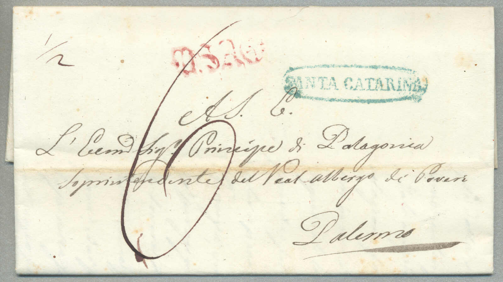 about 1830s, with neatly strike of blue SANTA CATARINA, on folded letter, ex Provera, XF! Estimate 200€.