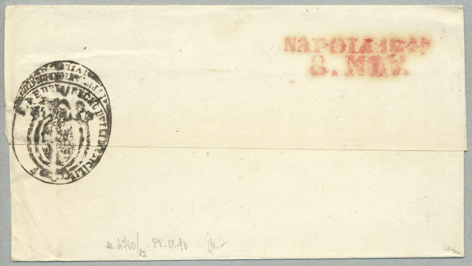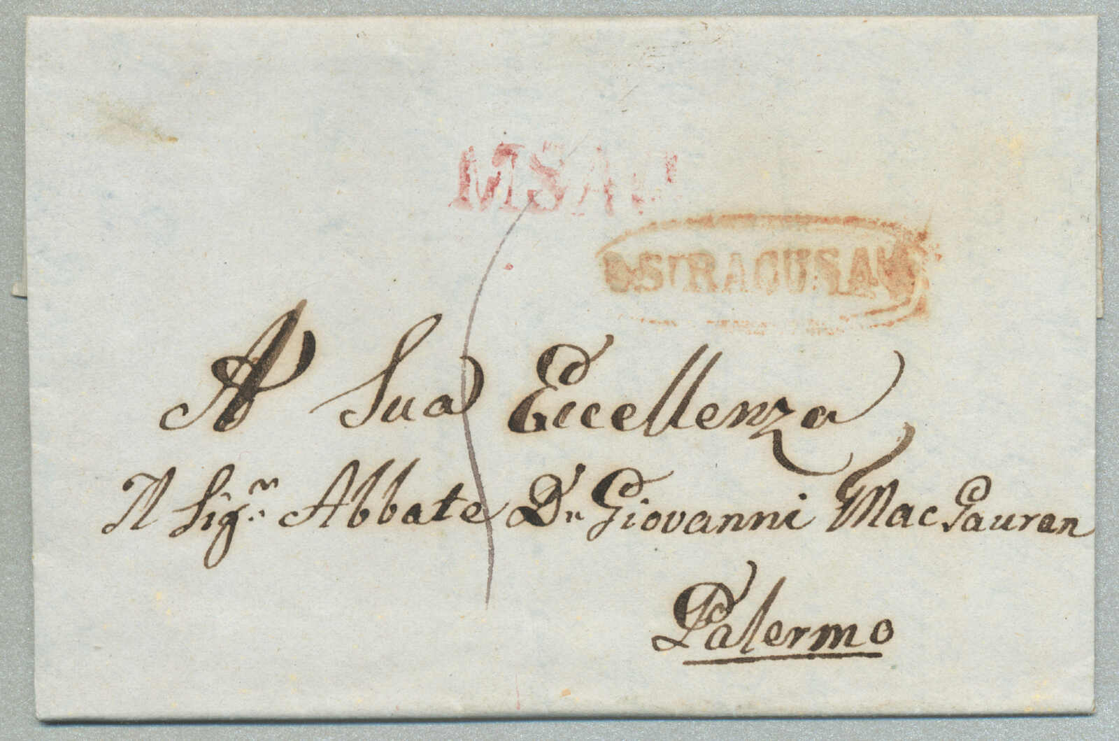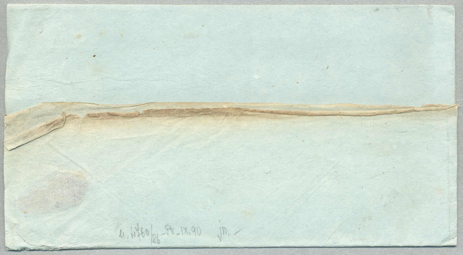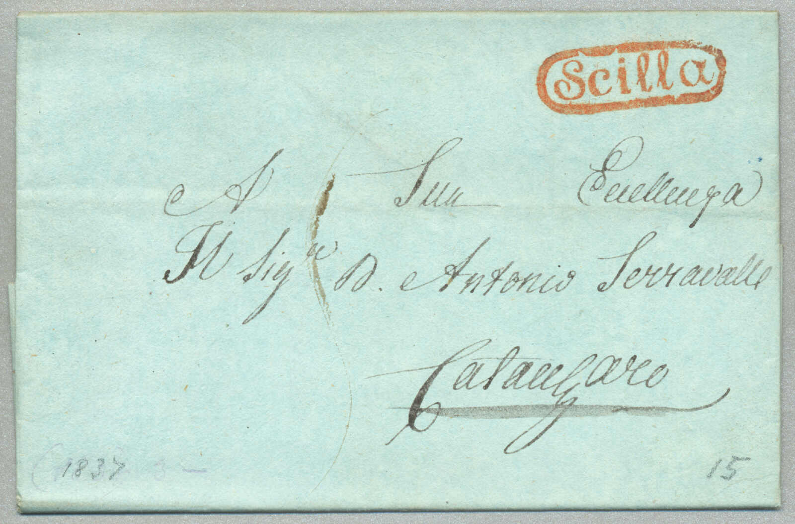 about 1830s, with neatly strike of blue SANTA CATARINA, on folded letter, ex Provera, XF! Estimate 200€.
