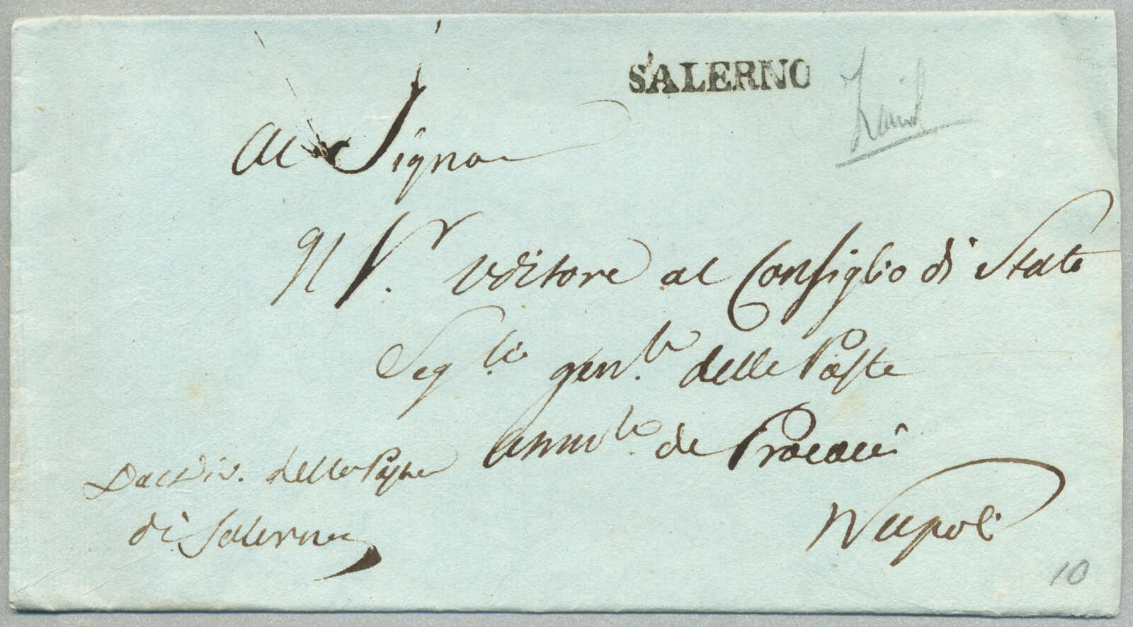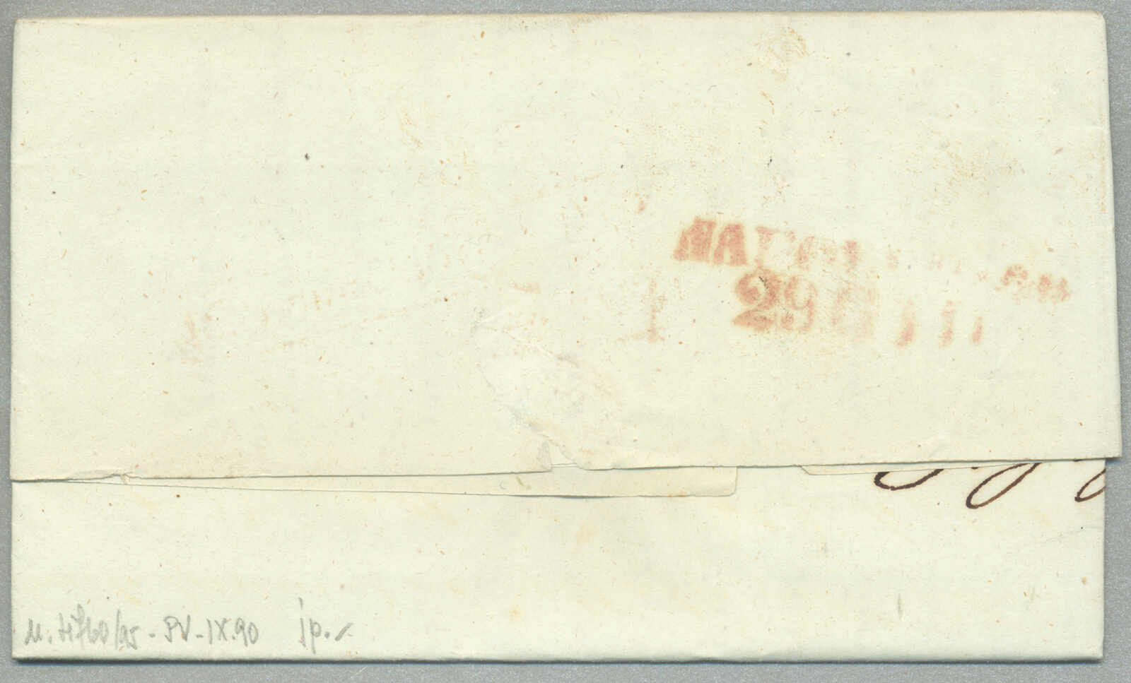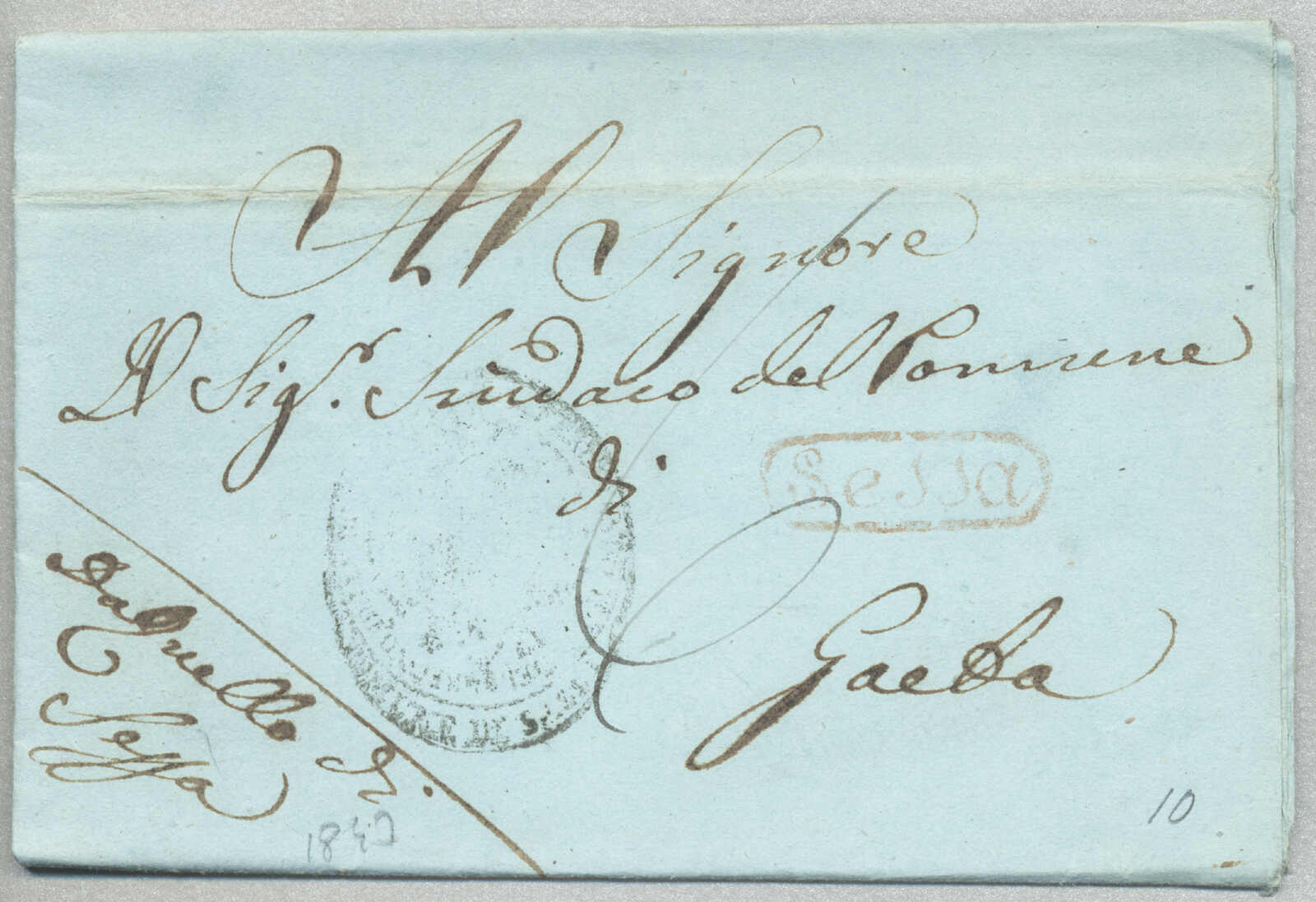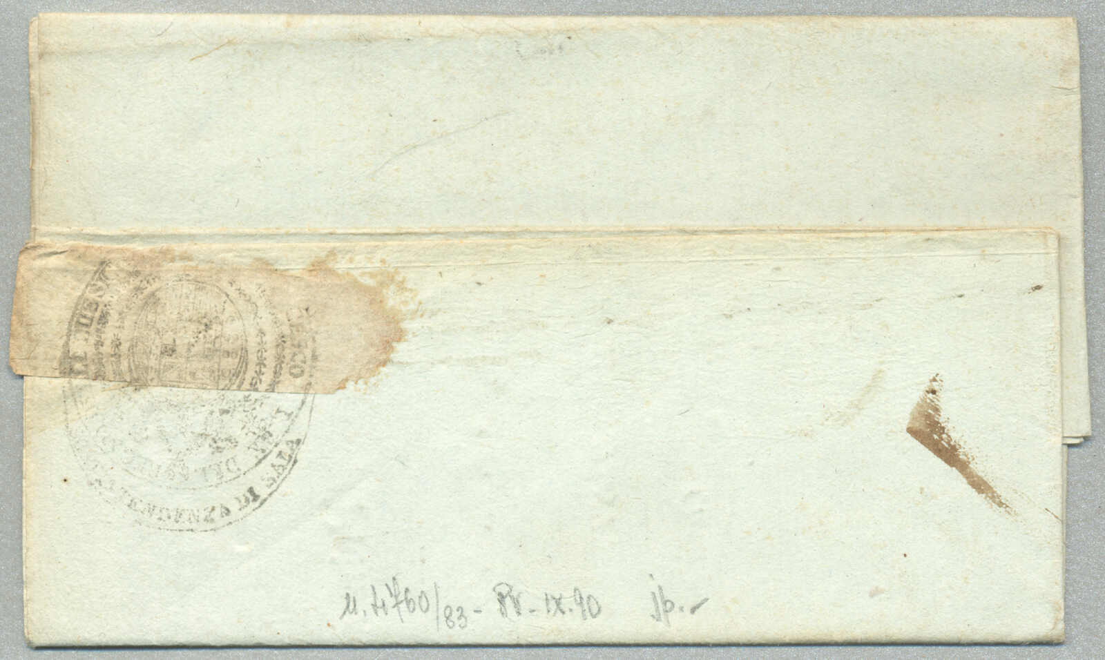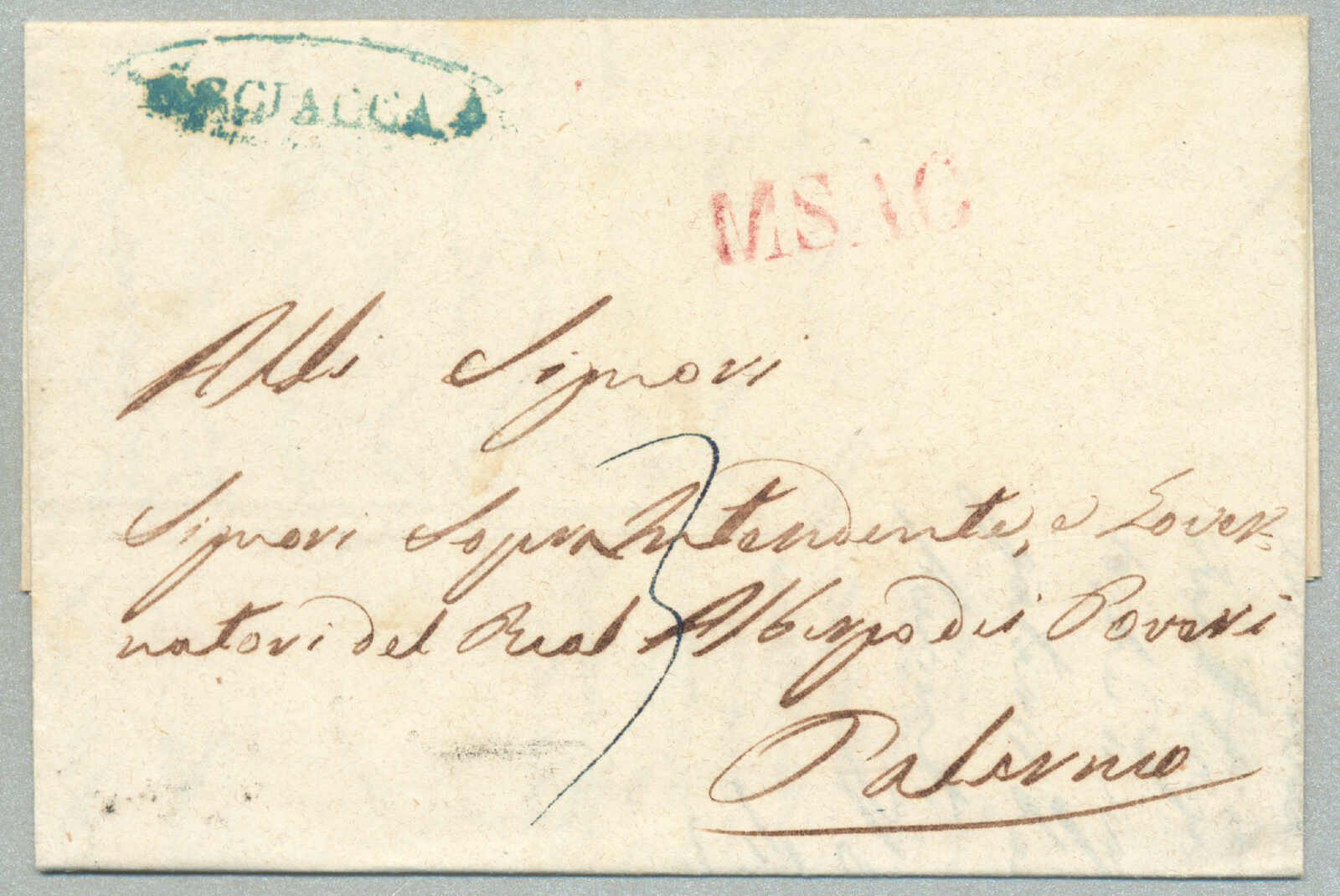 about 1830s, with neatly strike of blue SANTA CATARINA, on folded letter, ex Provera, XF! Estimate 200€.