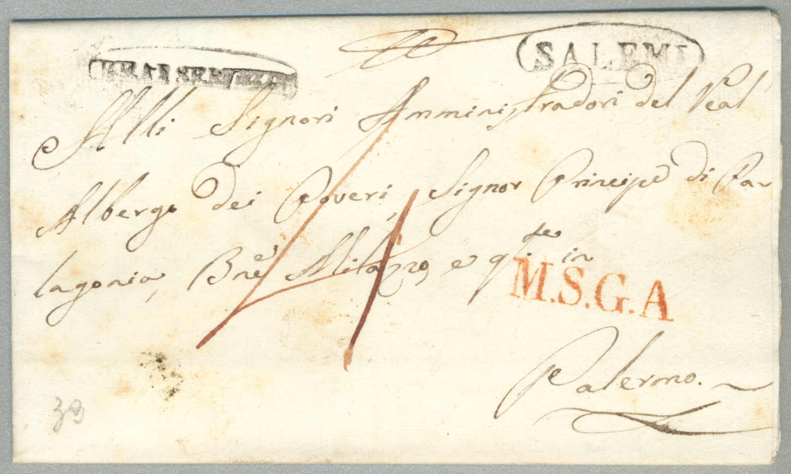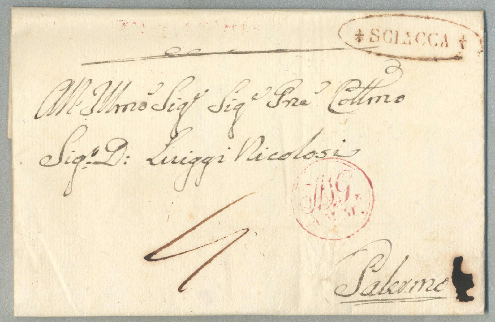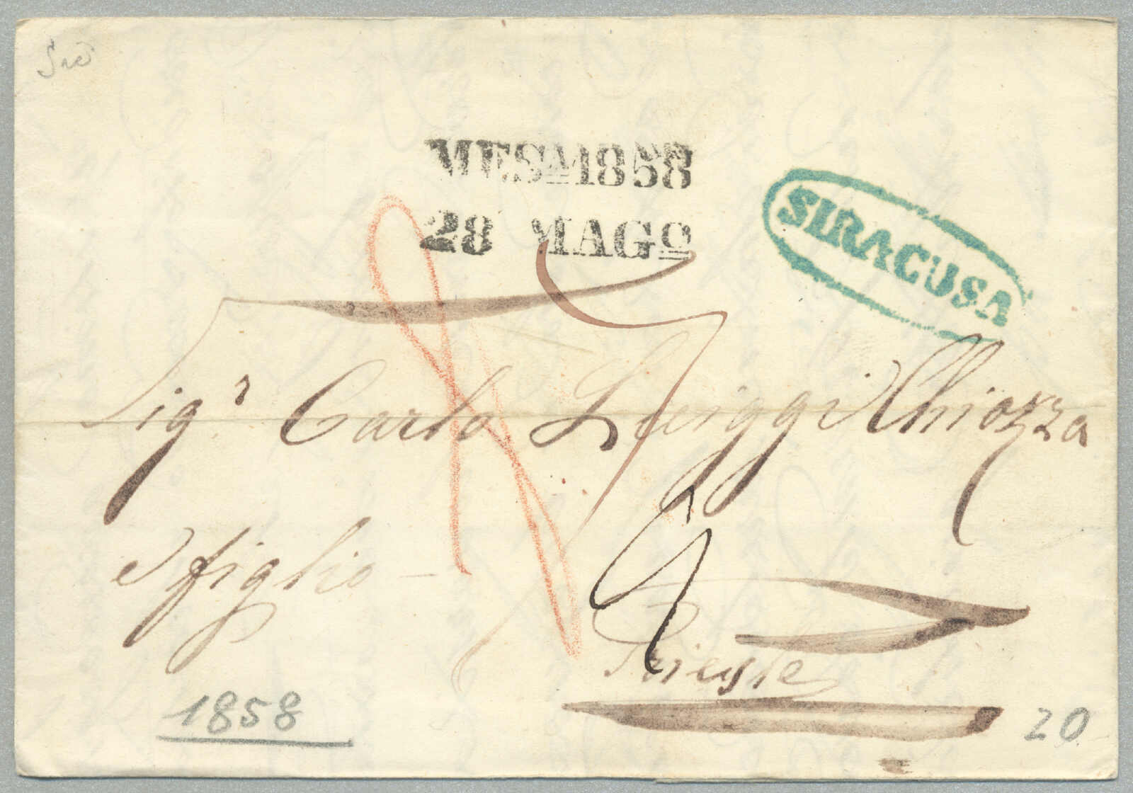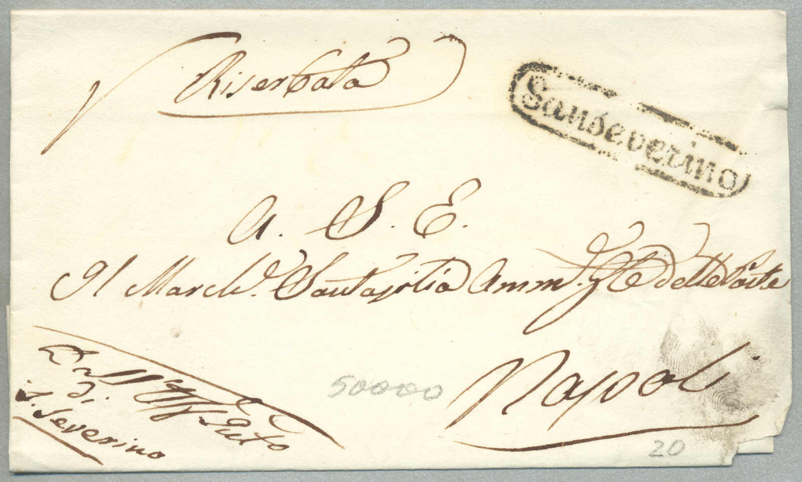 about 1830s, with neatly strike of blue SANTA CATARINA, on folded letter, ex Provera, XF! Estimate 200€.