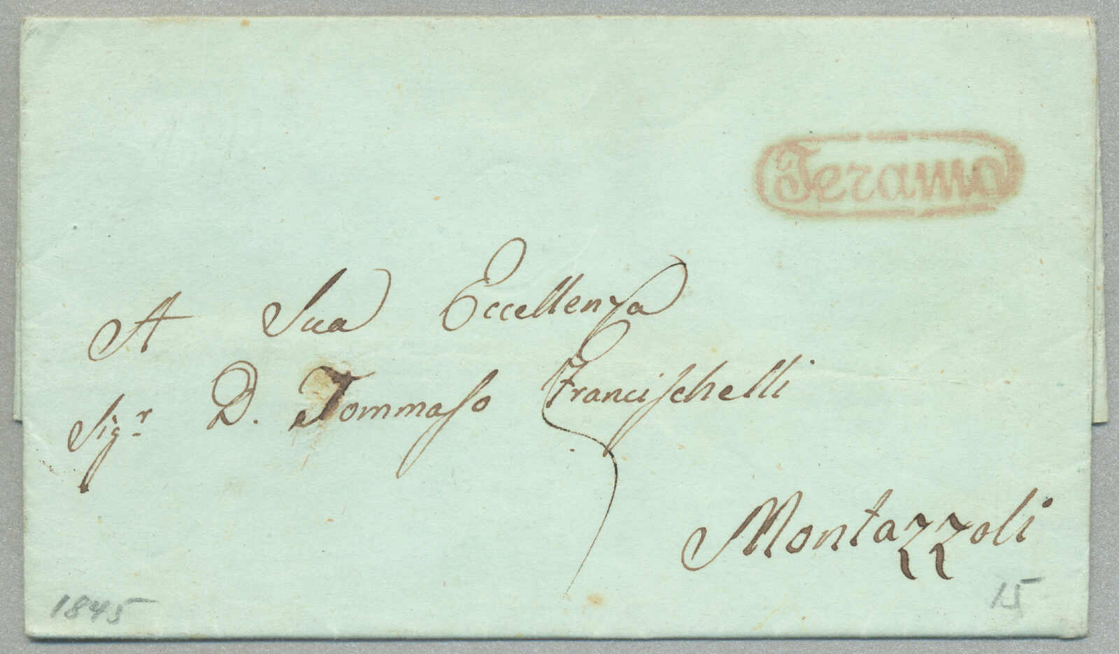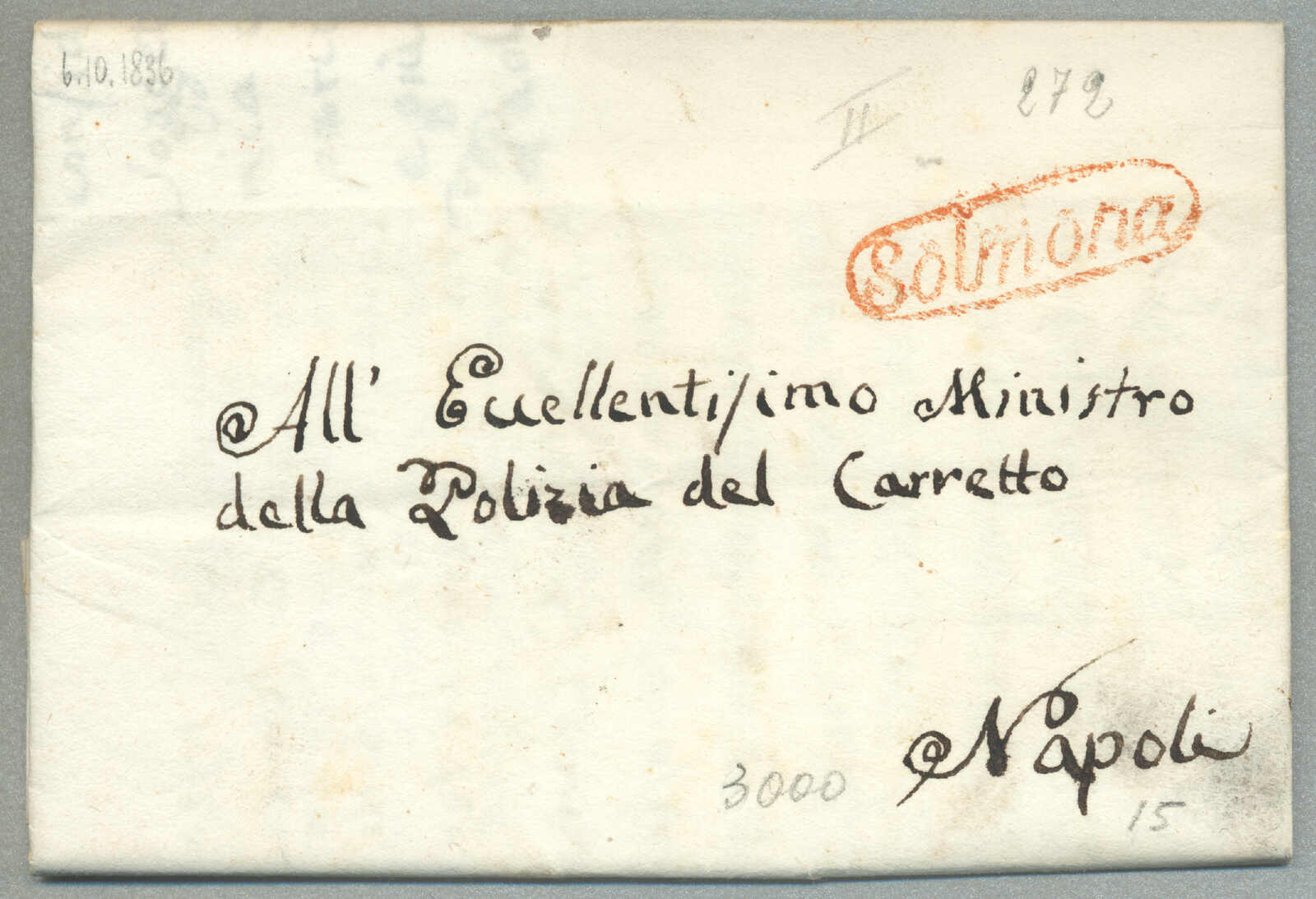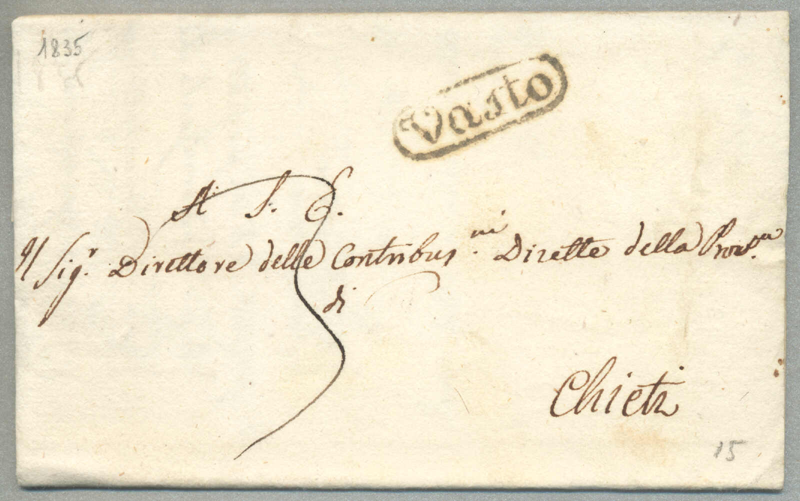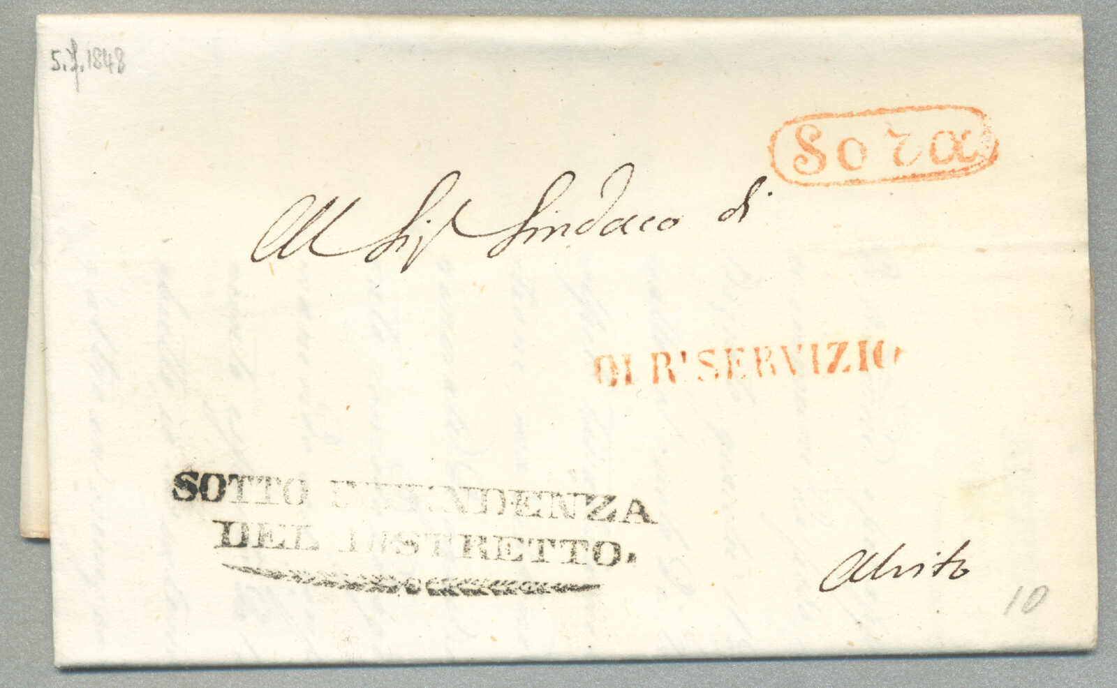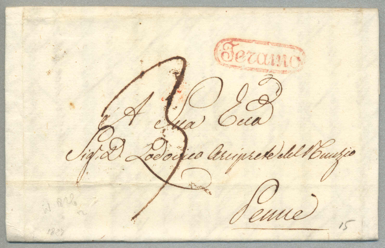 1831, with neatly strike of red TRAPANI and INTENDENZA DI TRAPANI, on folded letter, ex Provera, XF! Estimate 200€.