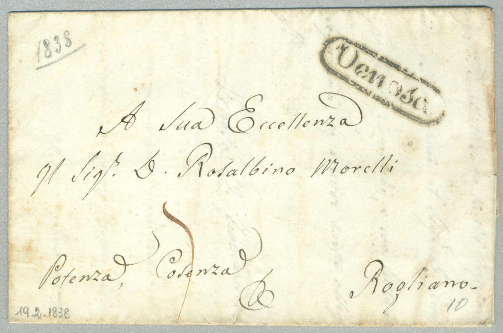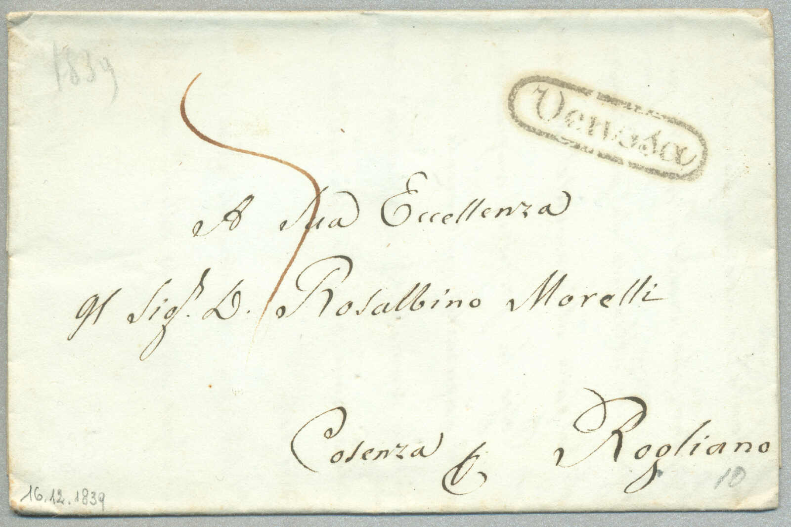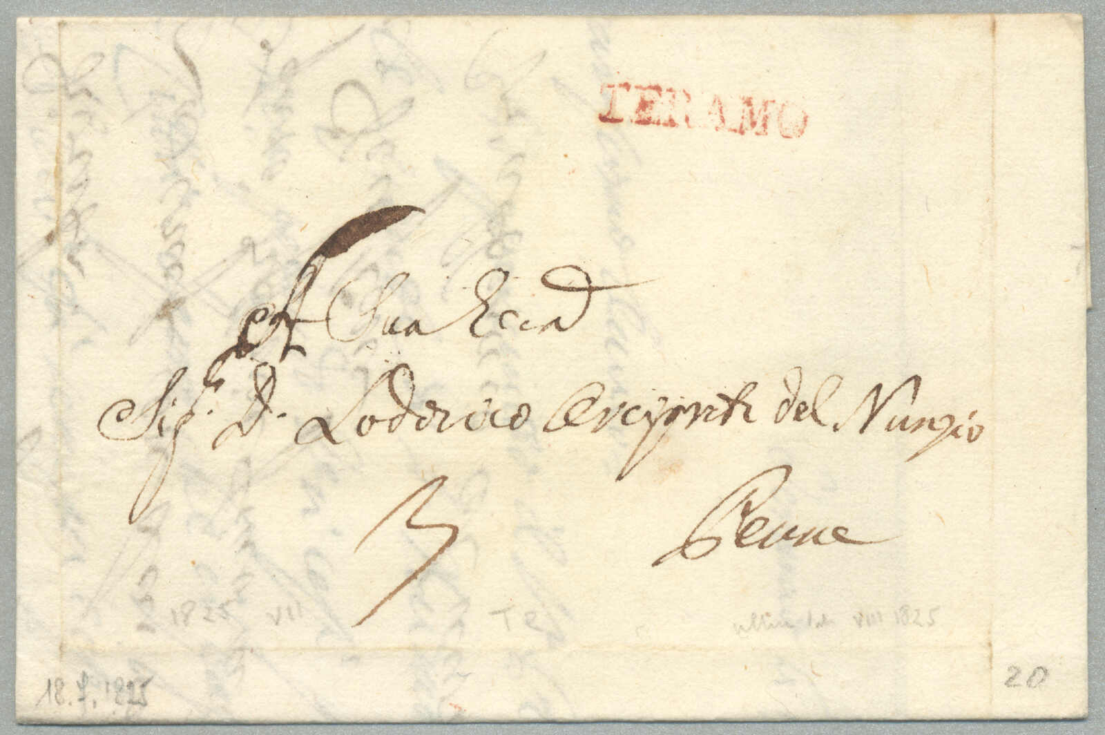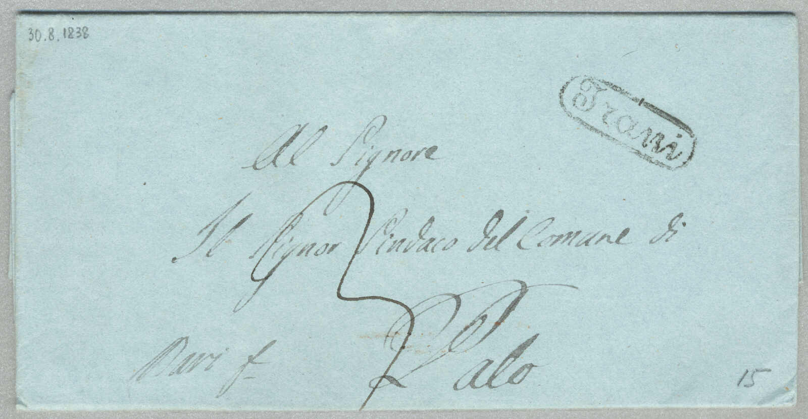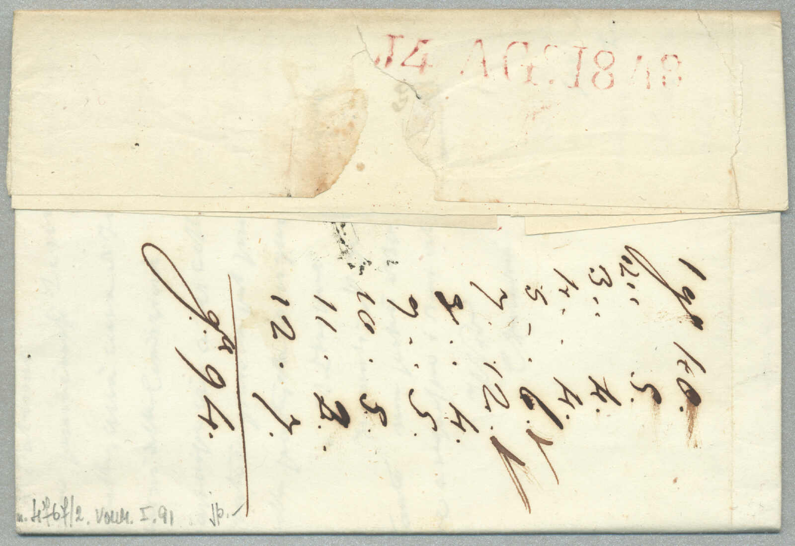 1831, with neatly strike of red TRAPANI and INTENDENZA DI TRAPANI, on folded letter, ex Provera, XF! Estimate 200€.