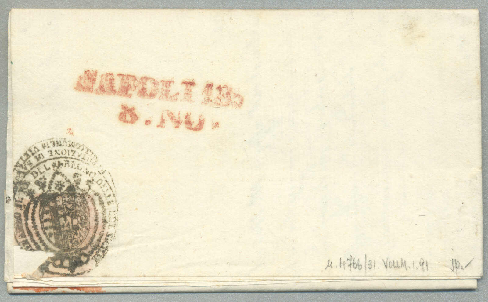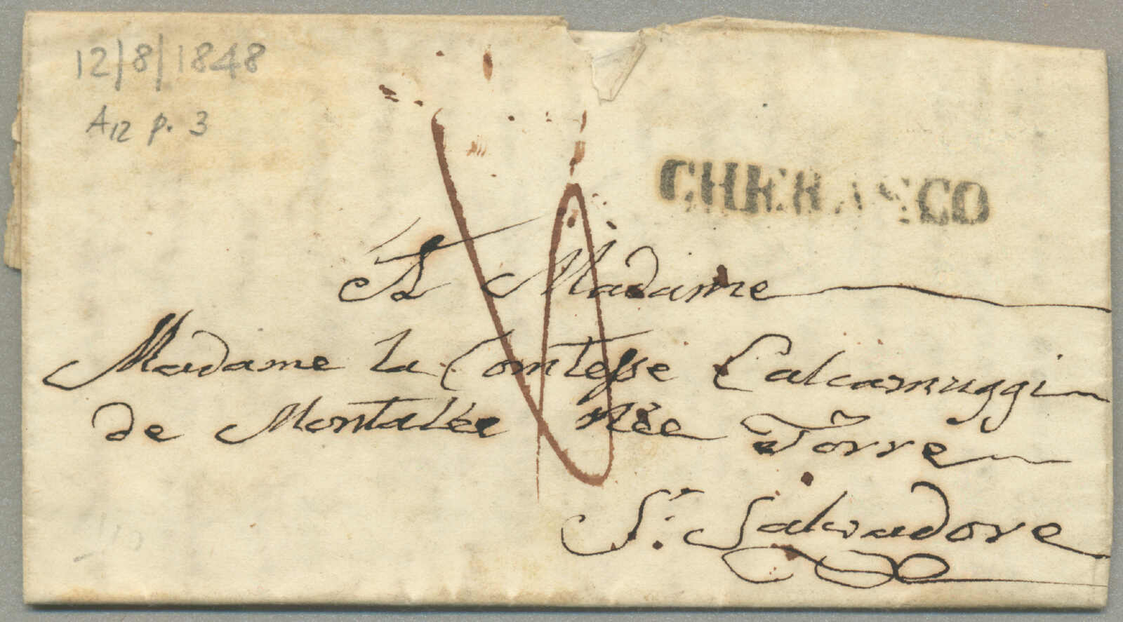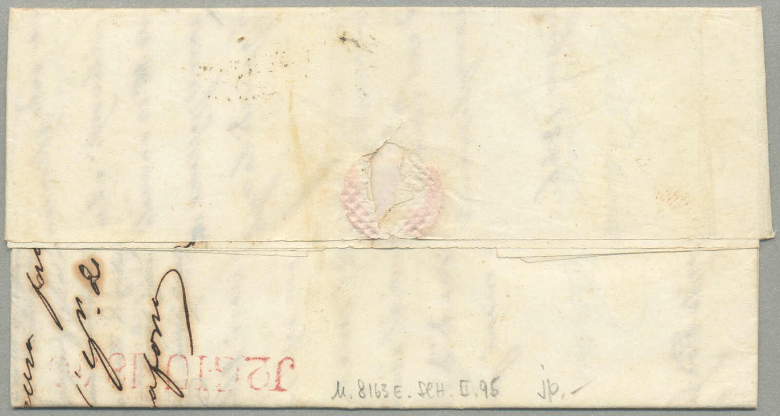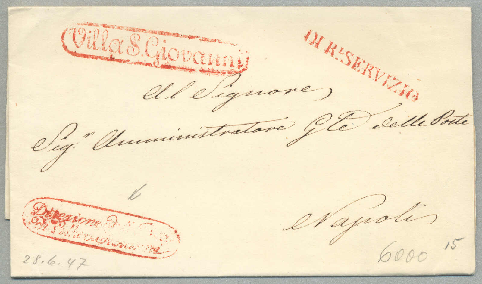 Automatisch generierte Übersetzung: 1847, mit sauberem Abschlag des rot VILLA S. GIOVANNI, auf Faltbrief,
