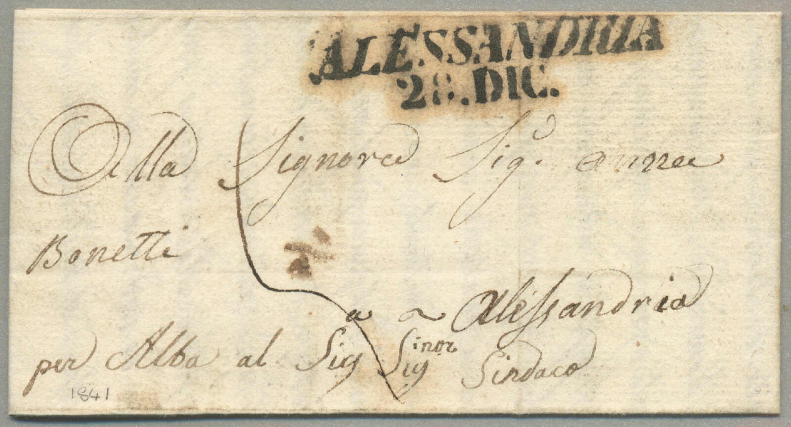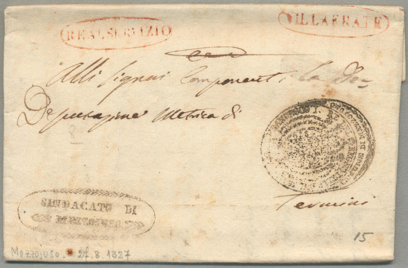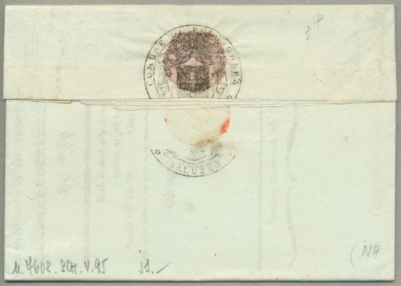 Automatisch generierte Übersetzung: 1847, mit sauberem Abschlag des rot VILLA S. GIOVANNI, auf Faltbrief,
