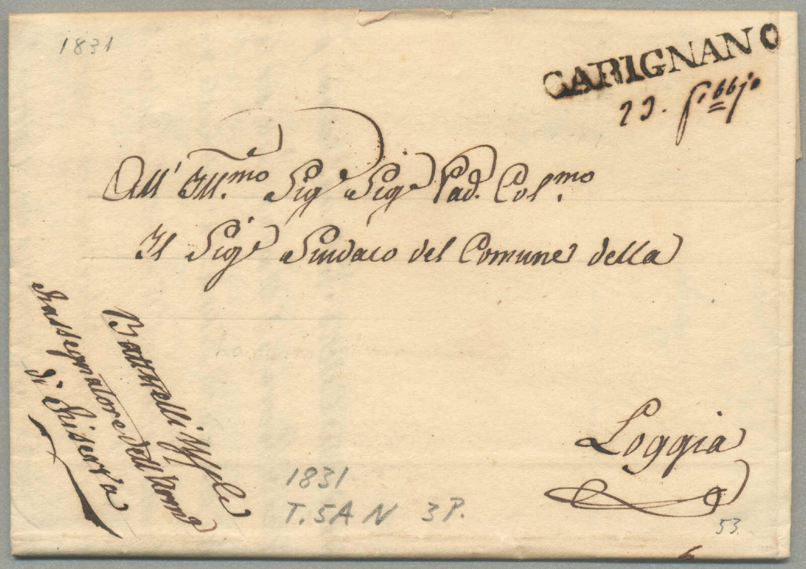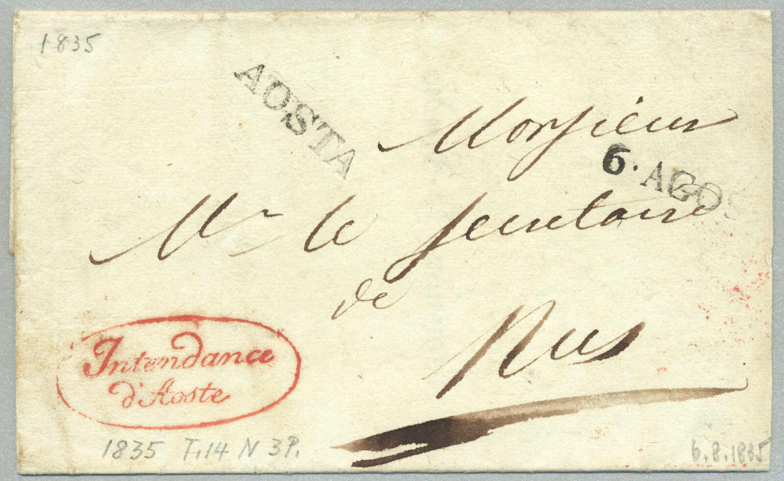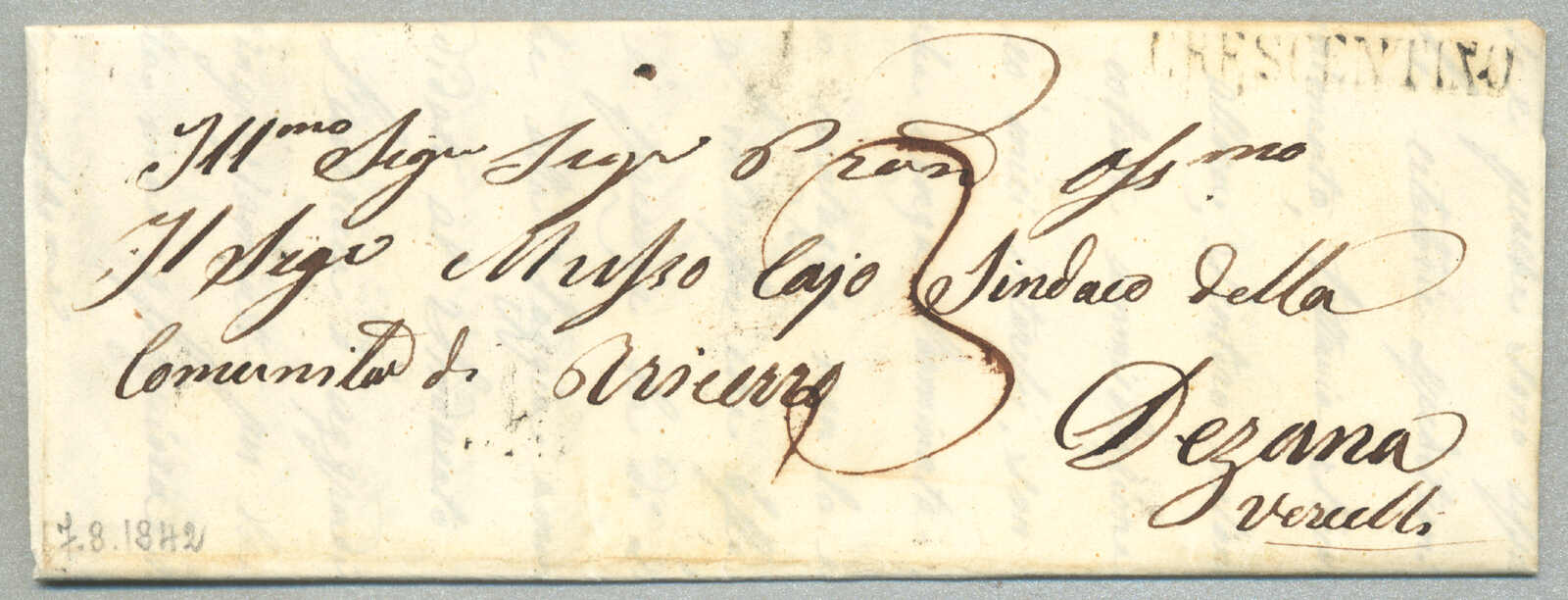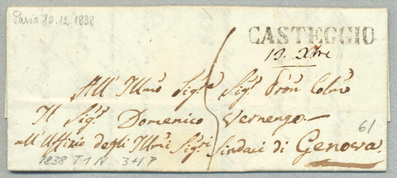 Automatisch generierte Übersetzung: 1847, mit sauberem Abschlag des rot VILLA S. GIOVANNI, auf Faltbrief,