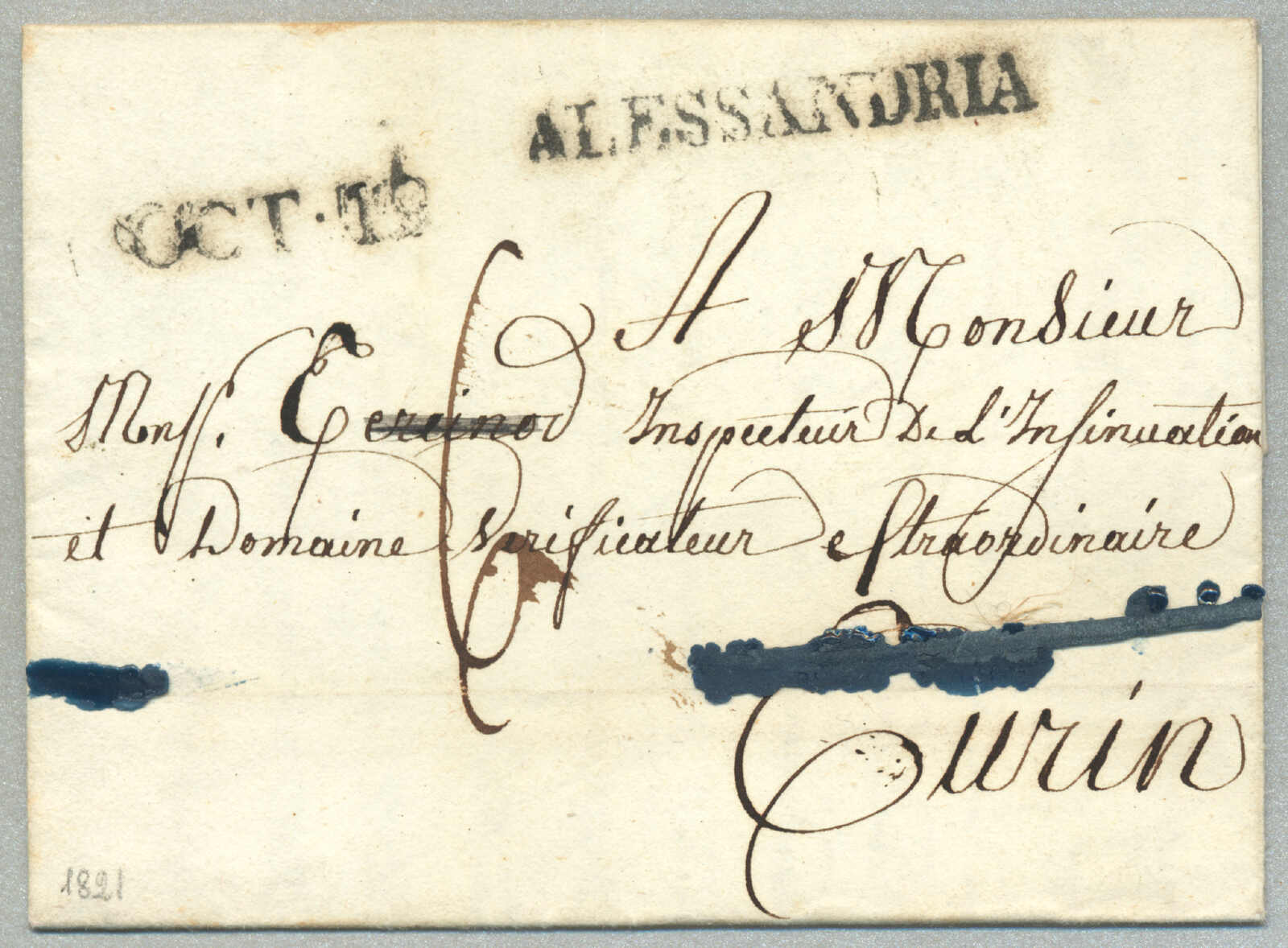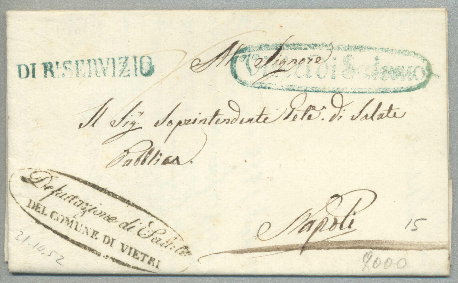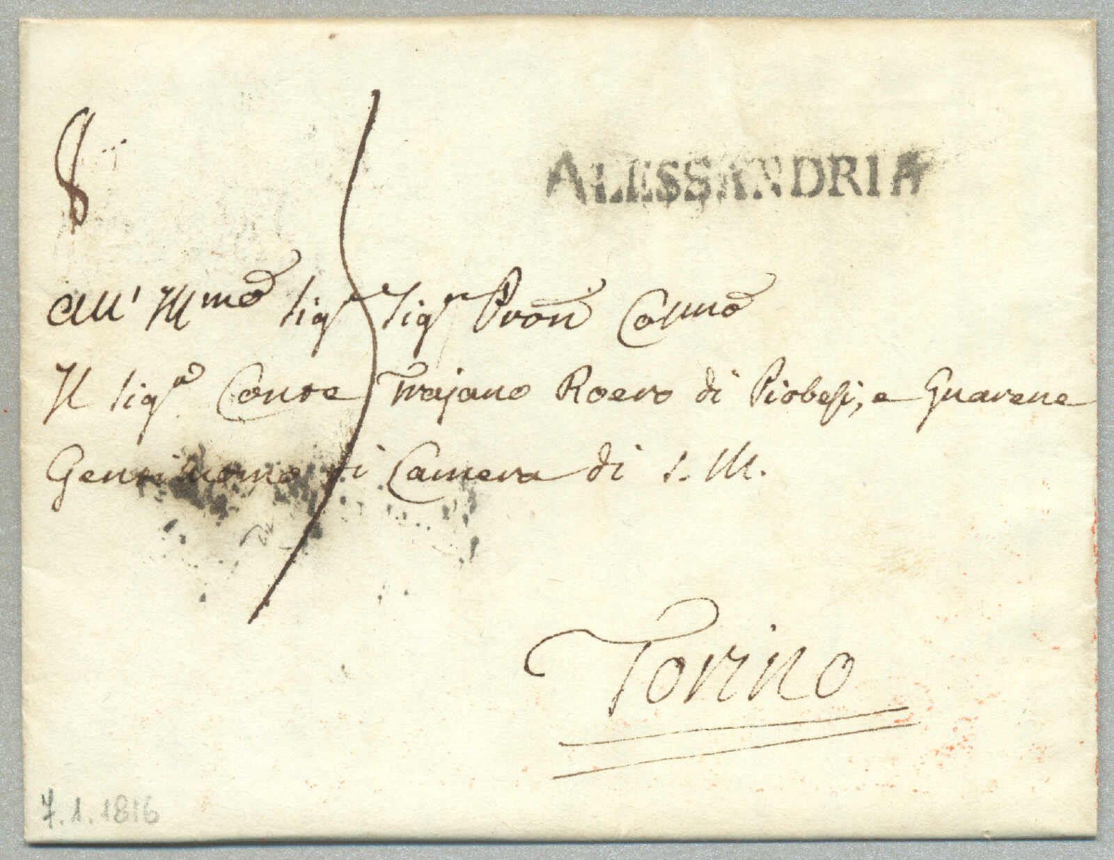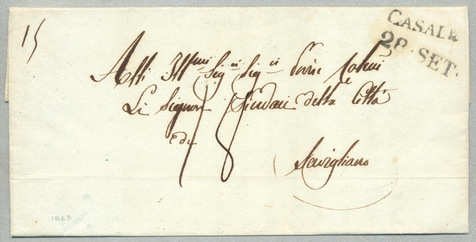 1847, with neatly strike of red VILLA S. GIOVANNI, on folded letter, ex Provera, XF! Estimate 200€.